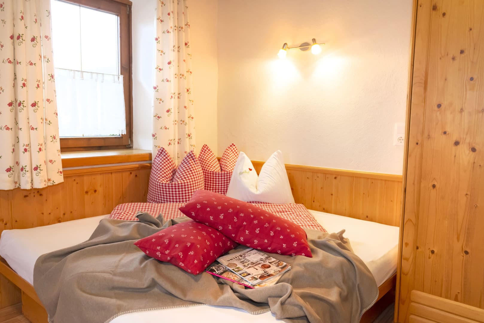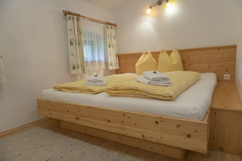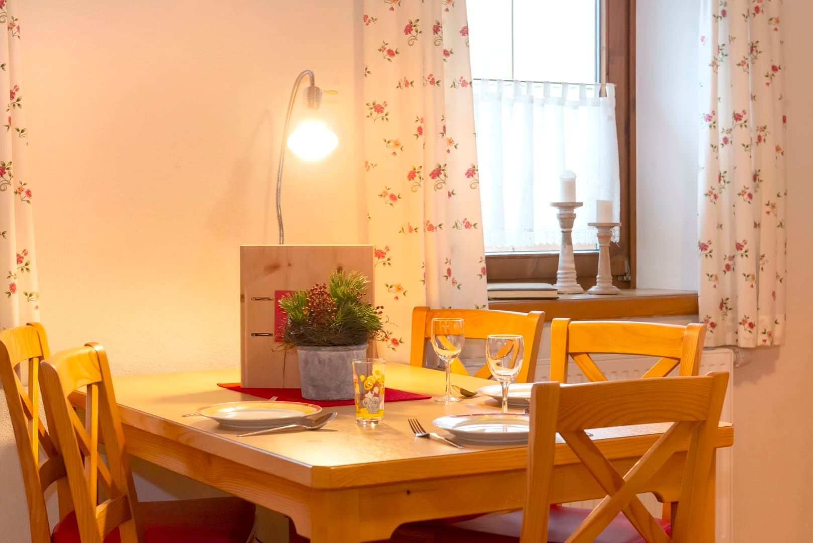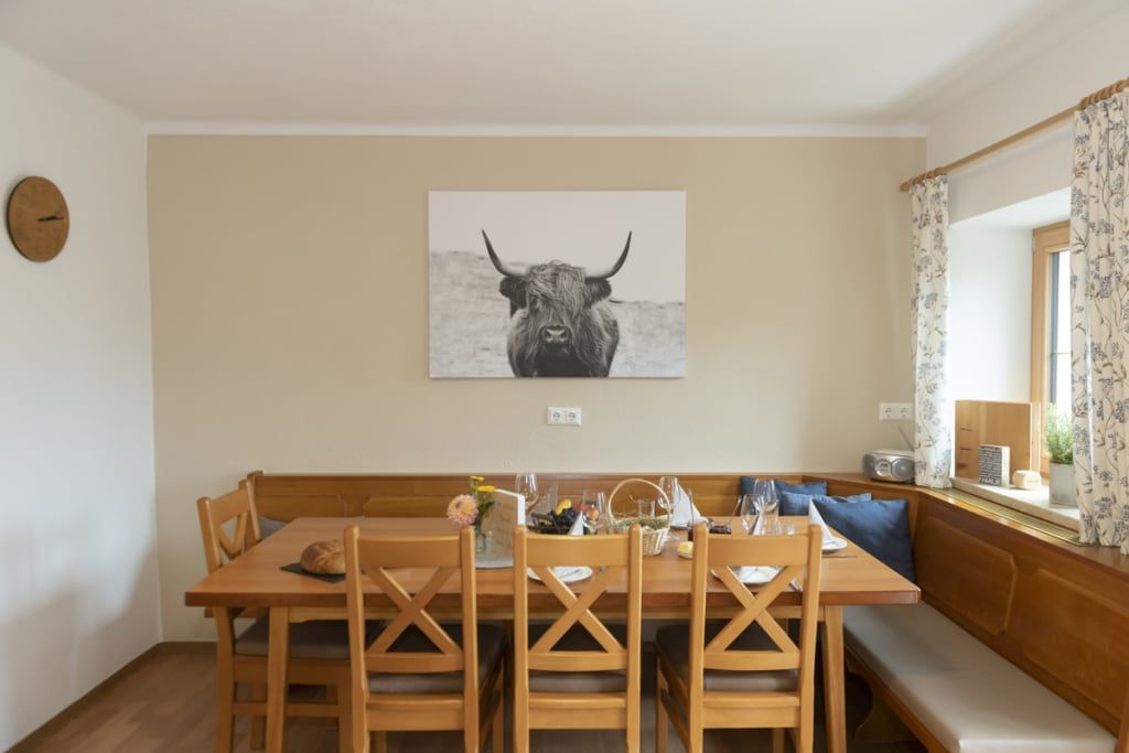 Unser Appartement für 2-4 Personen im ersten Stock des Bauernhauses. Die großen, hellen Räume (insbesondere Wohnraum) schaffen eine freundliche Atmosphäre. Die Wohnung kann wahlweise für 2-4 Personen genutzt werden. Bei 4 Personen steht neben dem Schlafzimmer auch im Wohnzimmer noch zwei Betten zur Verfügung.