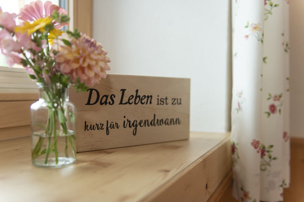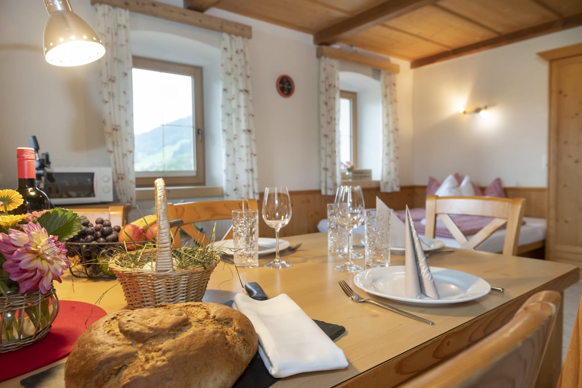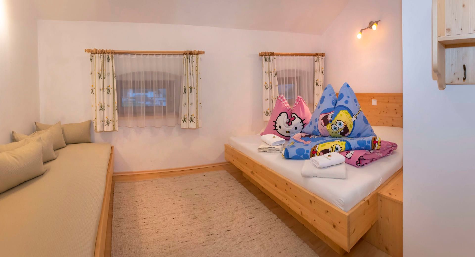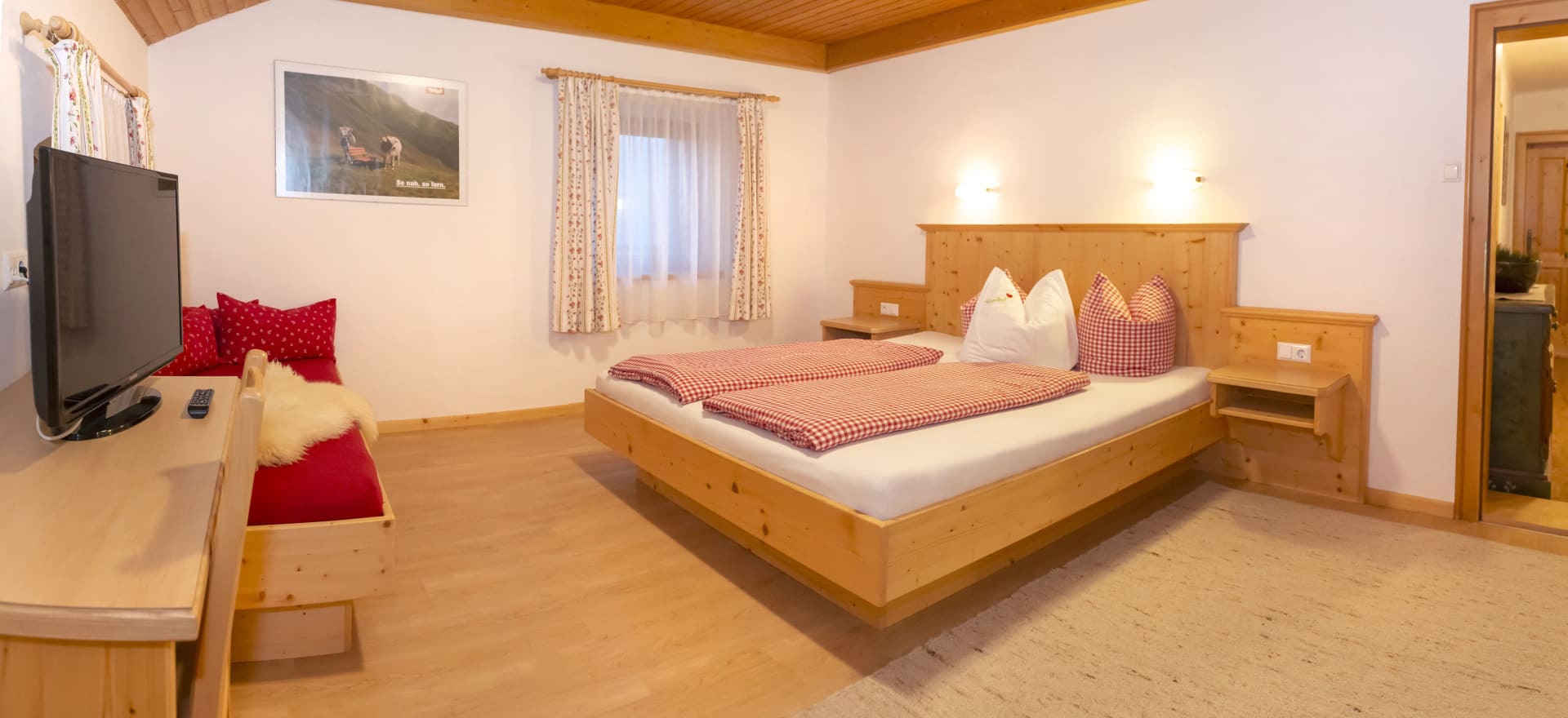 Unser Appartement für 2-4 Personen im ersten Stock des Bauernhauses. Die großen, hellen Räume (insbesondere Wohnraum) schaffen eine freundliche Atmosphäre. Die Wohnung kann wahlweise für 2-4 Personen genutzt werden. Bei 4 Personen steht neben dem Schlafzimmer auch im Wohnzimmer noch zwei Betten zur Verfügung.