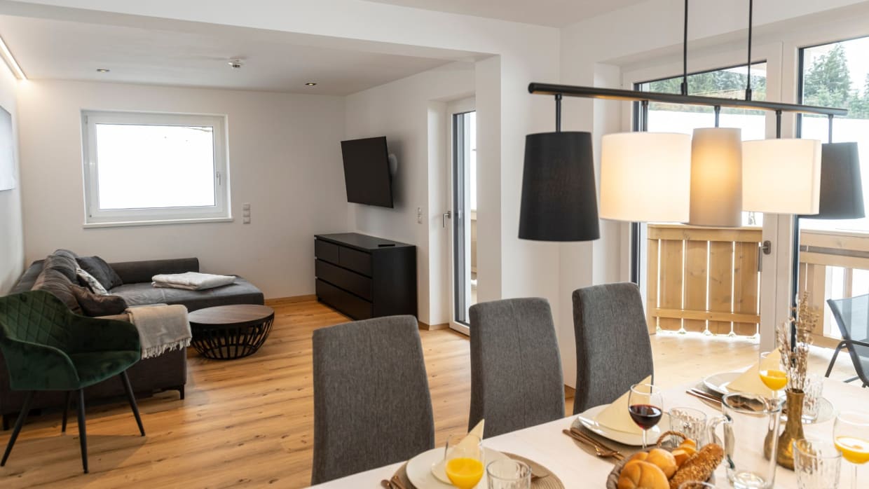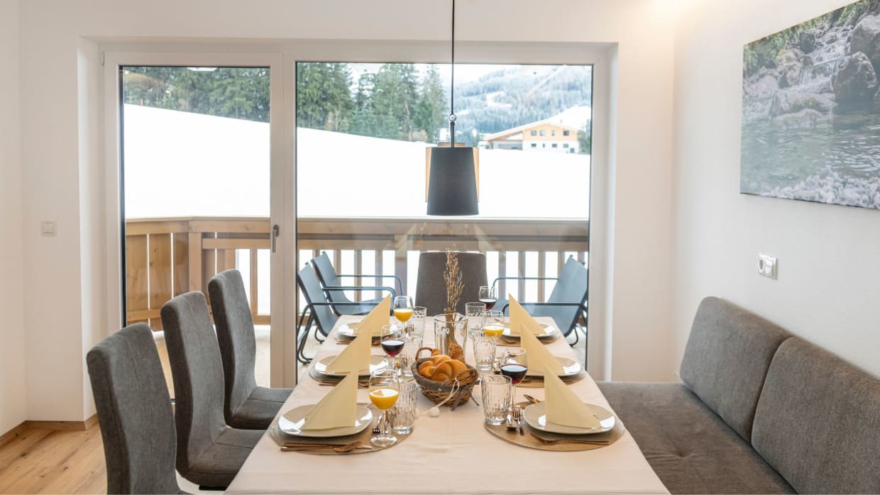 Pures Design trifft alpenländische Gemütlichkeit. Große Fensterfronten garantieren einen traumhaften Ausblick auf den Schatzberg. Dieses topmoderne und brandneue Apartment bietet drei Schlafzimmer und zwei Bäder.