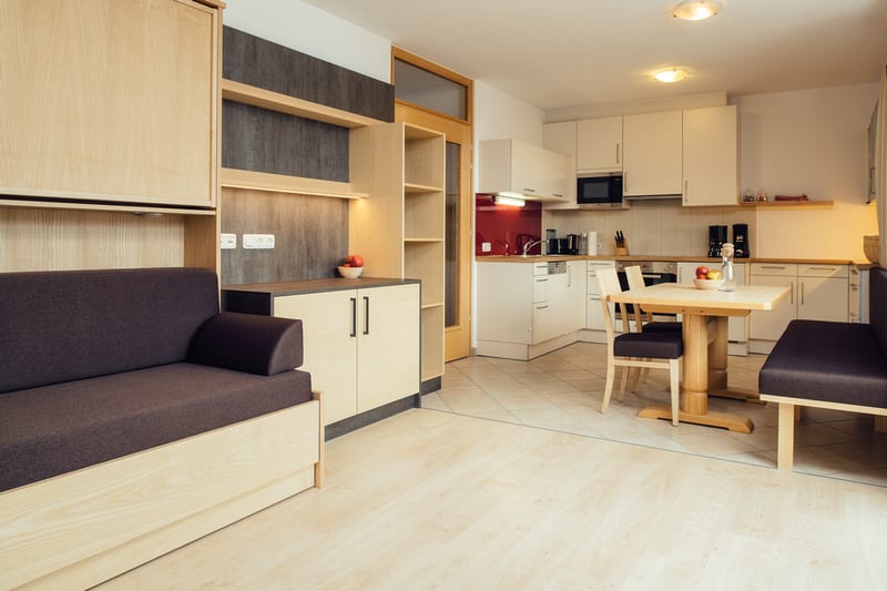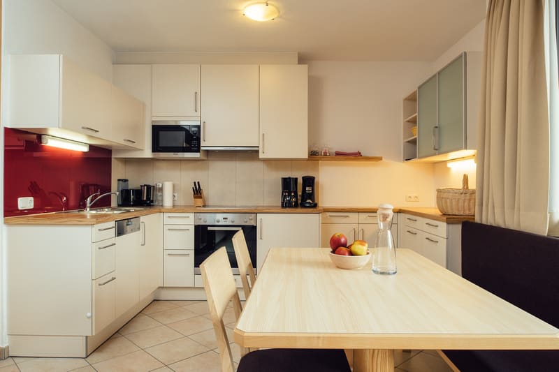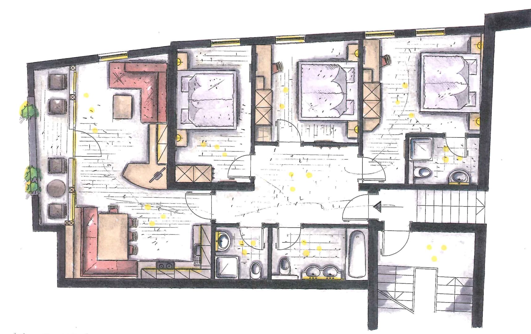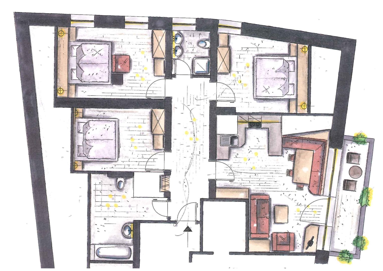 3 x Doppelzimmer (Bett 160x200), 1 x geräumiger Wohnraum mit Couch, 1 x Dusche/WC/Föhn, 1 x Bad/Dusche/Föhn, 1 x - WC separat, Kabel-TV, Safe, Küche mit E-Herd, Geschirrspülmaschine, Mikrowelle, Kühlschrank mit Gefrierfach, Filter-Kaffeemaschine, Senseo-Pads-Kaffeemaschine, Wasserkocher, Toaster, Eierkocher