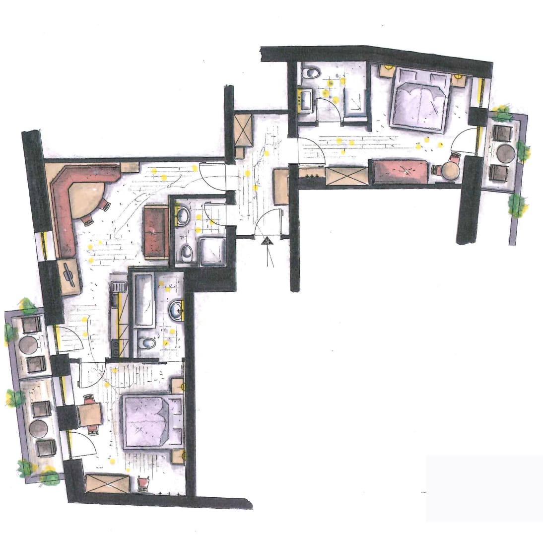 1 kleines Schlafzimmer mit Doppelbett, 1 Schlafzimmer mit Doppelbett , 2 x Bad/Dusche/WC + Föhn, Telefon, Safe, Balkon, Kabel-TV