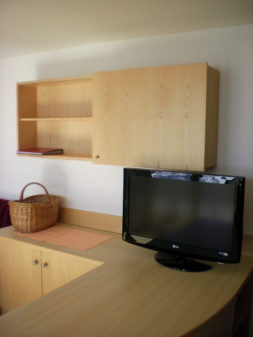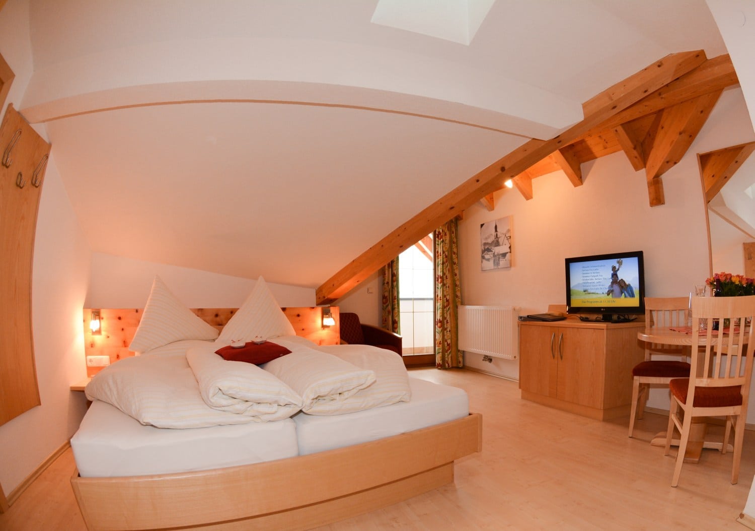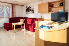 Wohnraum mit Kabel-TV, Telefon, Safe, CD-Player mit Radiowecker, Balkon ist nach Süden ausgerichtet
