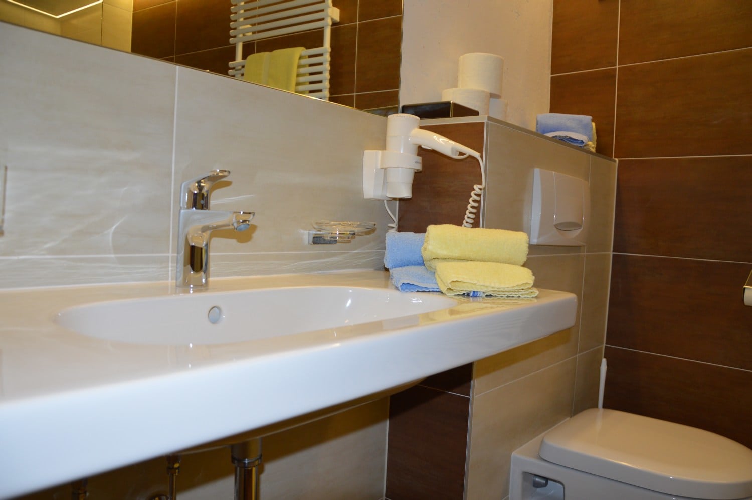 1 x Bad/WC + Föhn und 2 x Dusche/WC + Föhn