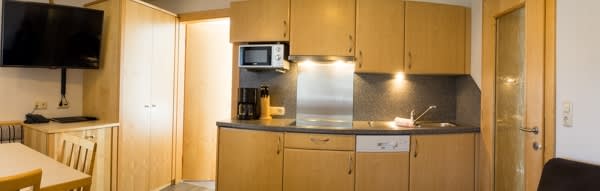Wohnküche: Herd mit Ceranfeld, großem Kühlschrank mit 3*** Gefrierfach, Spülmaschine Mikrowelle, Dunstabzug, Kaffeemaschine, Natürlich sind Besteck,Tischecke für 4 Personen, Koch- u. Essgeschirr, Küchen-, Handtücher sowie Bettwäsche vorhanden. Stereoanlage, Komfort-Telefon, Kabel-TV mit Pistenpanorama / Schischulinfo), Internetanschluss, Safe