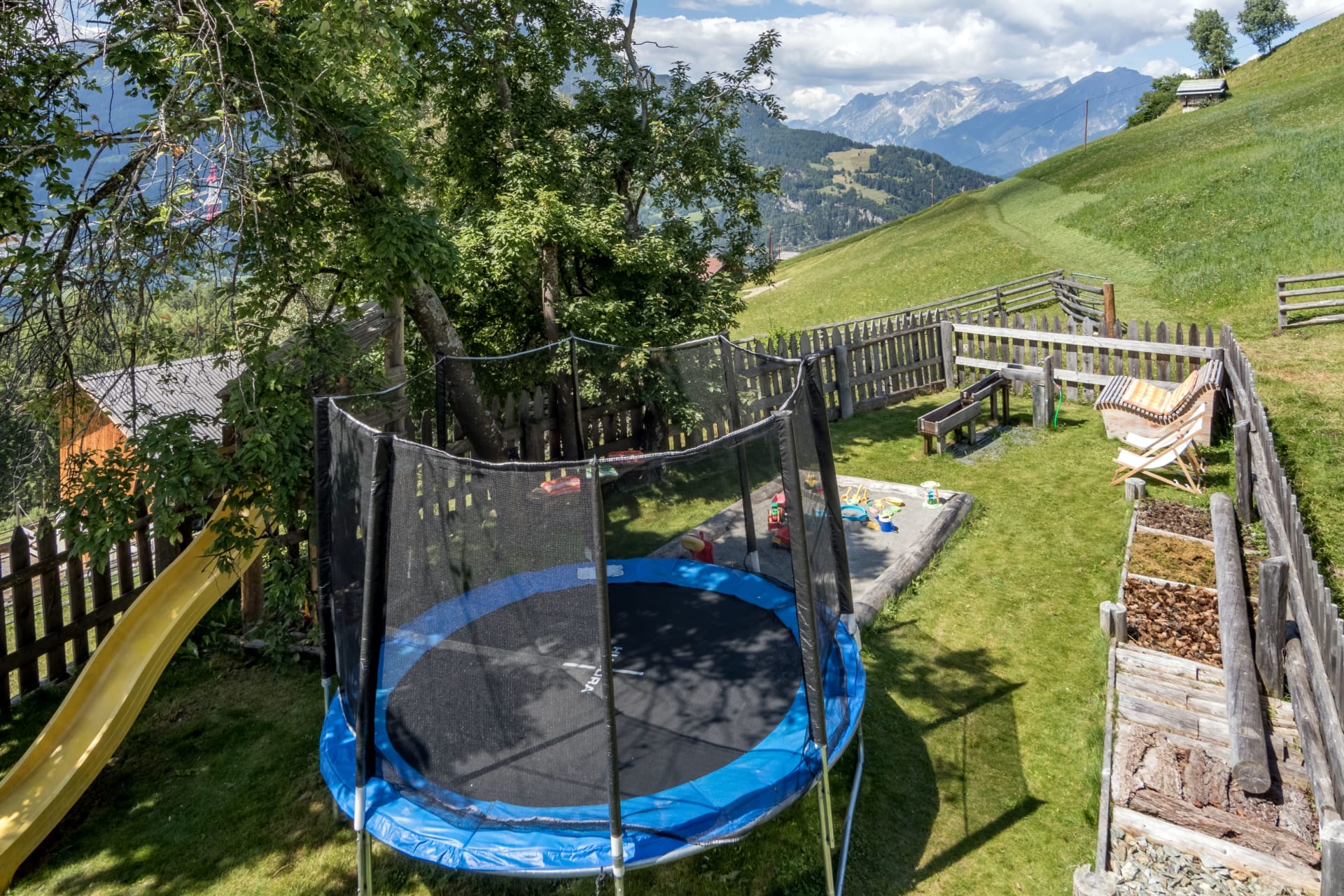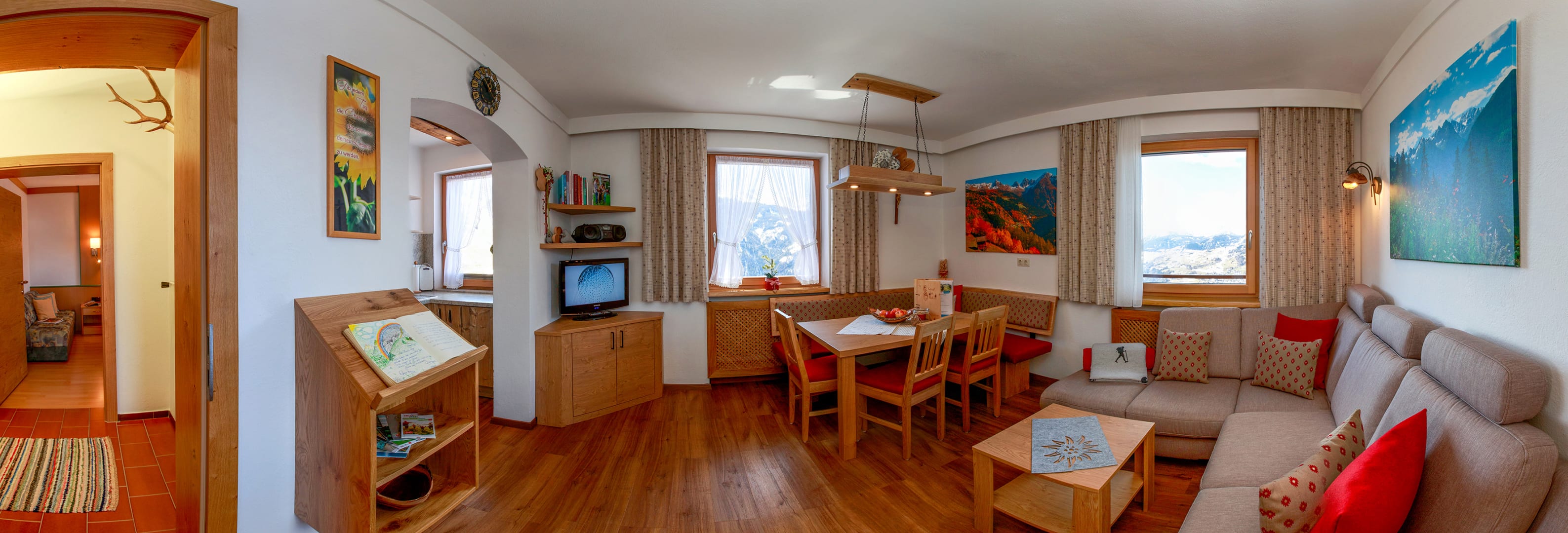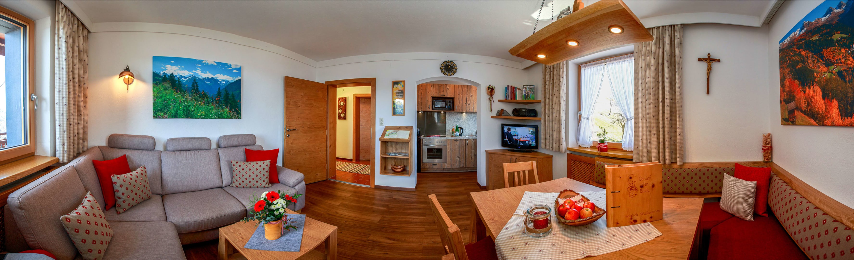 Vom Süd-West-Balkon genießen Sie einen herrlichen Blick auf die Berge. Kinder freuen sich über das Spielzimmer, während im Hofbereich gemütliche Ruheplätze zum Verweilen einladen.