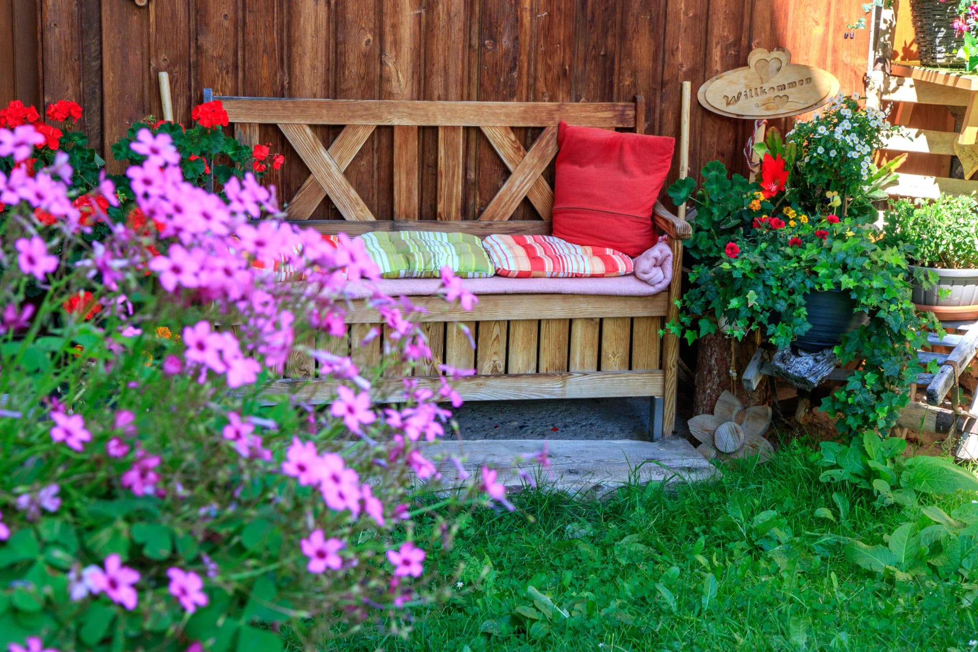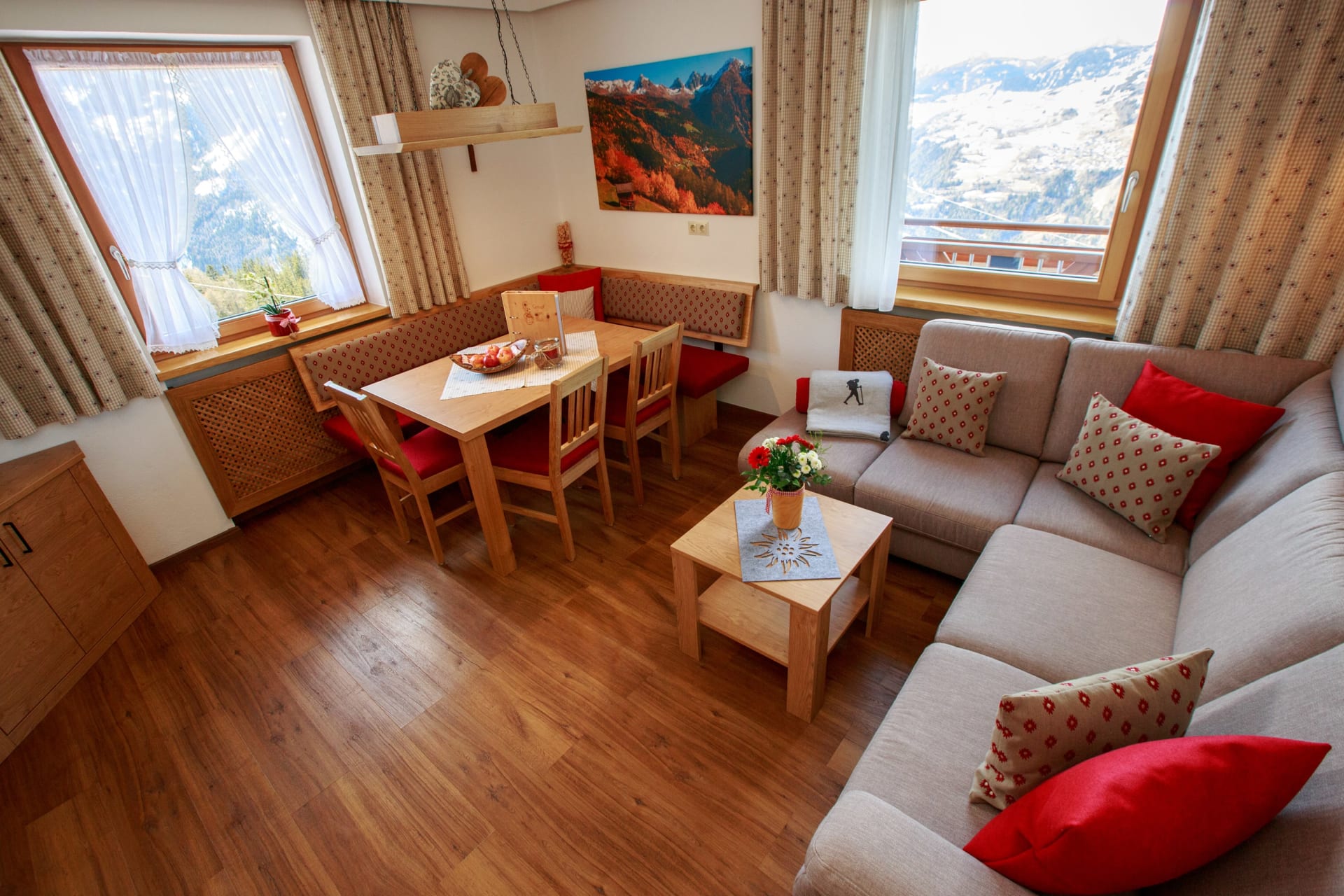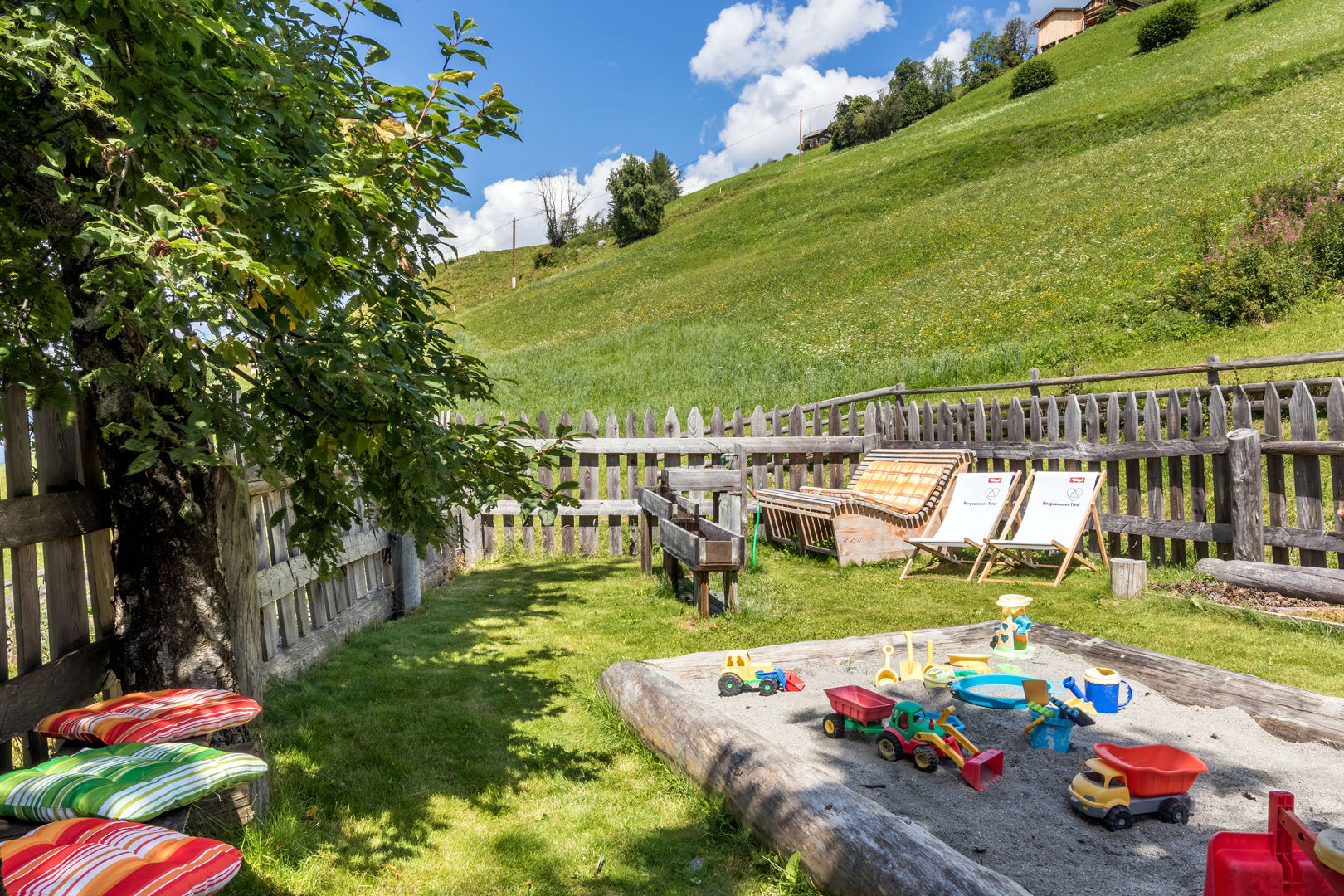 Vom Süd-West-Balkon genießen Sie einen herrlichen Blick auf die Berge. Kinder freuen sich über das Spielzimmer, während im Hofbereich gemütliche Ruheplätze zum Verweilen einladen.