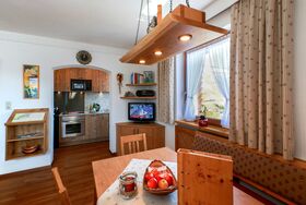 Die voll ausgestattete Küche und der behagliche Wohnbereich mit traditioneller Eckbank laden zu gemeinsamen Stunden ein. Fernseher, WLAN und viele weitere Annehmlichkeiten sind selbstverständlich vorhanden.