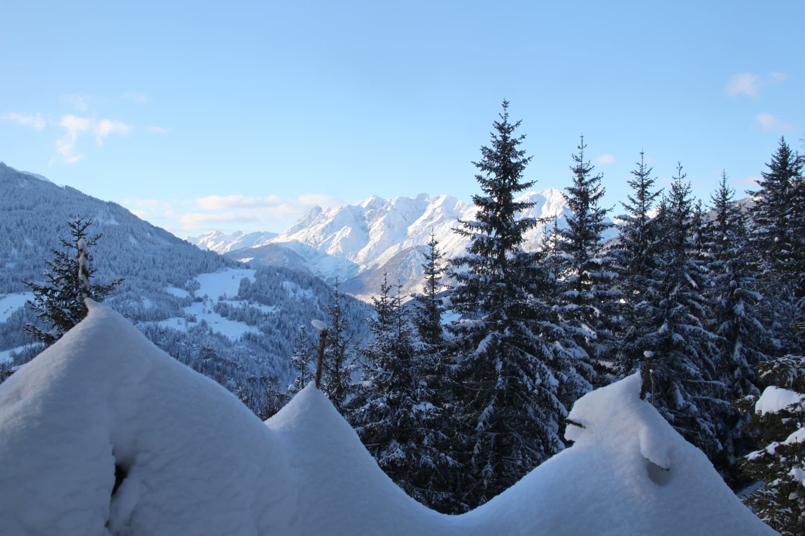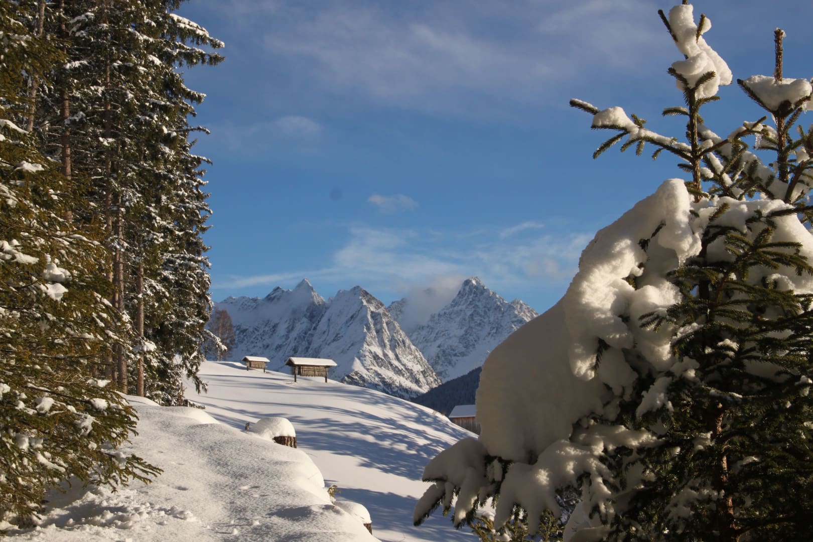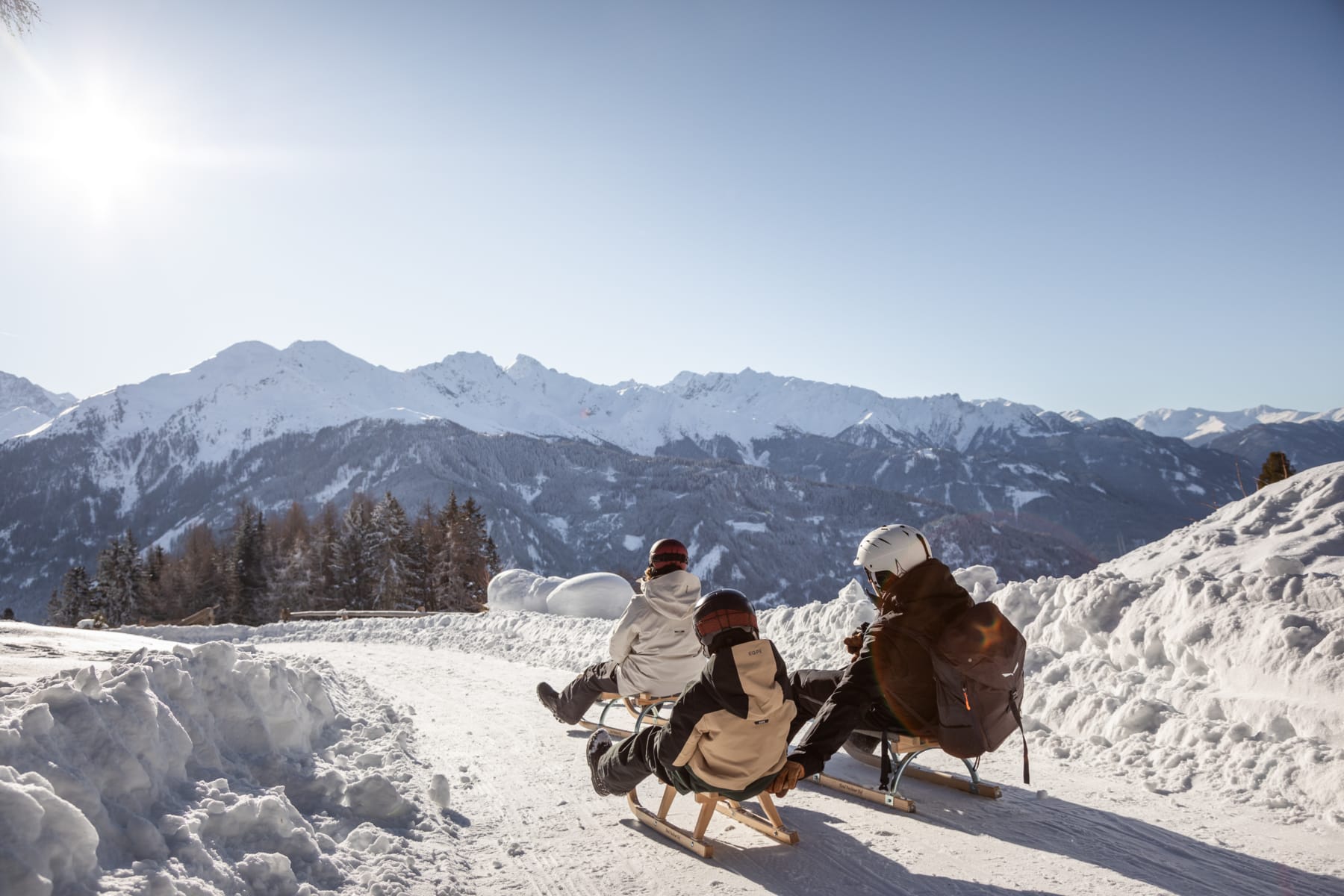 Pulverschnee, klare Bergluft und ein traumhaftes Panorama: Schneemann bauen, Schneeballschlachten, Schneeschuhwandern oder eine fröhliche Rodelpartie – direkt rund um unseren Hof.