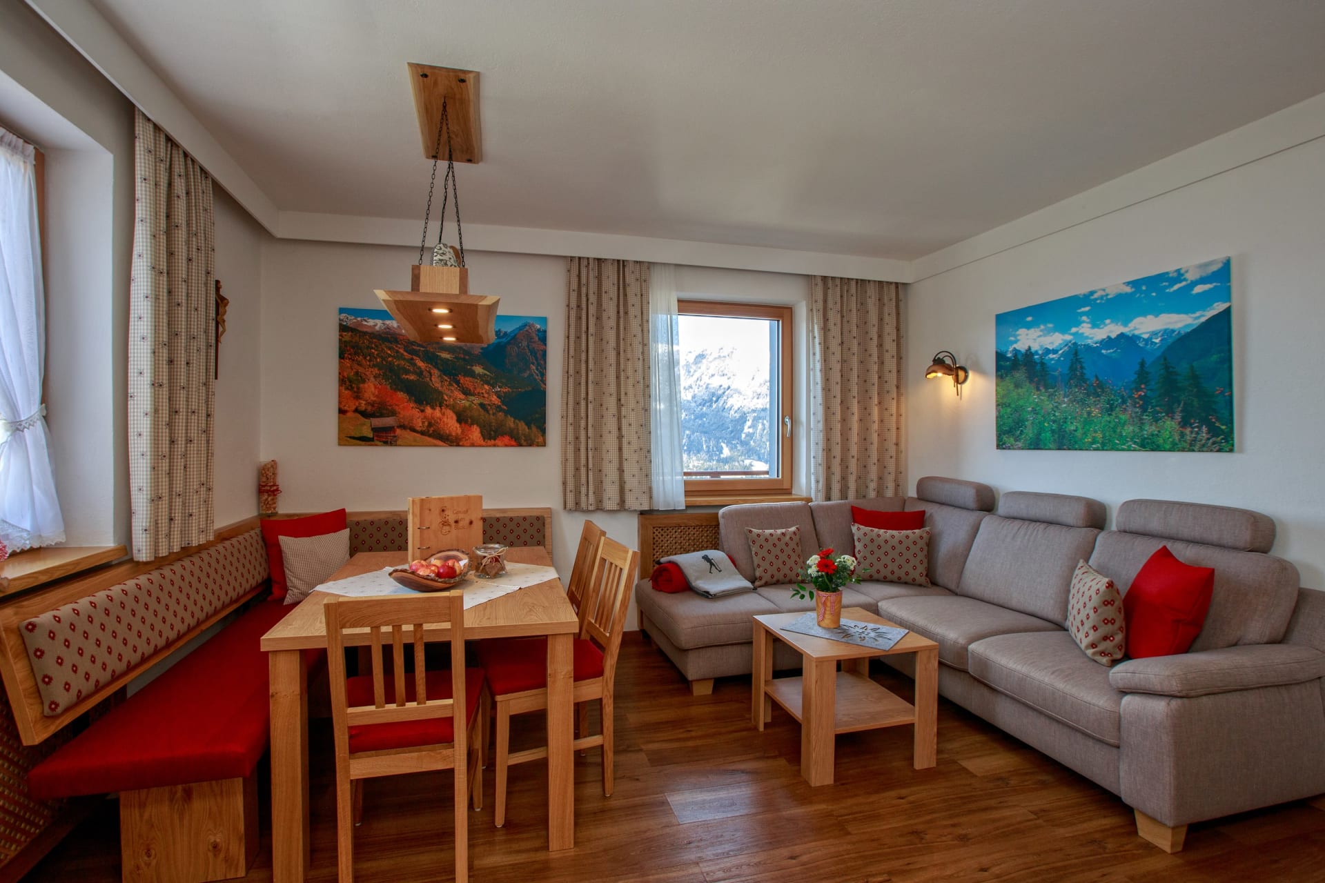 Willkommen im Apartment Edelweiss – Ihrer großzügigen Ferienwohnung in Tirol. Auf 80 m² erwartet Sie ein liebevoll eingerichteter Rückzugsort im authentischen Tiroler Stil mit atemberaubendem Panoramablick auf die umliegenden Berge und das weite Tal.
