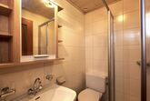 Ferienwohnung mt Balkon im 2. Stock (2 Schlafzimmer mit jeweils eigenem Dusche/WC), Küche mit Essecke (Küchenblock mit E-Herd 4 Platten Backrohr Dunstabzug Kühlschrank).