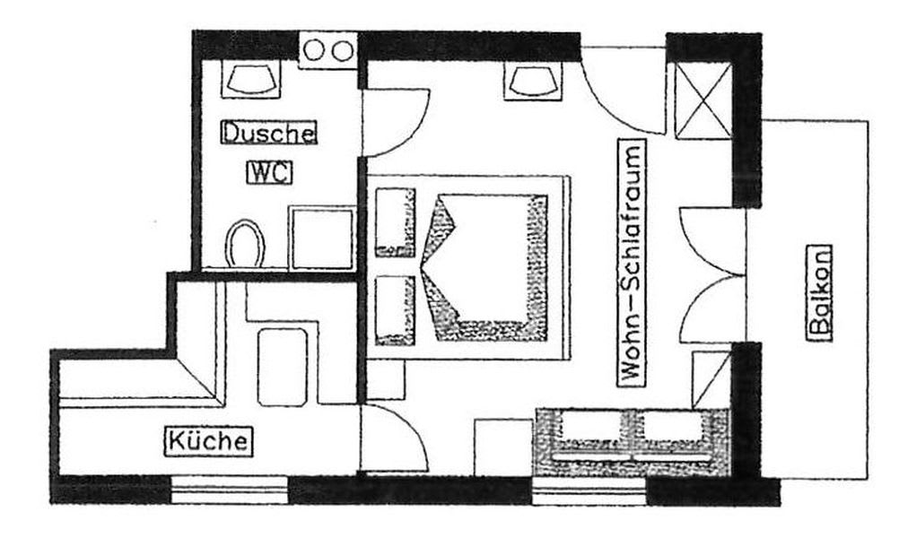 Gemütliche Wohnung für 1-2 Personen mit einem Schlafzimmer mit Dusche/WC ,TV, Radio und Südbalkon. Die Wohnküche ist mit einer kleinen Eßecke, Elektroherd , Mikro, Kühlschrank, Geschirrspülmaschine diverse Elektro-Geräte wie Kaffeemaschine, Wasserkocher, Toaster, Eierkocher eingerichtet. Gratis WLan in der Wohnung! Brötchenservice!