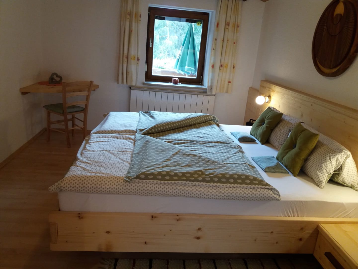 100m² sonnendurchflutete Ferienwohnung mit allem Komfort. Südbalkon mit Blick auf die majestätischen Berge. 2 getrennte Schlafzimmer mit 2 Duschen / WC. Geräumiges Wohnzimmer mit SAT-TV. Parkettböden sorgen für geerdetes Wohlgefühl und Sauberkeit. Natürliche Dekorationen mit Kräutern und Blumen vom Hof. Auf Wunsch verwöhnen wir sie mit unserem beliebten Bio-Frühstück.