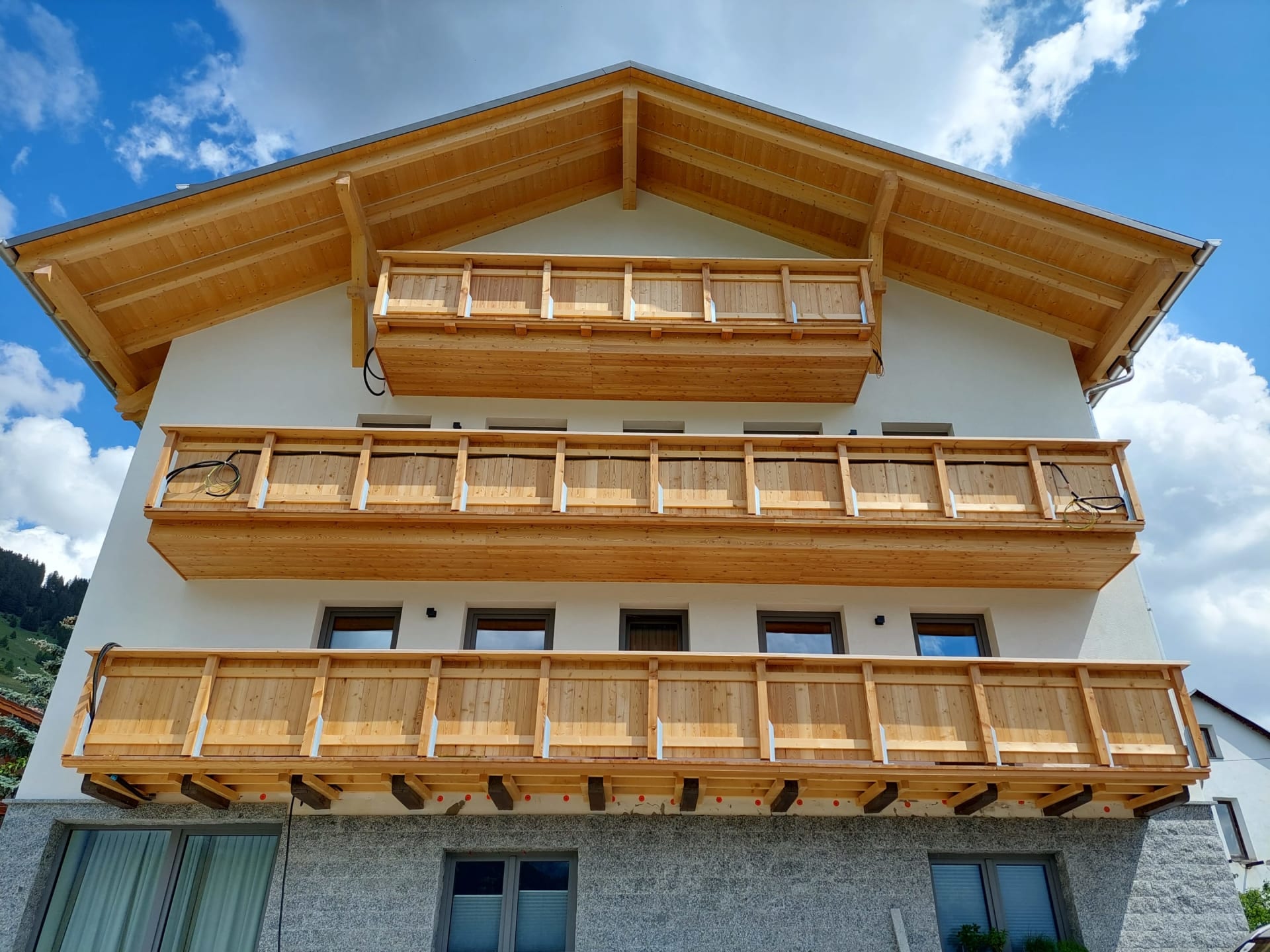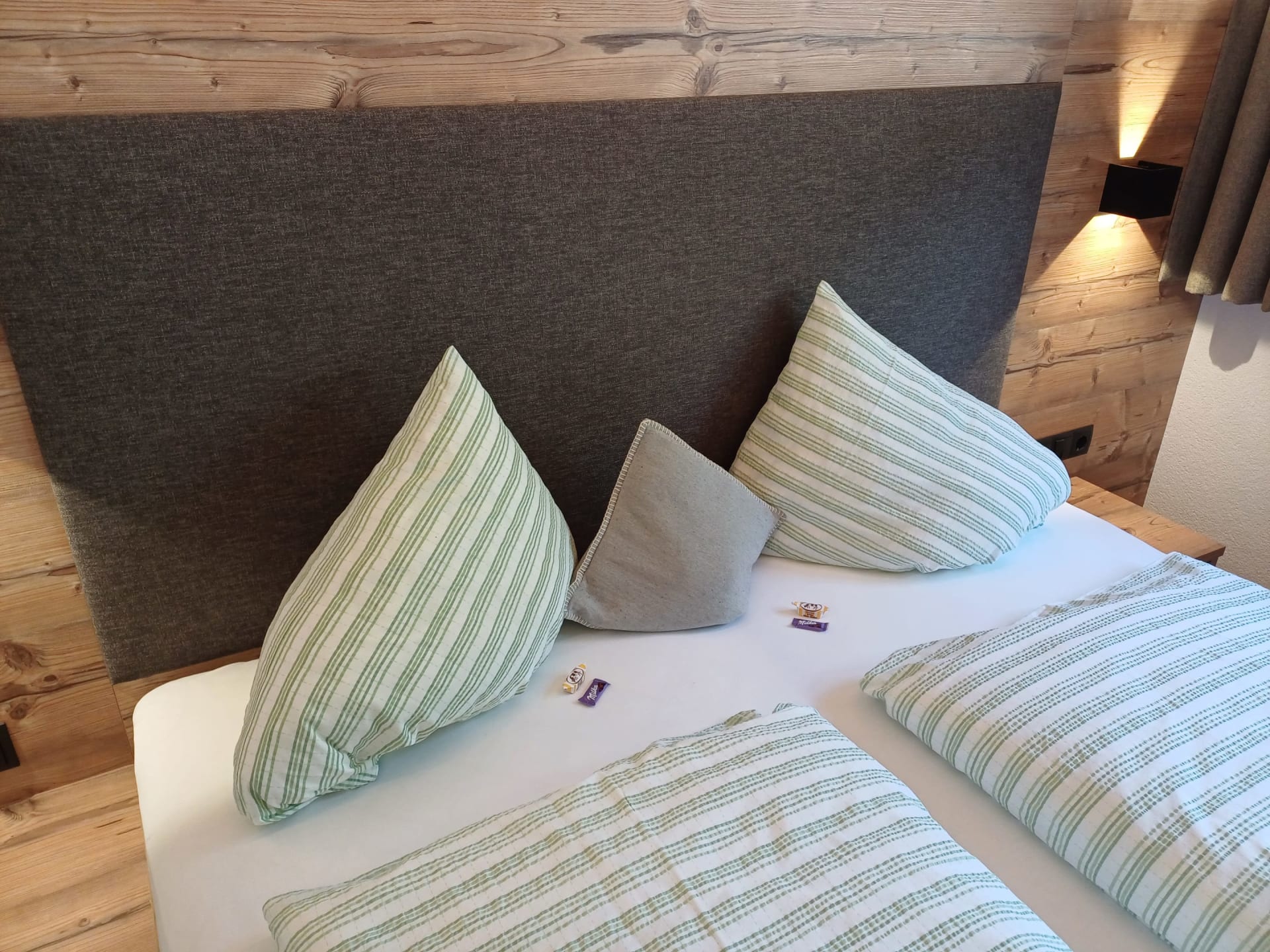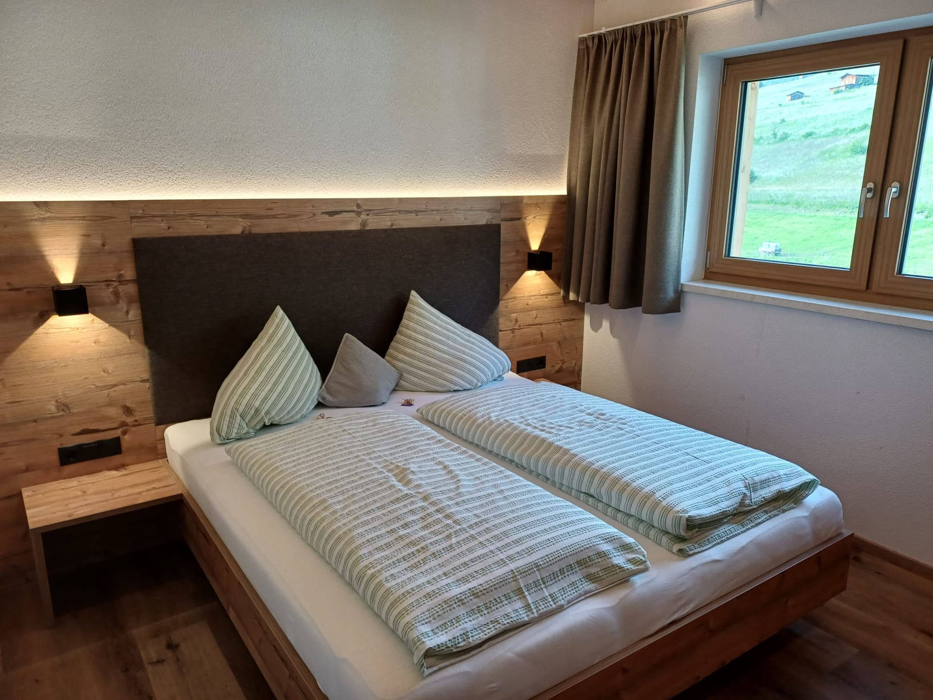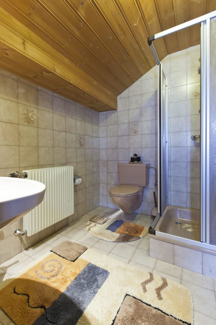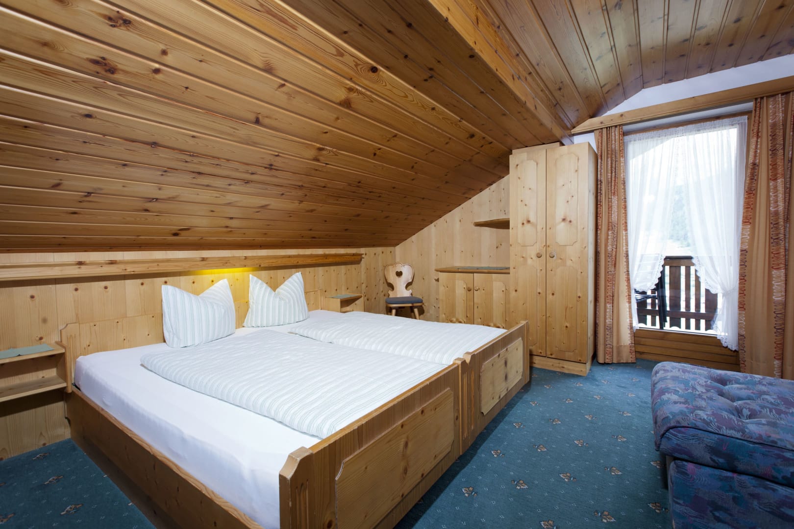 Die Ferienwohnung Engadin befindet sich zwar noch immer im dritten Stock – doch ansonsten ist sie kaum wiederzuerkennen. Ein offener Sichtdachstuhl aus hellem Fichtenholz verleiht den Räumen eine freundliche, großzügige Atmosphäre. Neue Möbel, ein großer Esstisch, bequeme Stühle und viel Platz zum Durchatmen lassen das Urlaubsherz höherschlagen.