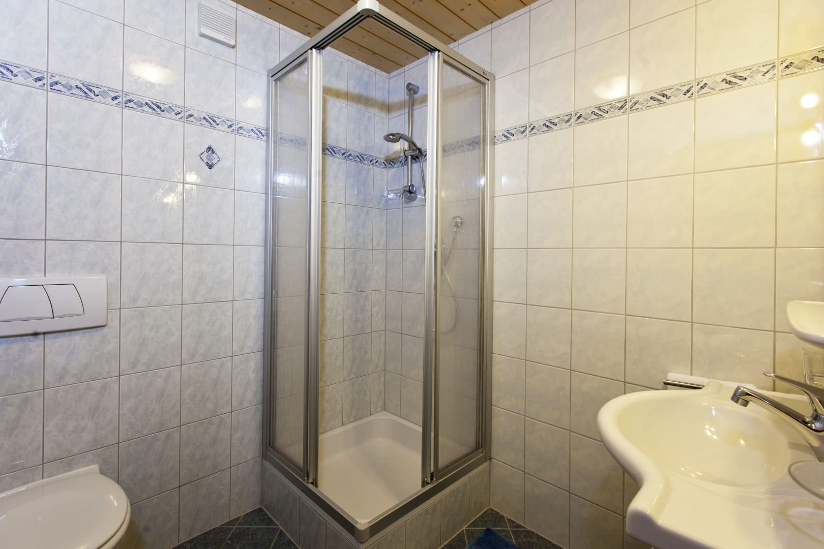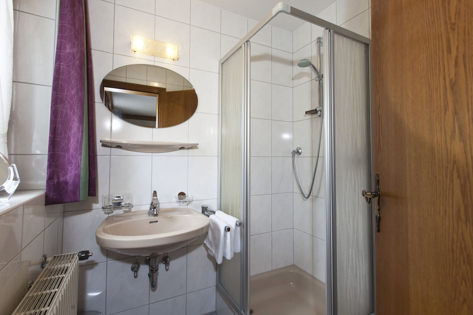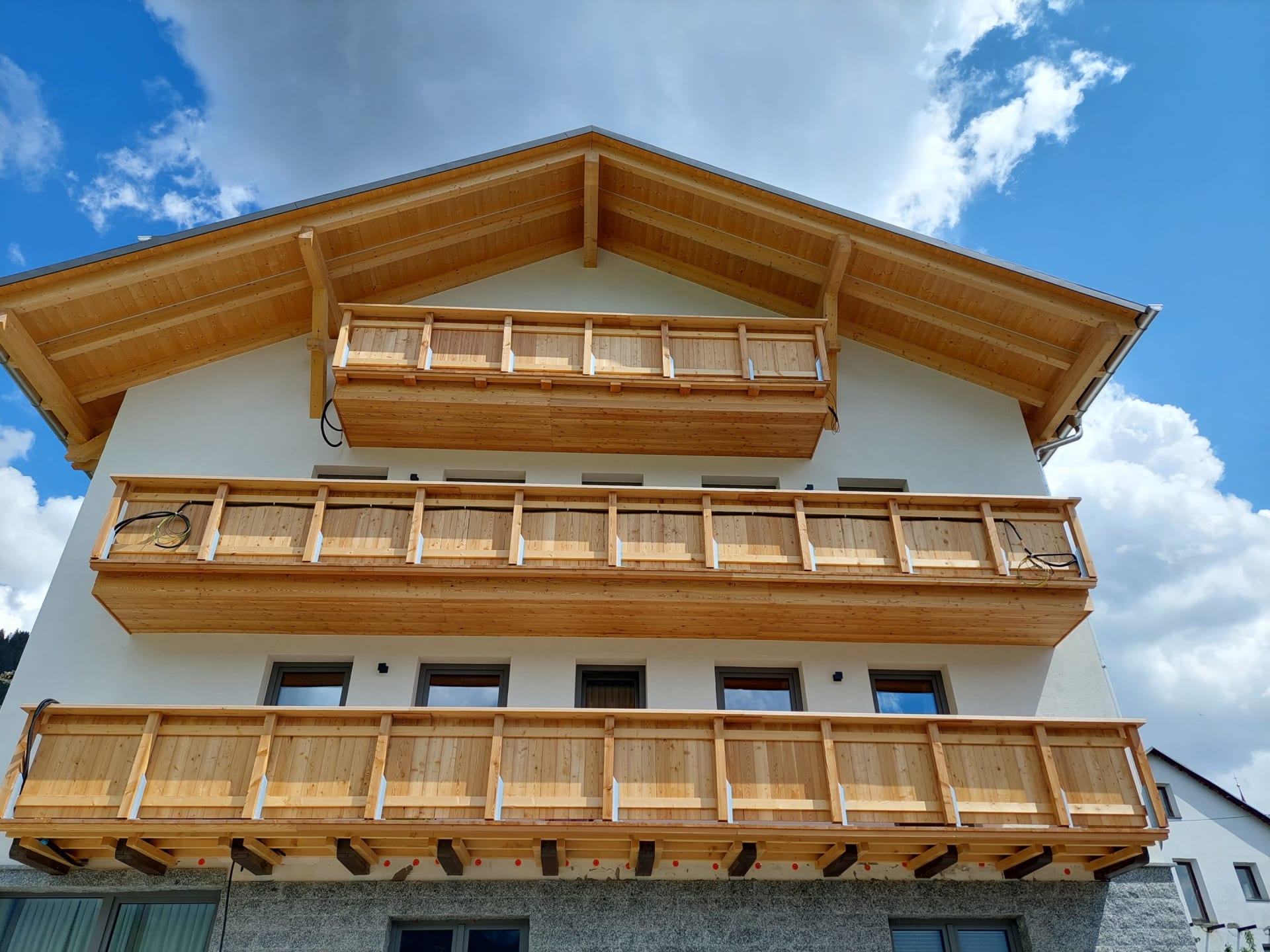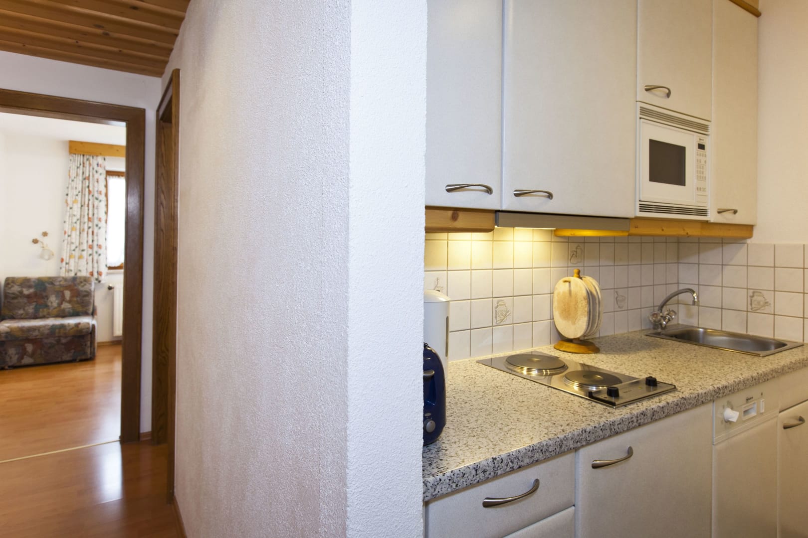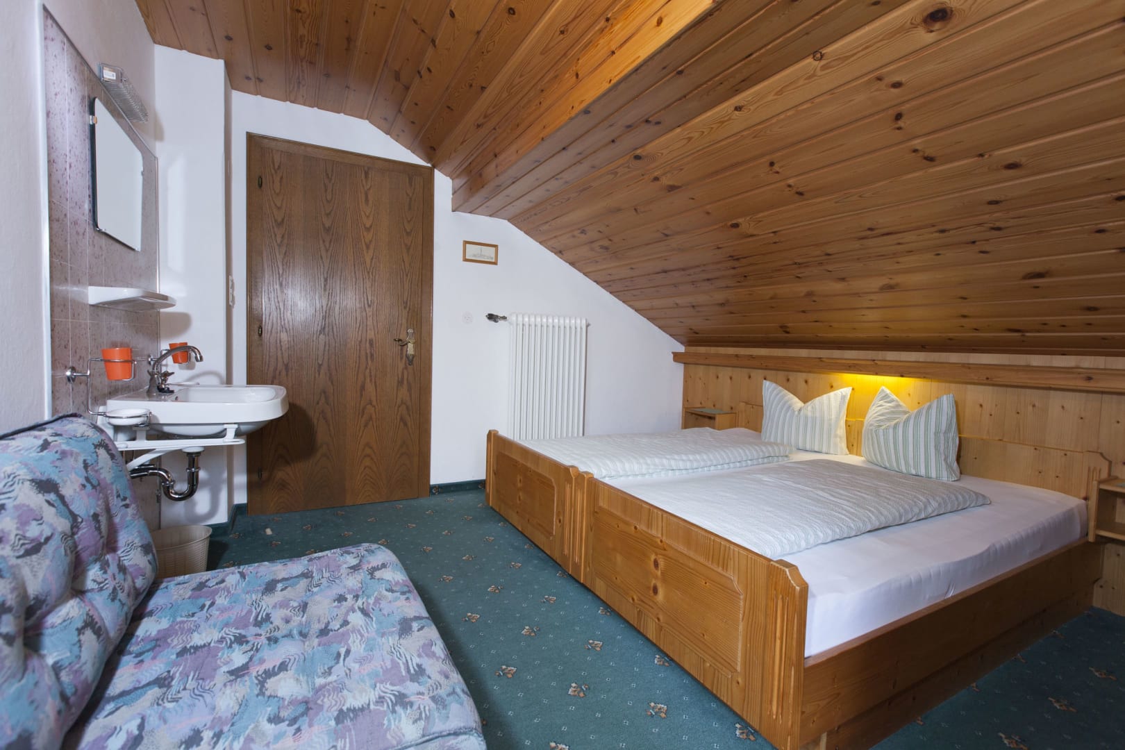 Die Ferienwohnung Engadin befindet sich zwar noch immer im dritten Stock – doch ansonsten ist sie kaum wiederzuerkennen. Ein offener Sichtdachstuhl aus hellem Fichtenholz verleiht den Räumen eine freundliche, großzügige Atmosphäre. Neue Möbel, ein großer Esstisch, bequeme Stühle und viel Platz zum Durchatmen lassen das Urlaubsherz höherschlagen.