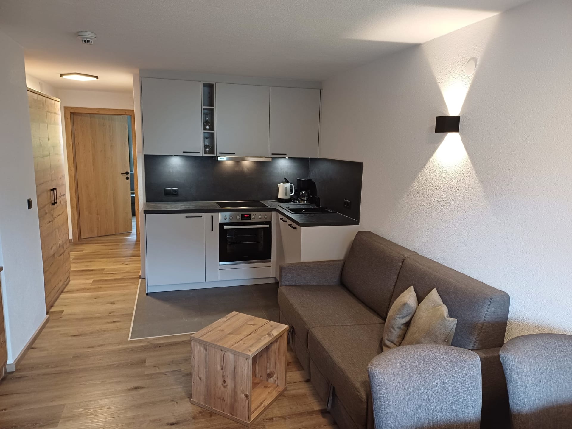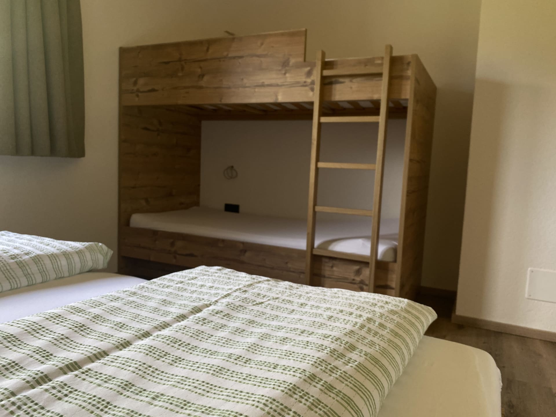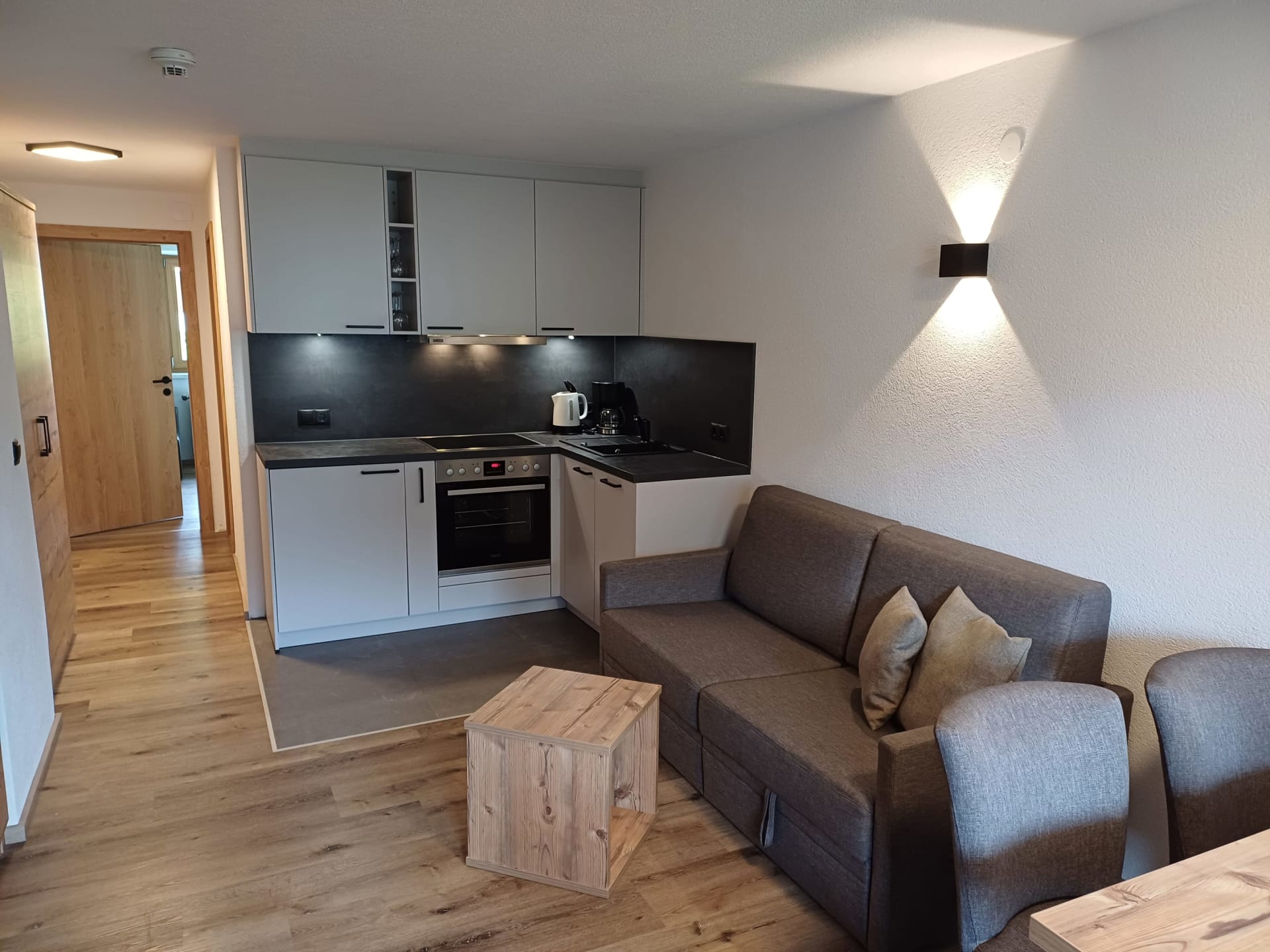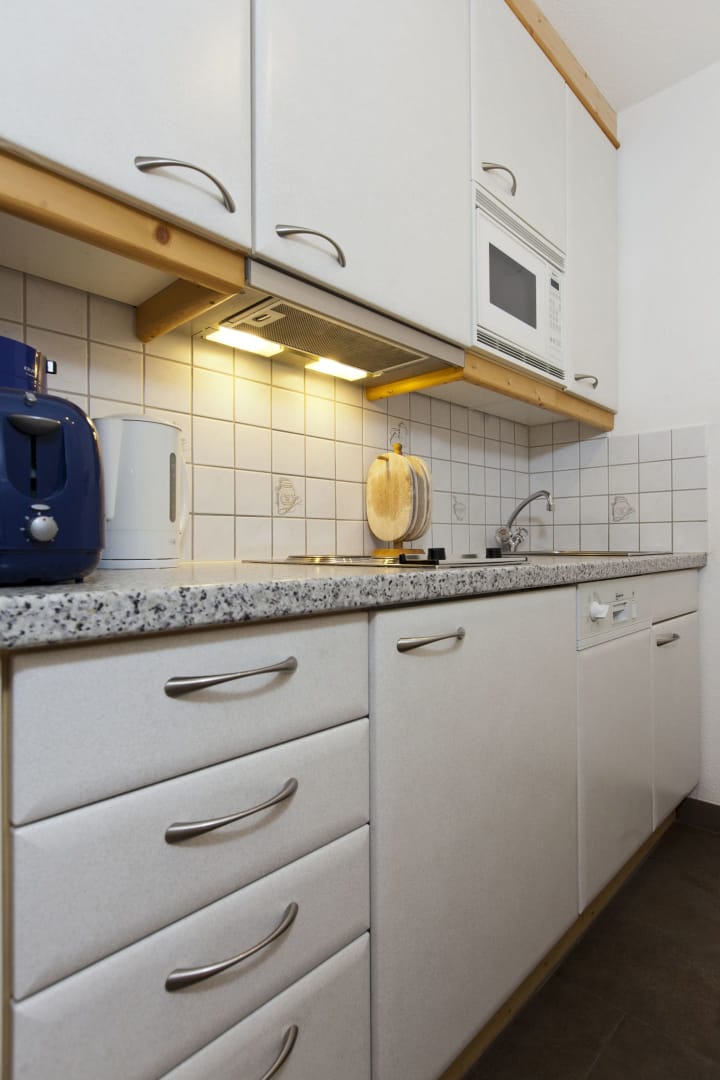 Die Wohnung bietet zwei Schlafzimmer – eines davon zusätzlich mit einem Stockbett, ideal für Familien (für 2–4 sowie 2 Personen) – sowie zwei geräumige Badezimmer. Der großzügige Wohn-Essbereich mit moderner Küche lädt zum Verweilen und Genießen ein.