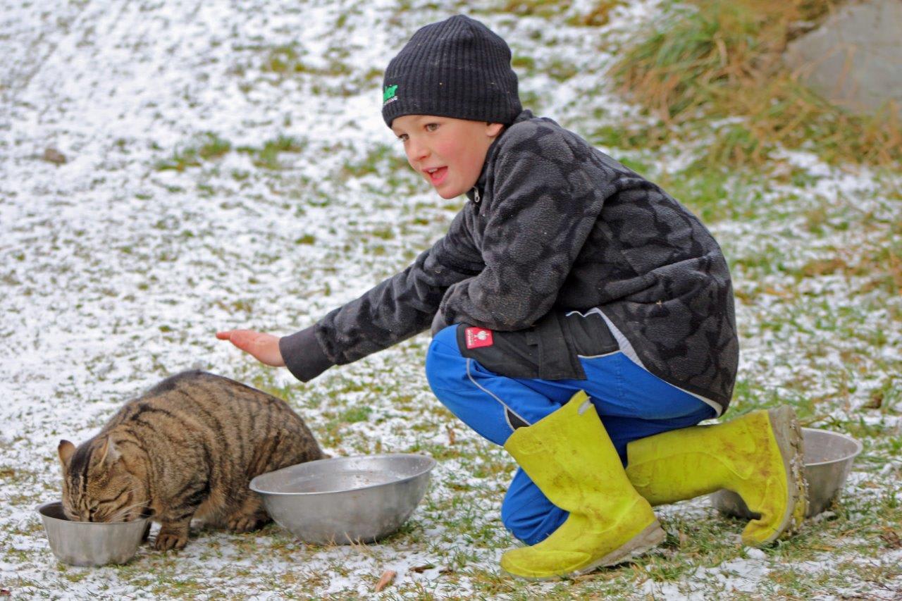Kontakt mit Tieren und die Mitarbeit am Bauernhof ist ein besonderes Erlebnis für Kinder. Ihr seid bei uns herzlich willkommen! Kinder genießen die Abenteuer auf dem Bauernhof sehr und die Katzen freuen sich auf Streicheleinheiten.