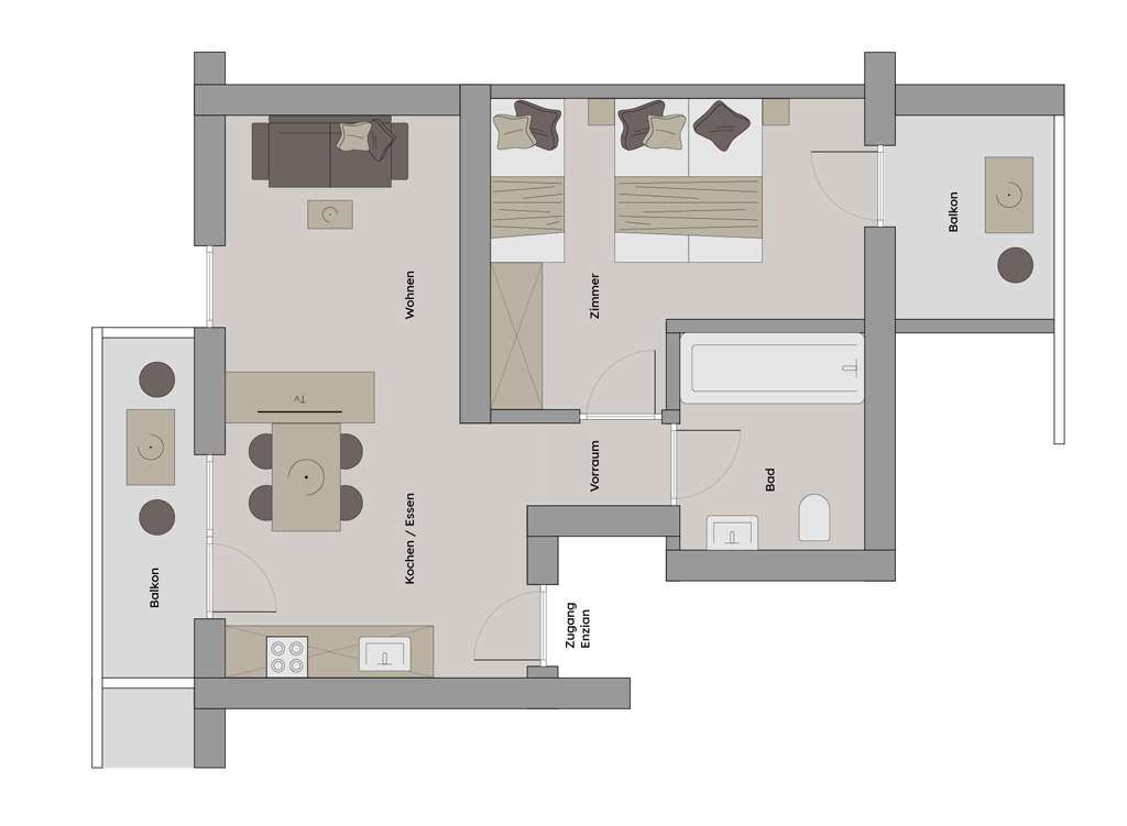 Die Ferienwohnung Enzian liegt gemütlich unter dem Fichtenholz-Dachstuhl und ist dabei geräumig und großzügig. Auf 45 m2 Wohnfläche fühlen sich Pärchen und kleine Familien rundherum wohl und geborgen. Genießen Sie die ersten Sonnenstrahlen am Ostbalkon und den herrlichen Ausblick mit Nachmittagsonne vom Westbalkon.