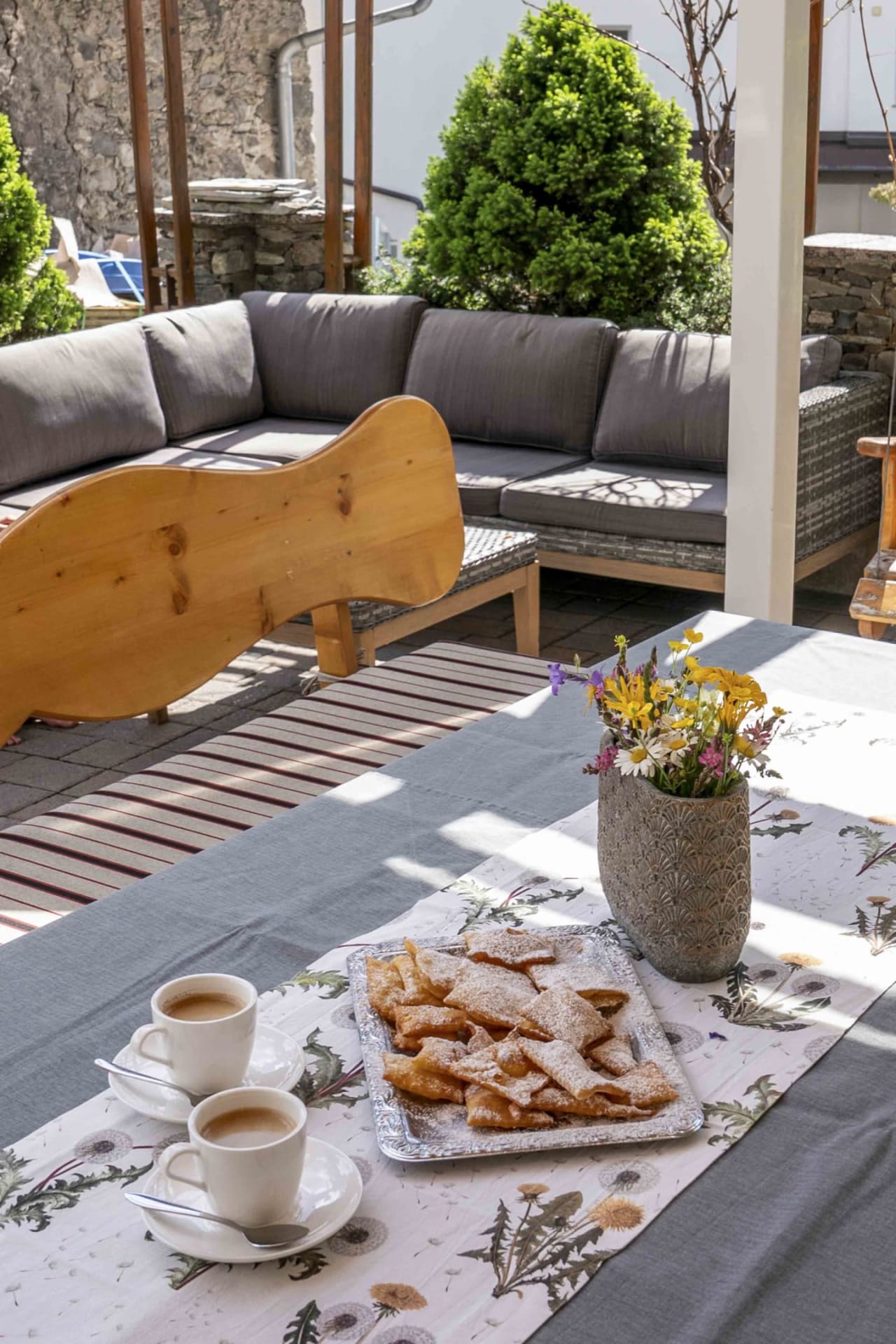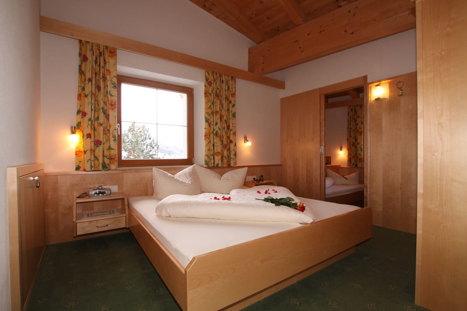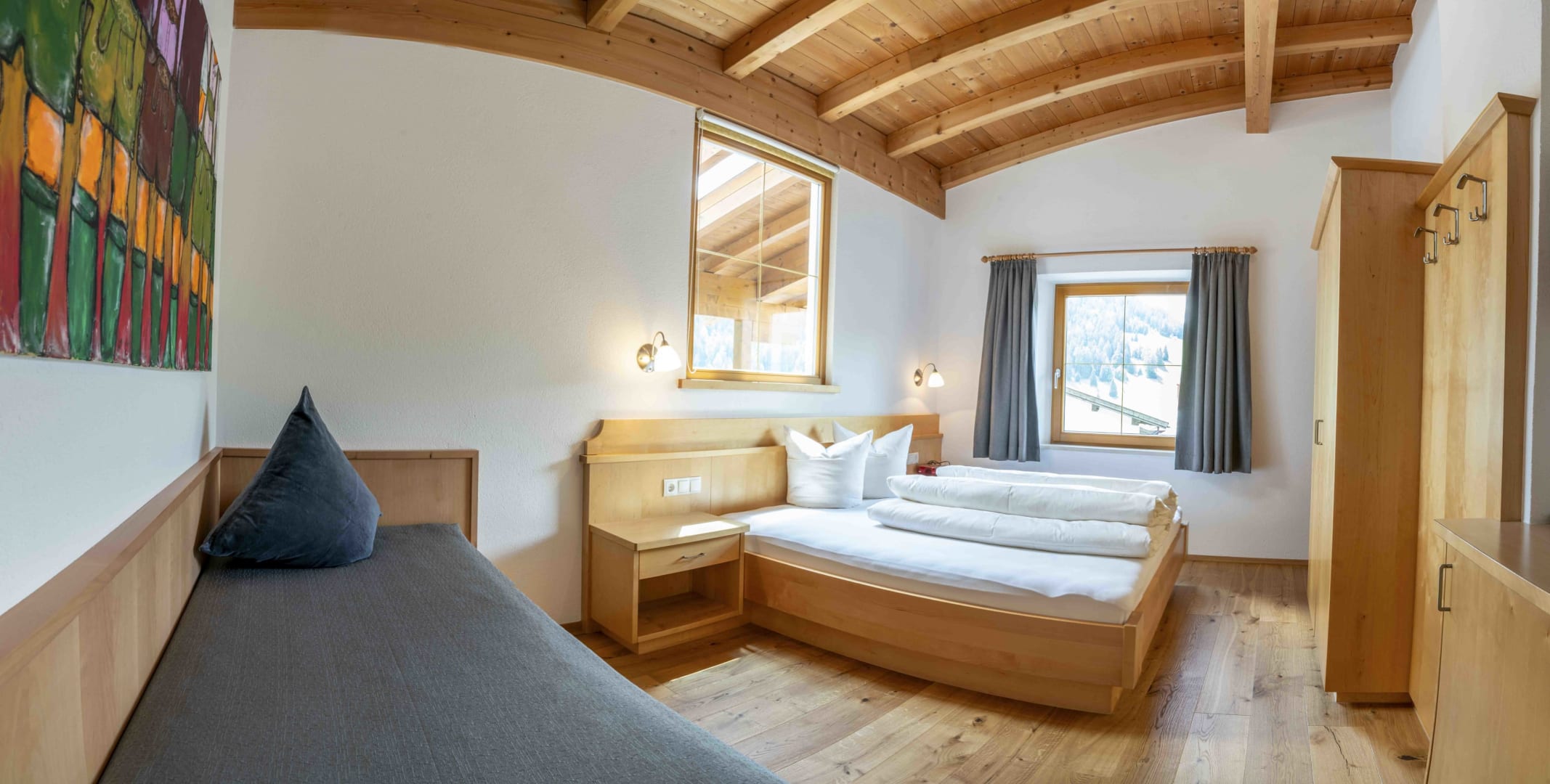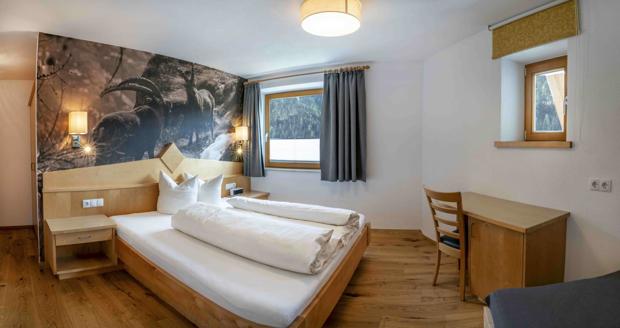 Willkommen in unserer super komfortablen und modernen Ferienwohnung, Ihrem idealen Rückzugsort für einen unvergesslichen Urlaub mit Bergpanorama. Auf großzügigen 85 m² bietet diese helle Nichtraucher-Wohnung Platz für 2 bis 6 Personen und verbindet stilvolles Design mit höchstem Wohnkomfort. Sie verfügt über zwei separate Schlafzimmer, die mit bequemen Doppelbetten sowie zwei zusätzlichen Einzelbetten ausgestattet sind, und somit flexible Schlafmöglichkeiten für bis zu 6 Personen bieten. Für zusätzlichen Komfort sorgen zwei Bäder mit Dusche und WC. Der große, gemütliche Wohnraum lädt mit einem geräumigen Esstisch, der Platz für mindestens 6 bis 8 Personen bietet, zu gemeinsamen Mahlzeiten und geselligen Abenden ein. Die sehr gut ausgestattete Küche lässt keine Wünsche offen und beinhaltet einen 4-Plattenherd, Backofen, Mikrowelle, Kühlschrank, Toaster, Thermomix, Wasserkocher und Radio sowie alle notwendigen Küchenutensilien. Genießen Sie zudem die frische Bergluft und das atemberaubende Bergpanorama von Ihrer 12 m² großen, überdachten Süd-Terrasse – der perfekte Ort für entspannte Stunden.  Ein Kinderbett kann bei Bedarf gerne bereitgestellt werden. Erleben Sie einen Urlaub, der keine Wünsche offenlässt!