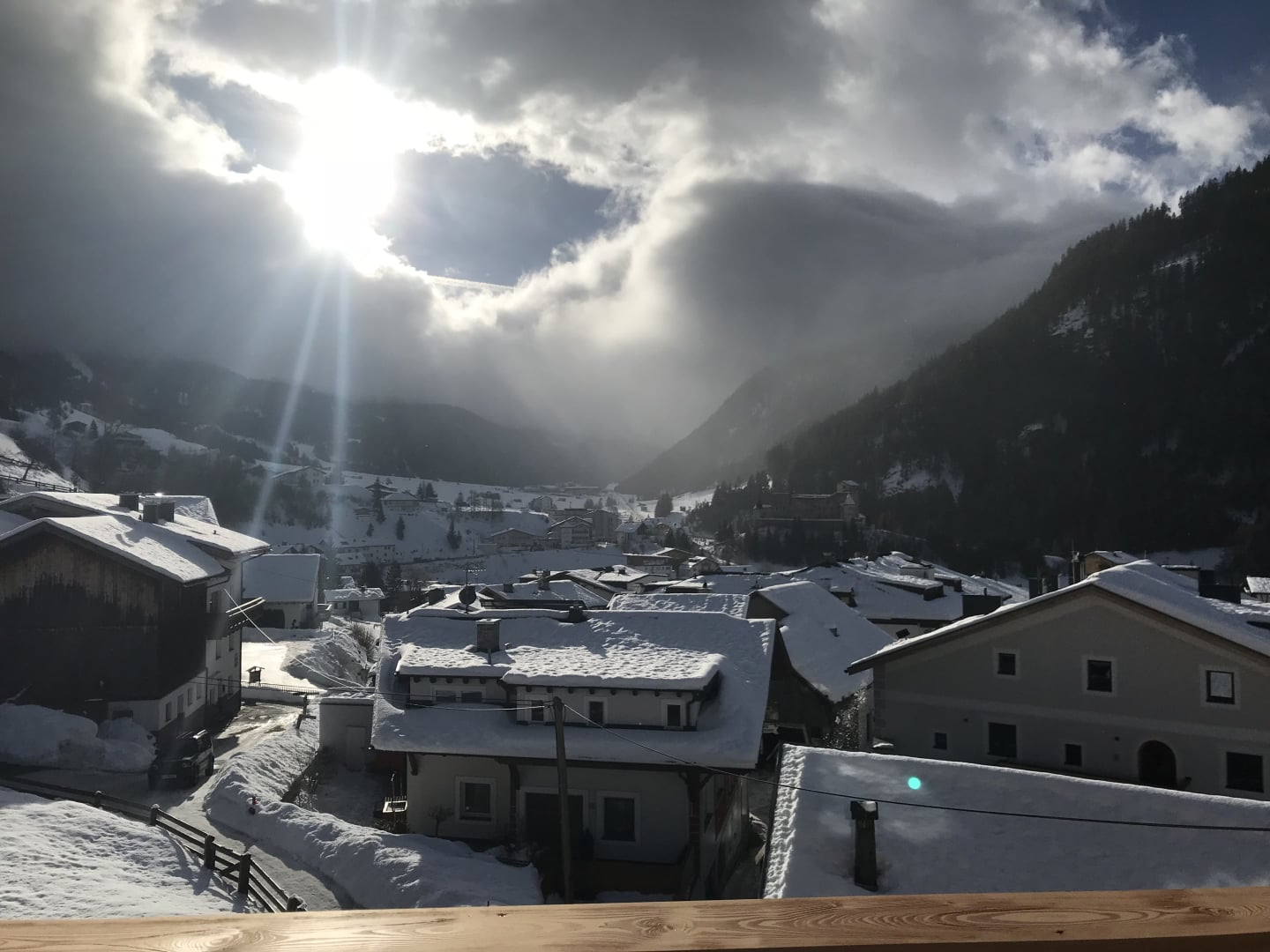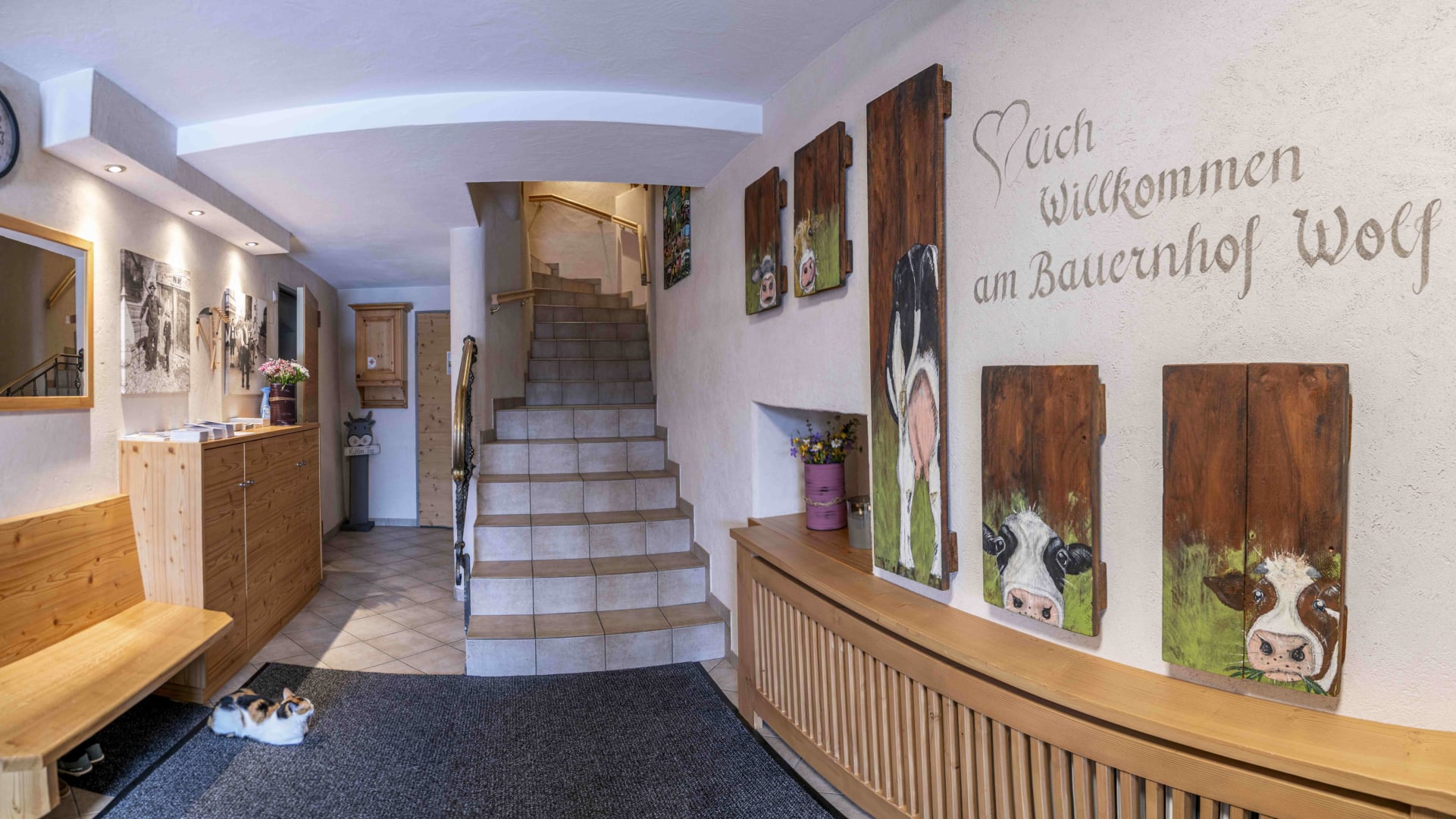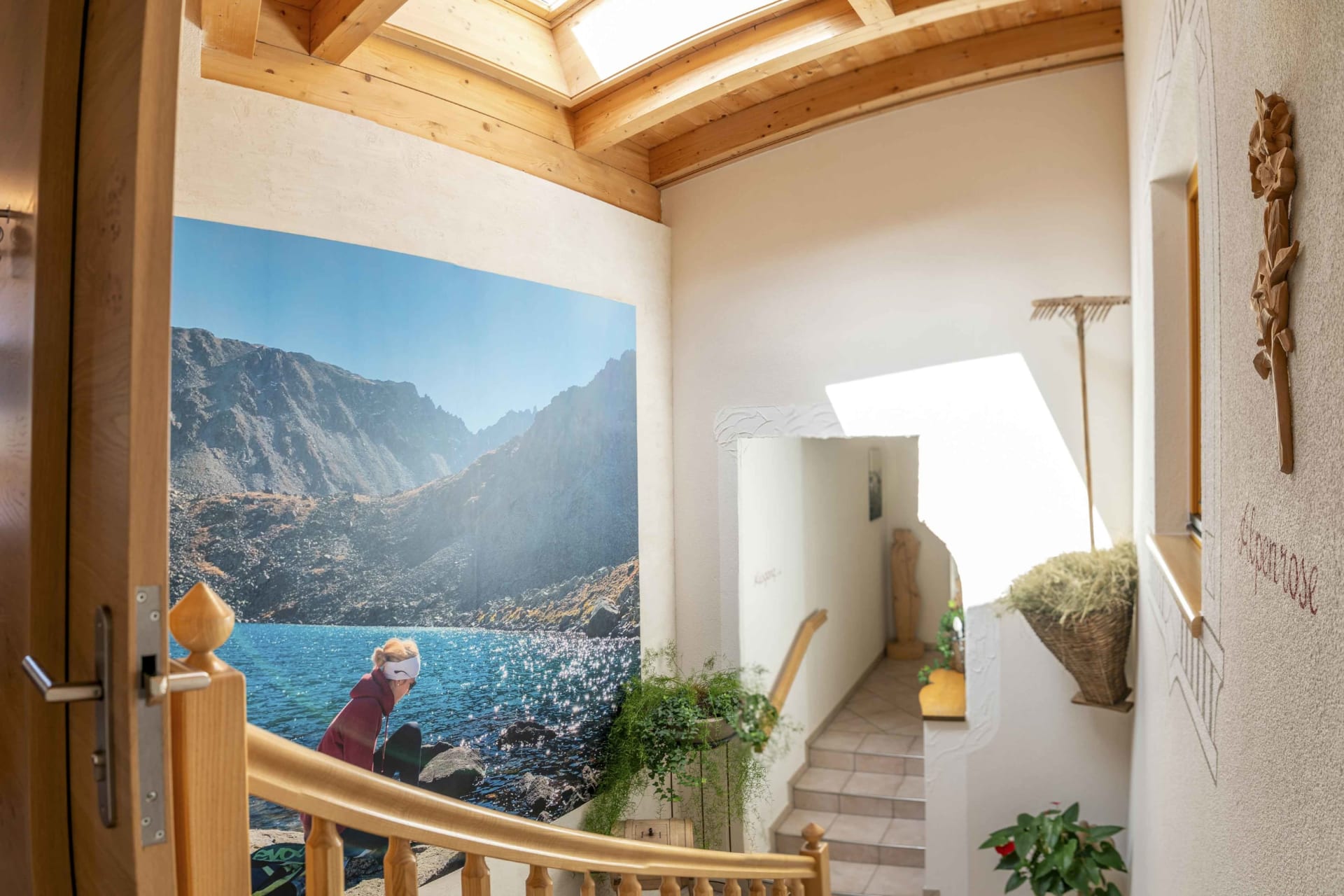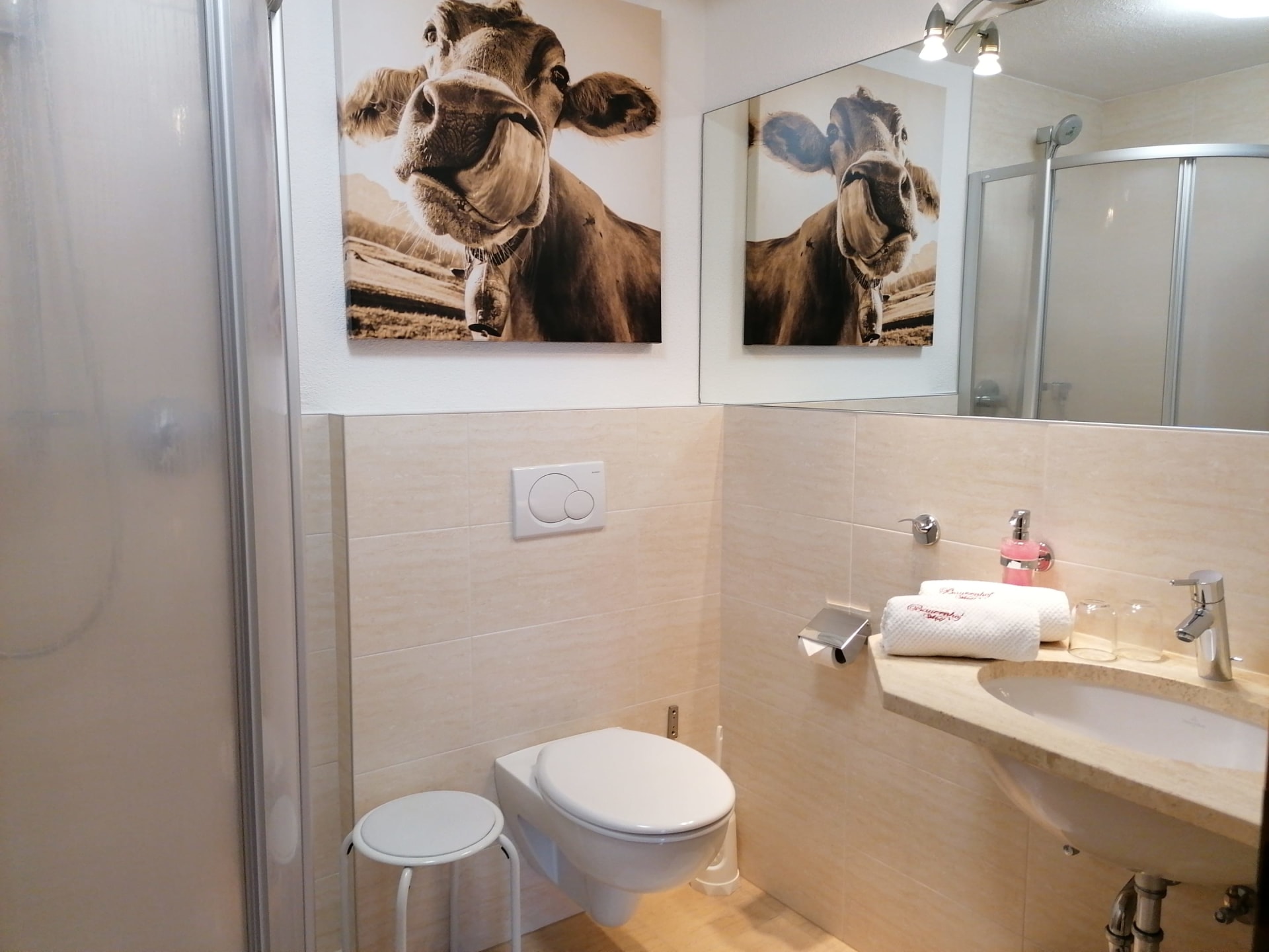 Ein einladender Vorraum schafft zusätzliche Gemütlichkeit. Ihr persönlicher Logenplatz ist der sehr großzügige Balkon mit garantierter Nachmittagssonne, ausgestattet mit bequemer Sitzgelegenheit, einem Liegestuhl und einer schützenden Markise. Hier genießen Sie die frische Bergluft und den Panoramablick in vollen Zügen. Dies ist eine Nichtraucherwohnung.
