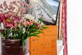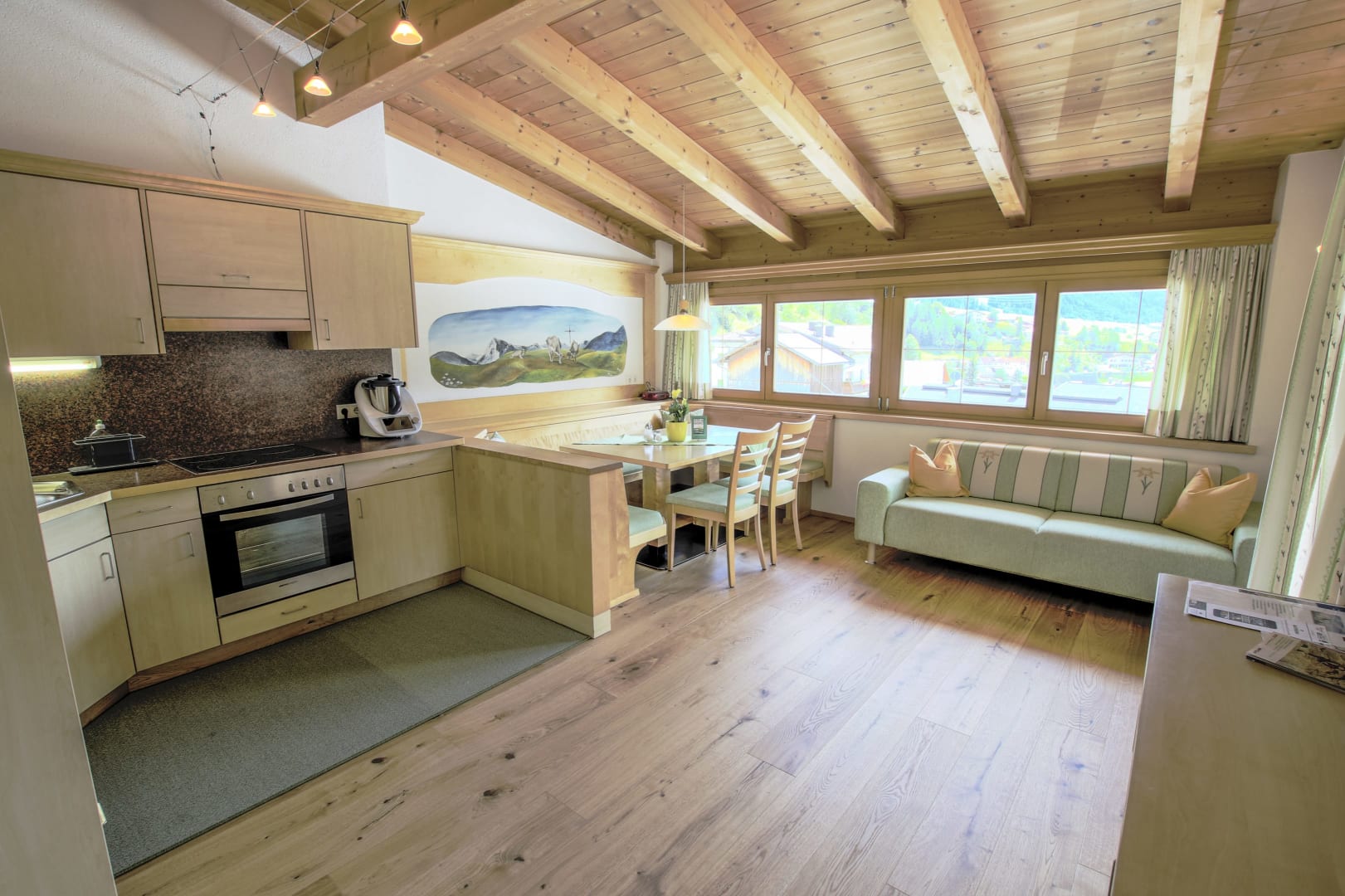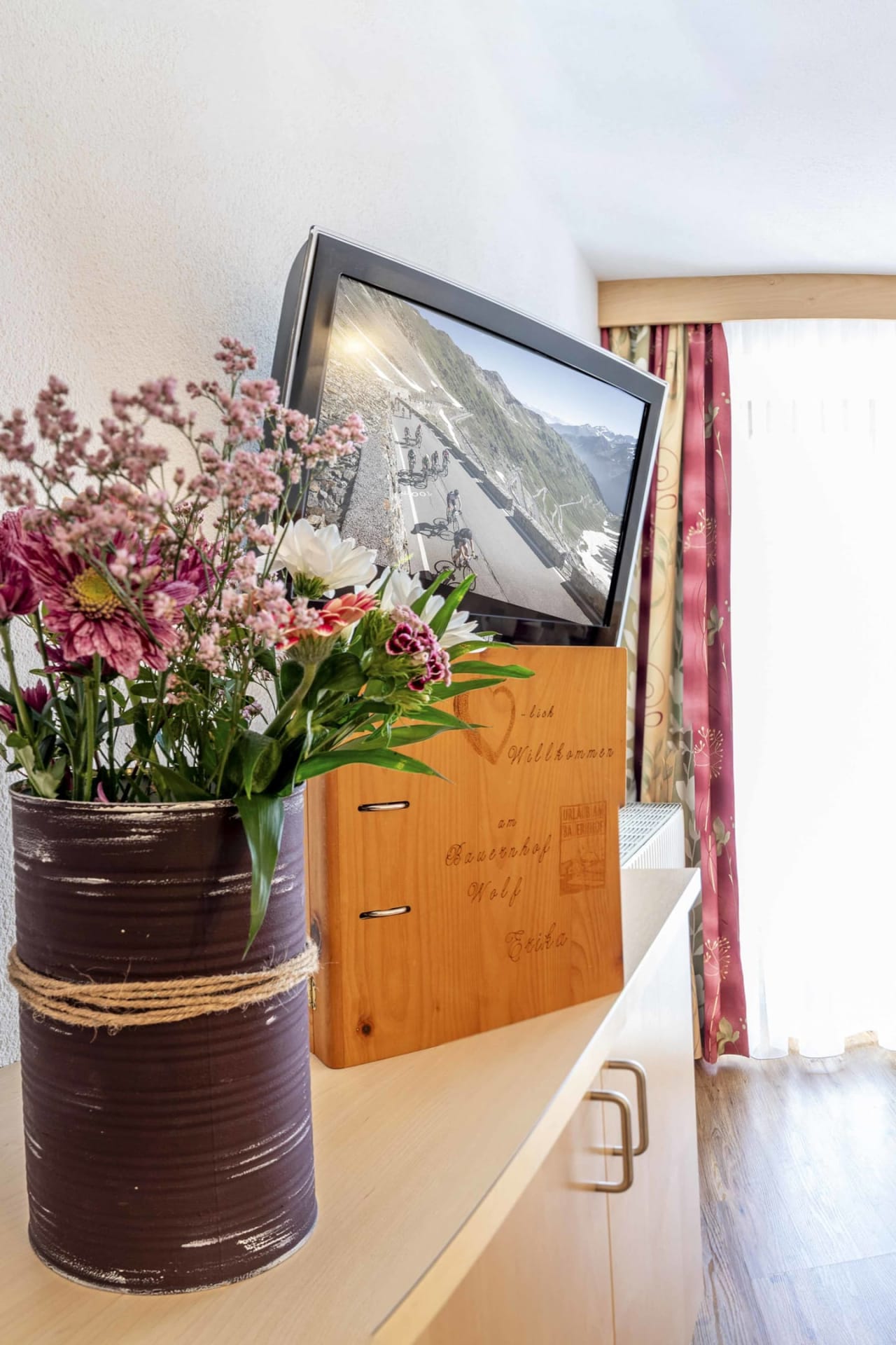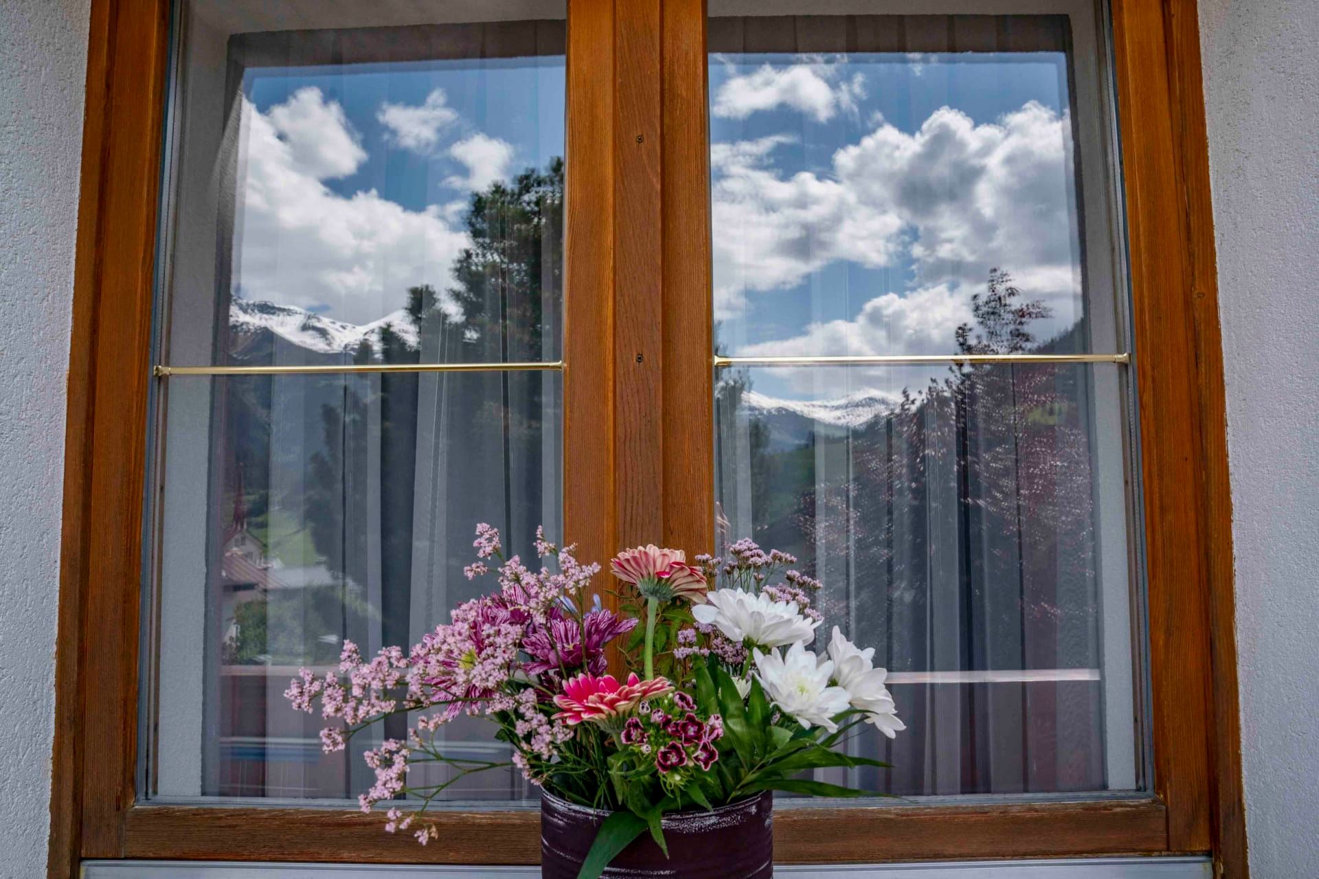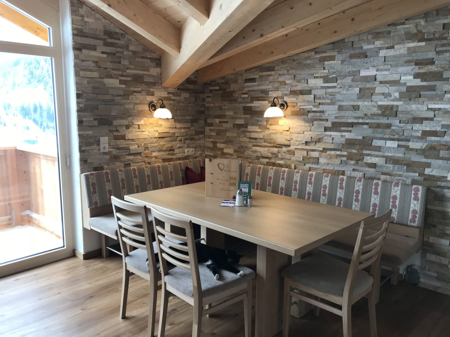 Ein einladender Vorraum schafft zusätzliche Gemütlichkeit. Ihr persönlicher Logenplatz ist der sehr großzügige Balkon mit garantierter Nachmittagssonne, ausgestattet mit bequemer Sitzgelegenheit, einem Liegestuhl und einer schützenden Markise. Hier genießen Sie die frische Bergluft und den Panoramablick in vollen Zügen. Dies ist eine Nichtraucherwohnung.