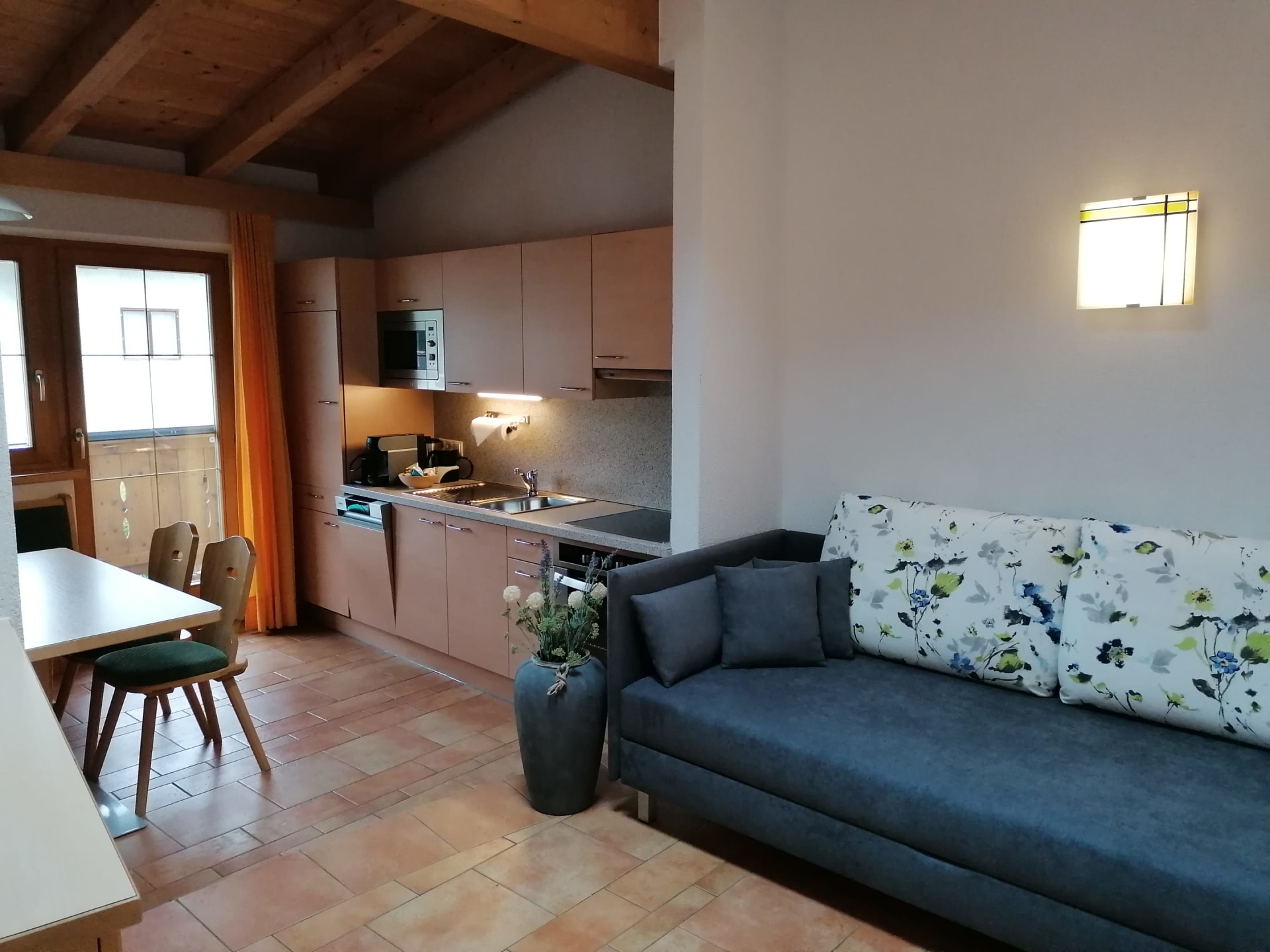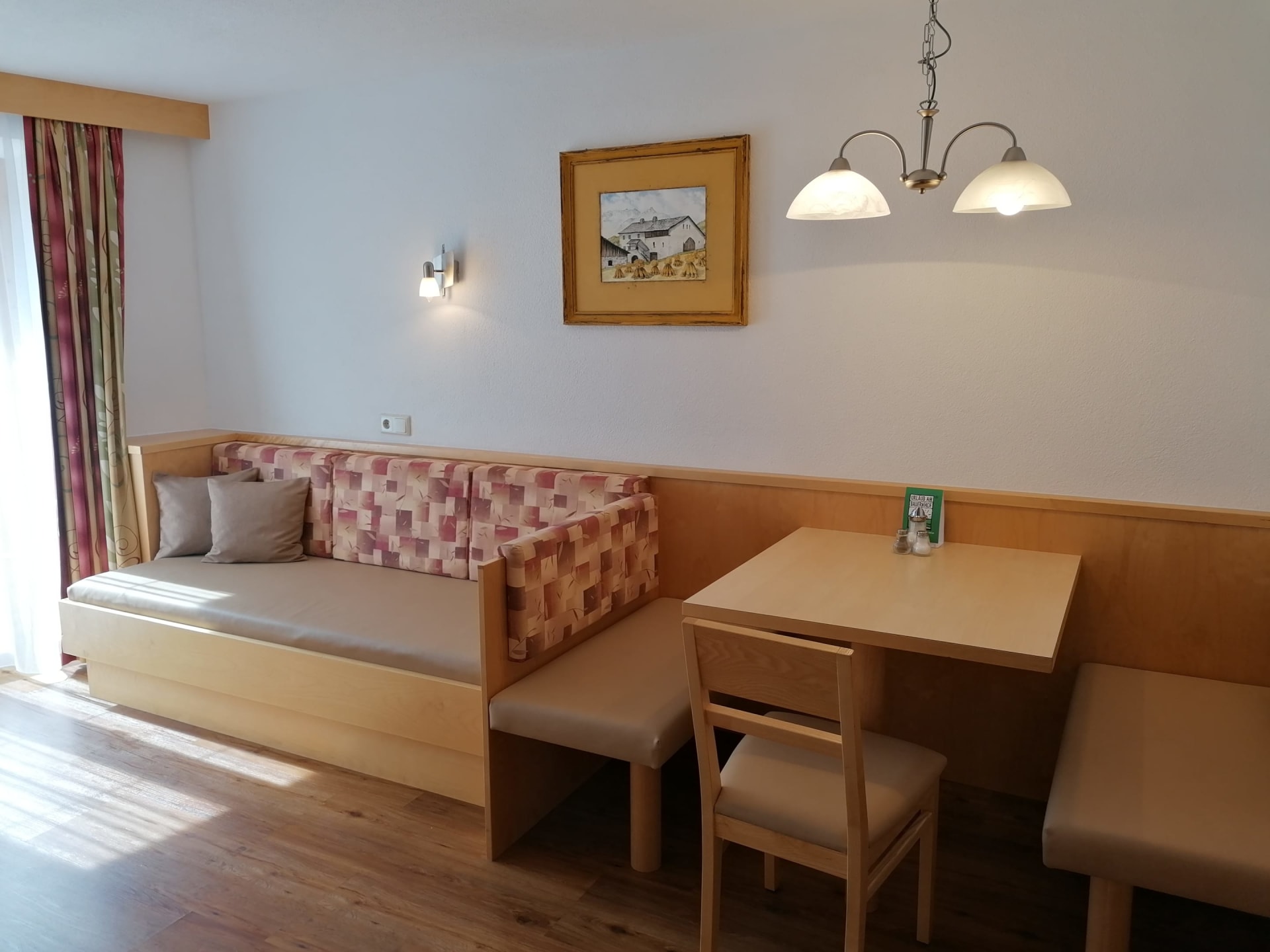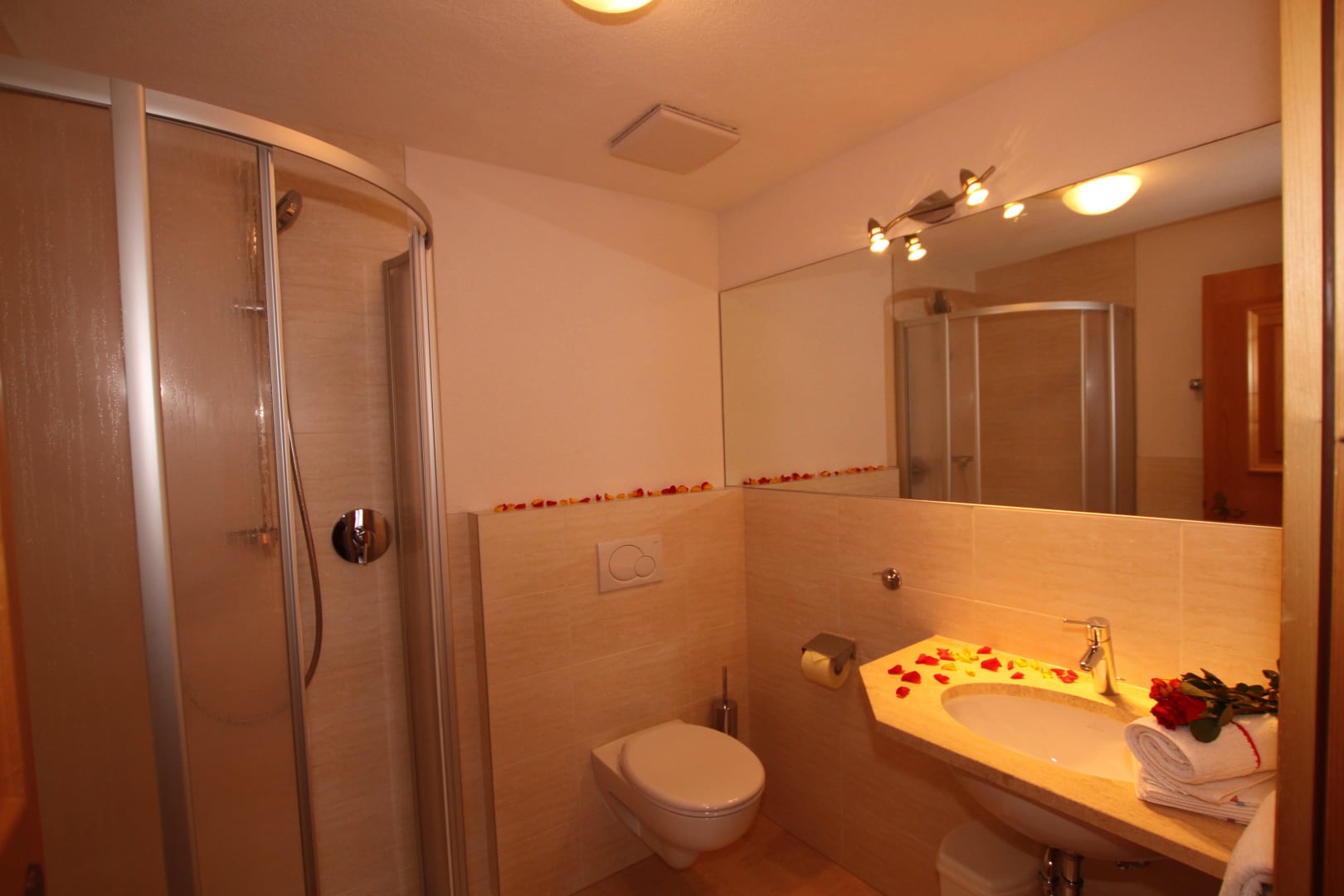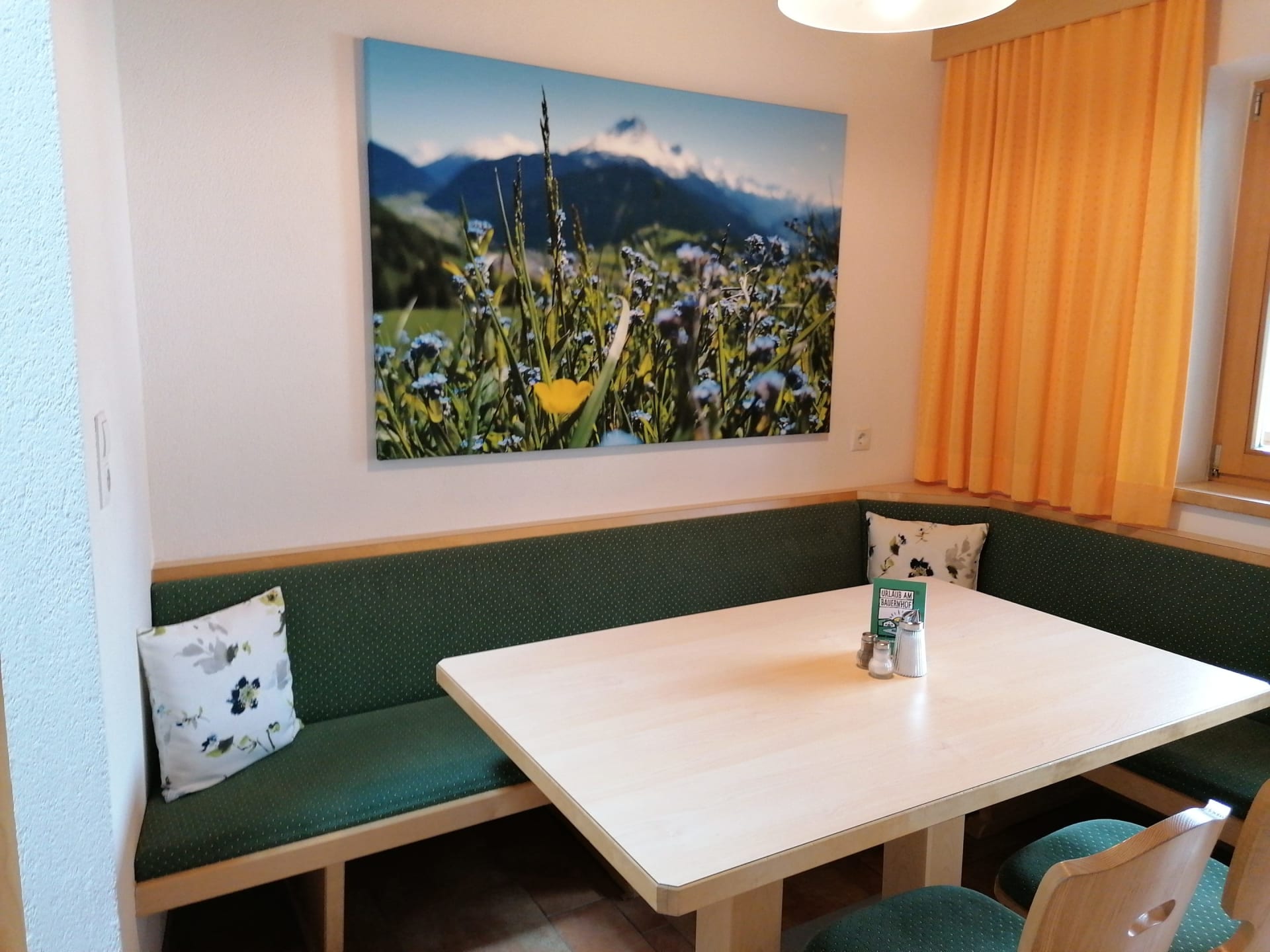 Ein einladender Vorraum schafft zusätzliche Gemütlichkeit. Ihr persönlicher Logenplatz ist der sehr großzügige Balkon mit garantierter Nachmittagssonne, ausgestattet mit bequemer Sitzgelegenheit, einem Liegestuhl und einer schützenden Markise. Hier genießen Sie die frische Bergluft und den Panoramablick in vollen Zügen. Dies ist eine Nichtraucherwohnung.