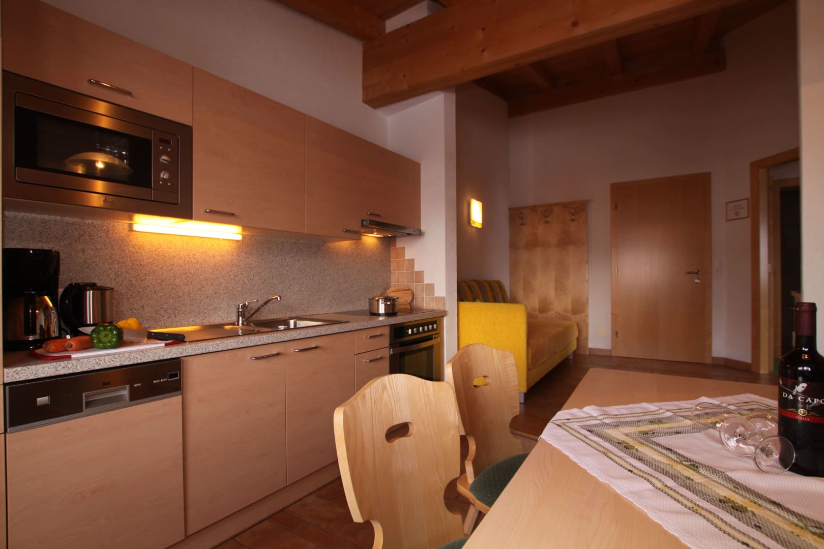 Die Wohnung verfügt über ein separates Schlafzimmer mit einem komfortablen Doppelbett sowie ein behagliches Wohn-/Schlafzimmer, ausgestattet mit einem gemütlichen Einzelbett oder Schlafsofa, einem modernen Flat-Screen TV und Radio. Die neu renovierte Küche lässt keine Wünsche offen und beinhaltet einen 4-Plattenherd, Kühlschrank, Toaster, Wasserkocher, Mikrowelle und alles Nötige für Ihre kulinarischen Kreationen. Das Badezimmer mit Dusche und WC bietet zudem einen Haarföhn und flauschige Handtücher für Ihren Komfort.