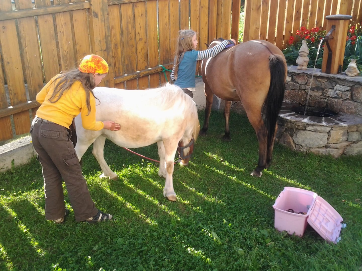 Am Abend dürfen Ihre Kinder gern bei der Stallarbeit mithelfen oder mit unseren Tieren spielen, sie streicheln.