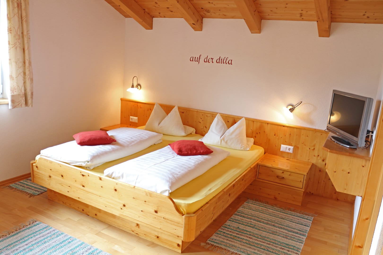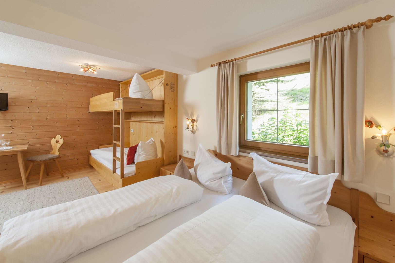 Viel Holz bietet Wärme und Ruhe. Die liebevoll eingerichteten Zimmer sind natürlich mit modernem Standard ausgestattet. DU/WC, Fön, SAT-TV, Wlan, Telefon, Safe,...Alles Nichtraucherzimmer! Im Berghof verbindet man Tradition mit Qualität.