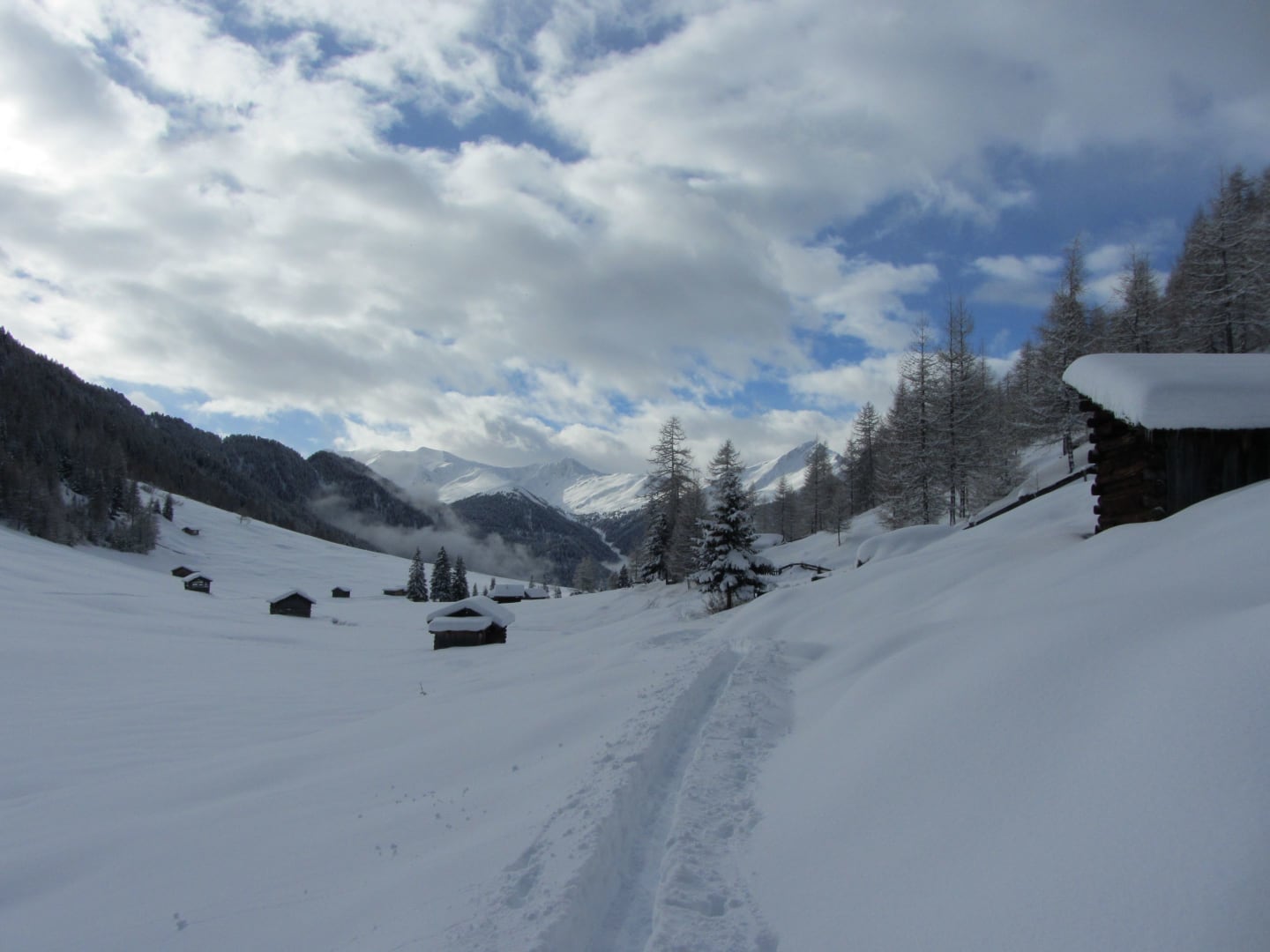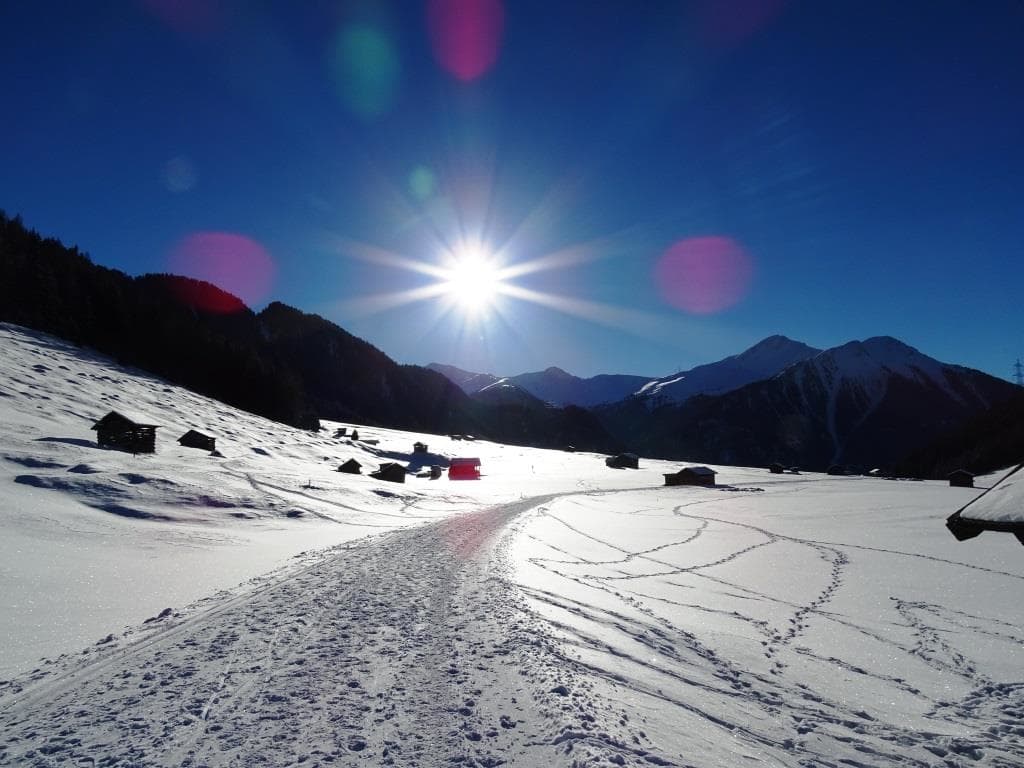 Wir befinden uns hoch oben am Berg - im Weiler Greit, auf 1.400m - am Eingang der Pfundser Tschey.