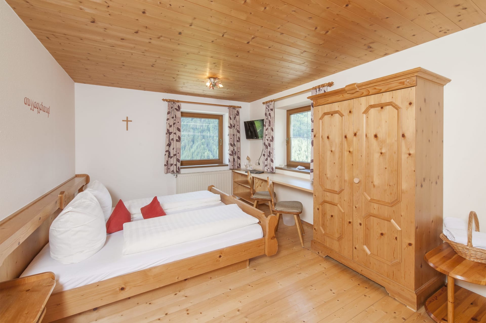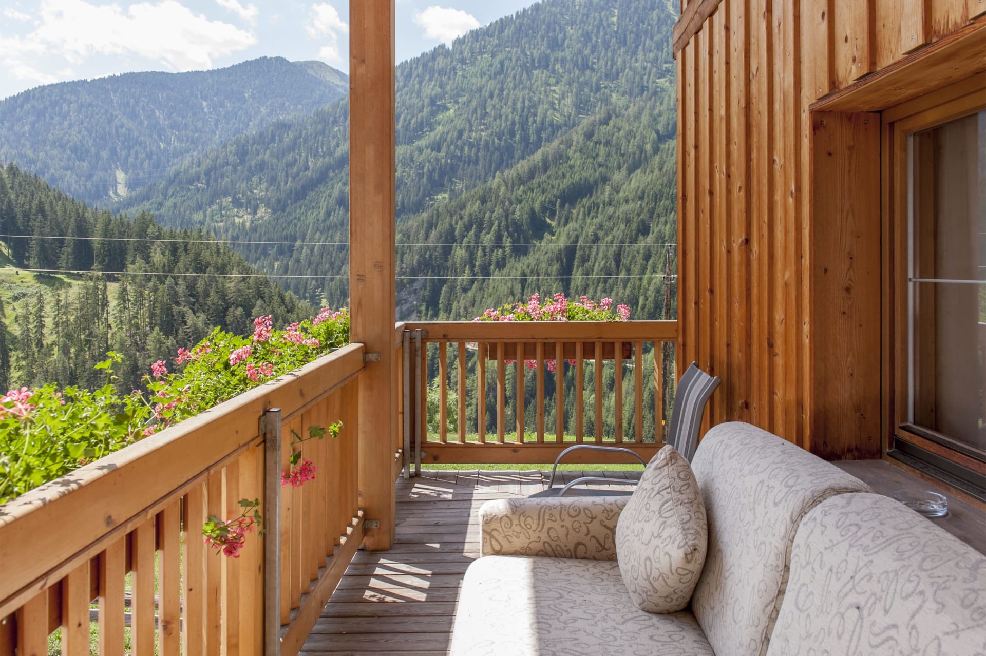 Gemu?tliches Doppelzimmer mit Balkon und herrlichem Panoramablick. Genießen Sie die unverbaute Bergwelt & klare Luft. Großzügige Zimmer mit (Schlaf)-Couch - ideal auch für Familien.