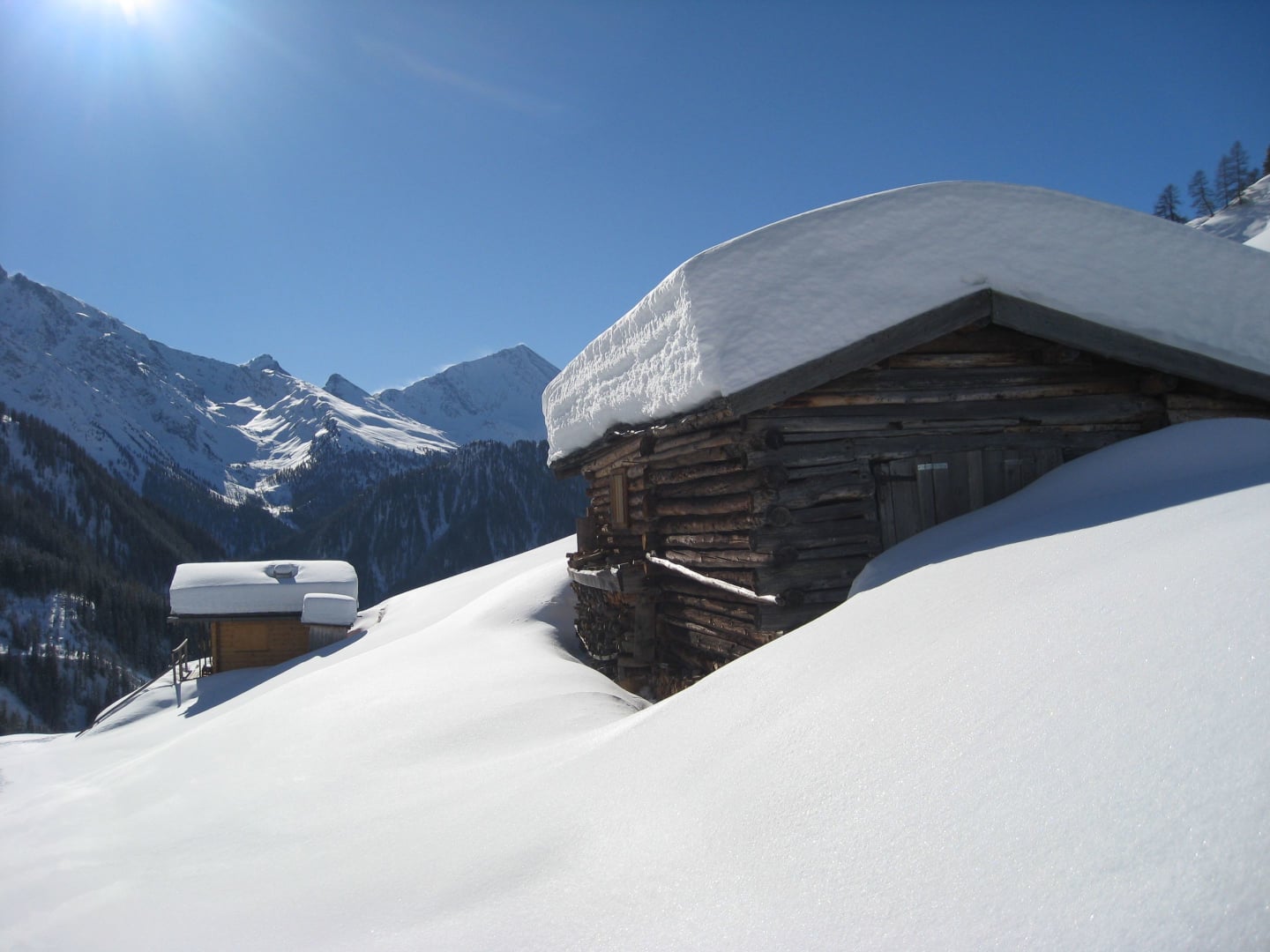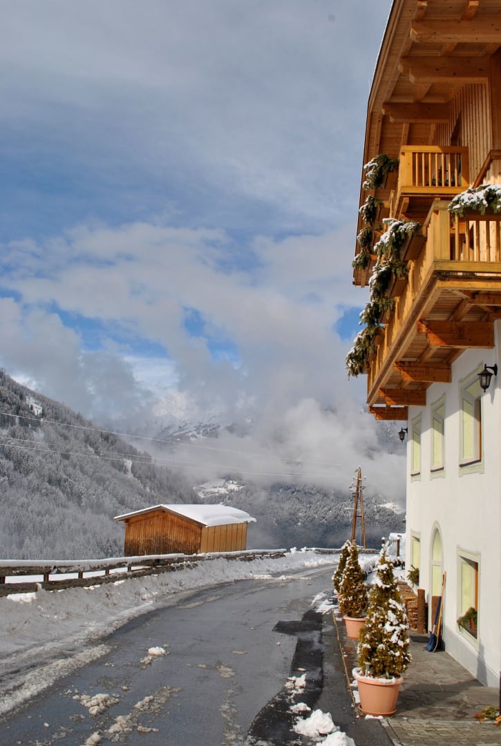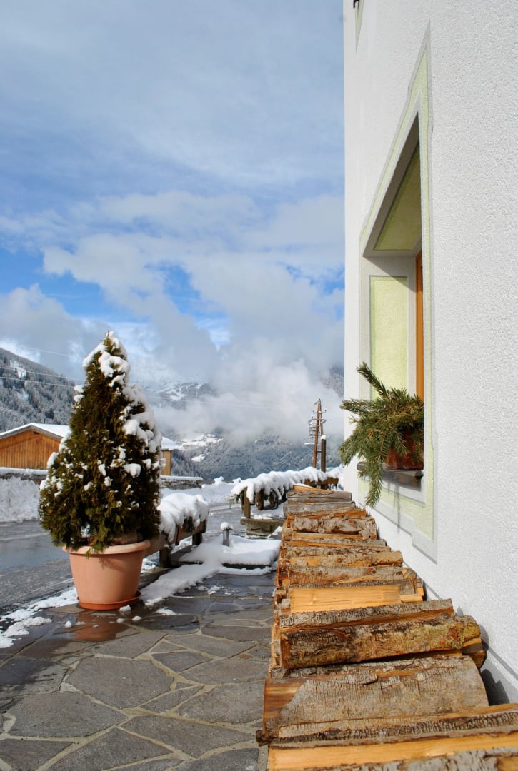 Wir befinden uns hoch oben am Berg - im Weiler Greit, auf 1.400m - am Eingang der Pfundser Tschey.