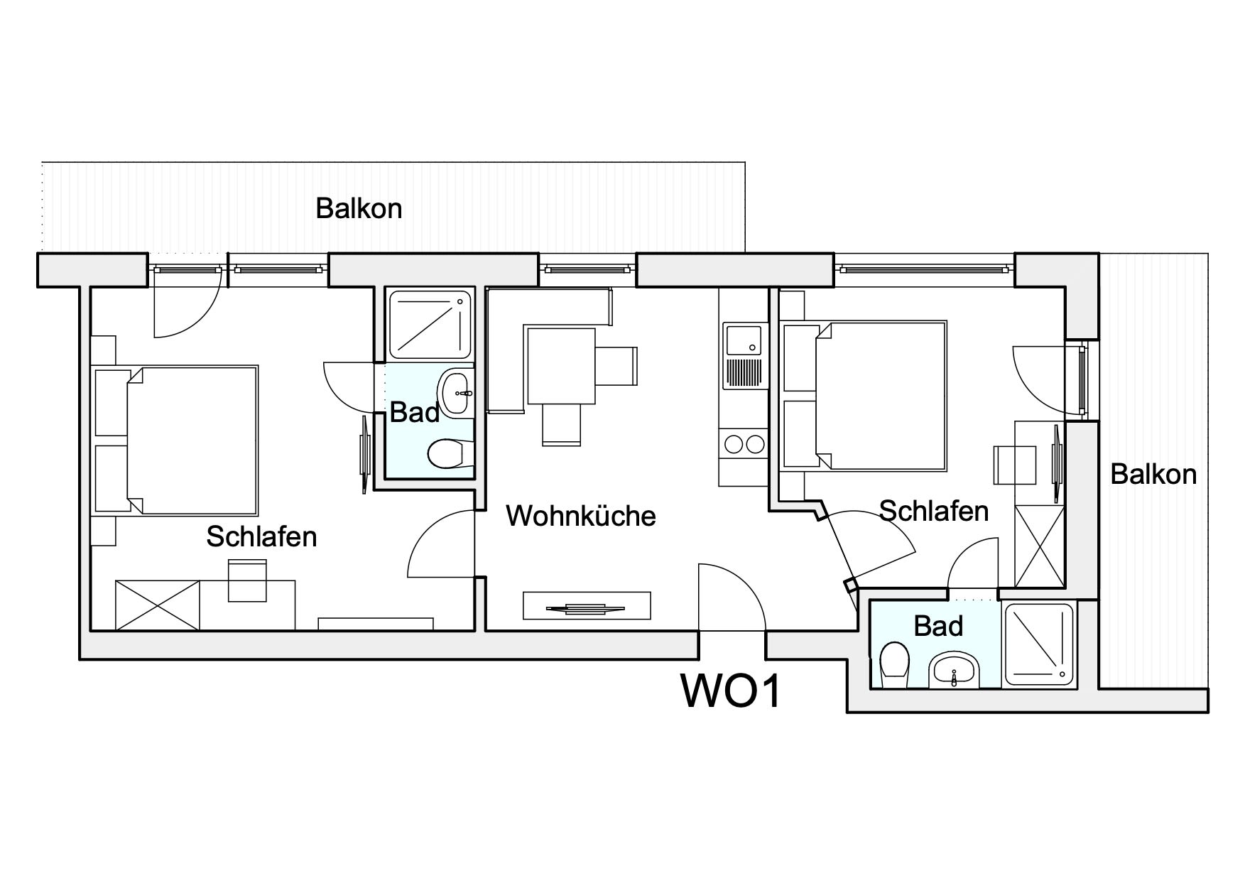 • 2 Schlafzimmer mit großen Doppelbetten (180 x 200)