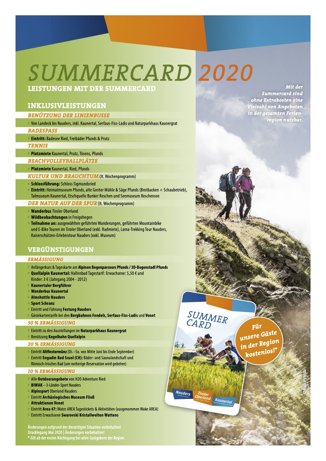 Die Haltestelle für den kostenlosen Skibus ist in der Nähe und führt zu diesen familienfreundlichen Skigebieten. Außerdem sind mit dem Lineinbus die Zwei-Länder Skiarena Nauders sowie die Top-Skidestinationen Samnaun/Ischgl erreichbar.