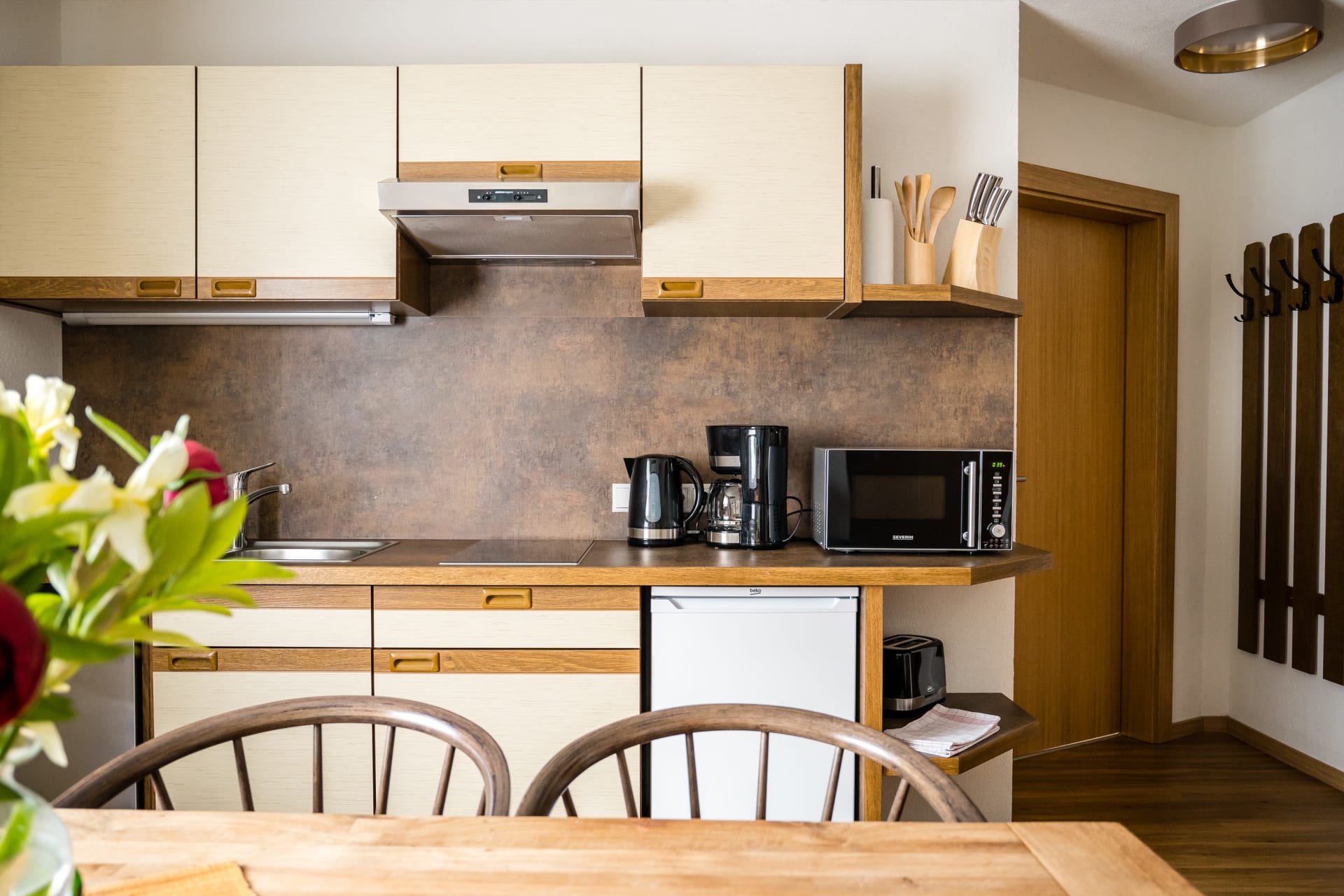 • 2 komplett ausgestattete Küchen mit allem was man zum kochen braucht