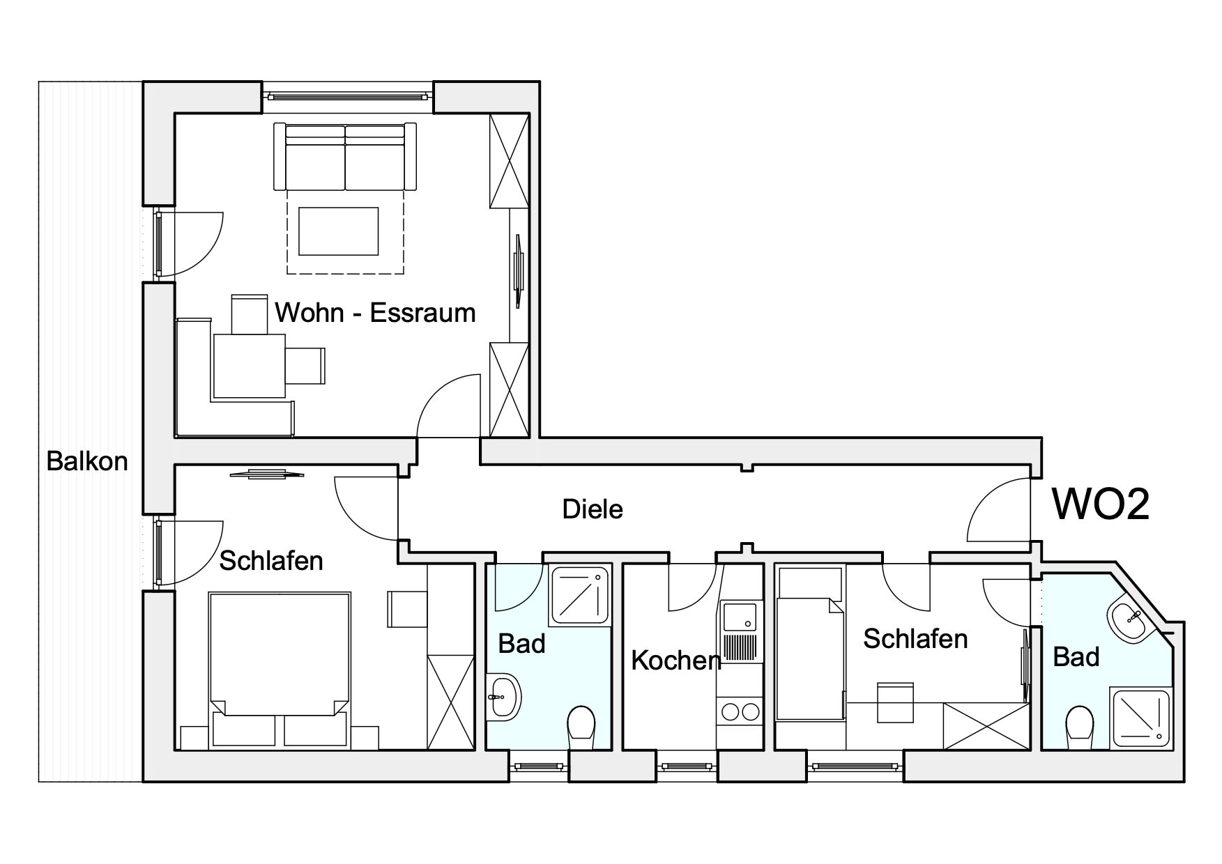 • 4 Bäder mit Regendusche, WC, Haarföhn und Handtuchtrockner