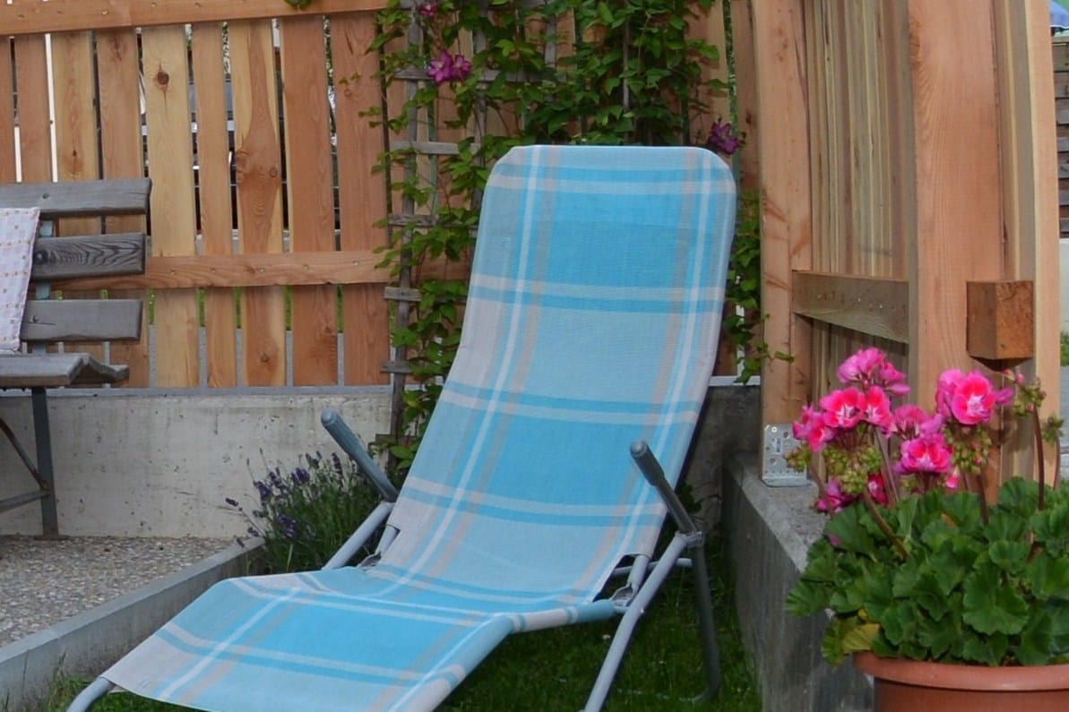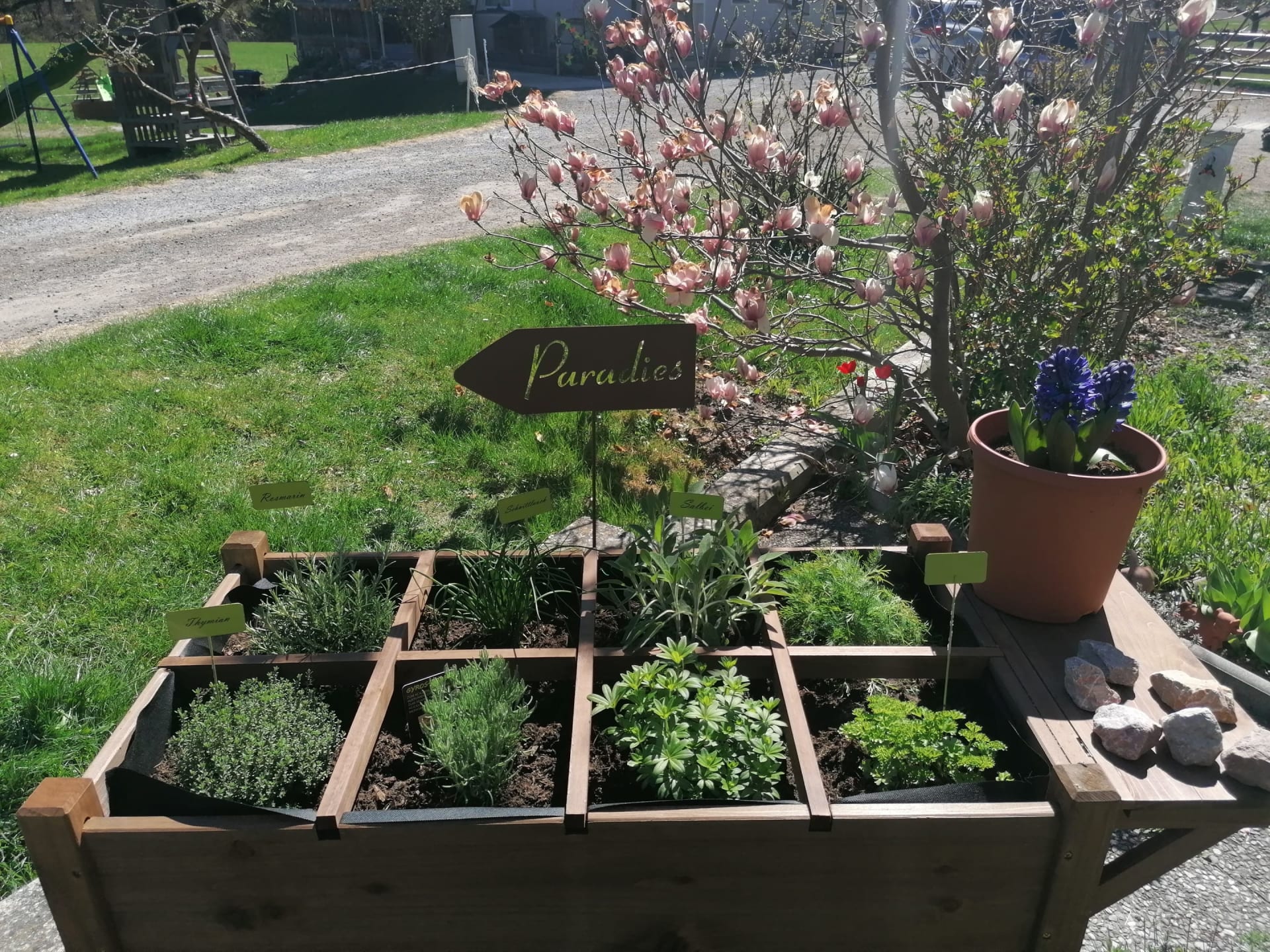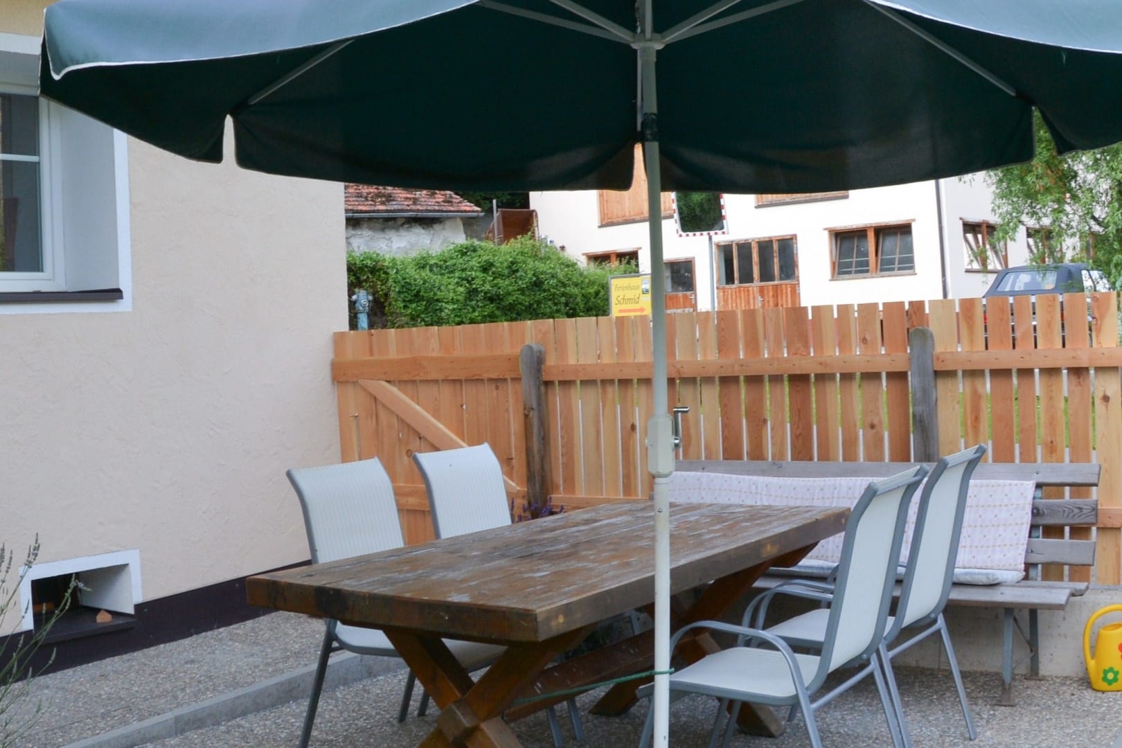 Die Ferienwohnung liegt Parterre und verfügt über eine eigene sonnige Terrasse. Von dort gelangen die KIDS direkt zu unserem Spielplatz.