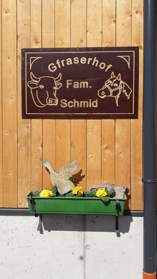 Grias enk am Bauernhof Gfraser! Wir Familie Schmid heißen Sie herzlichst Willkommen im wunderschönen Tiroler Oberland. Unser Hof liegt auf fast 1000m Seehöhe und ist umgeben von verschneiten Bergen.