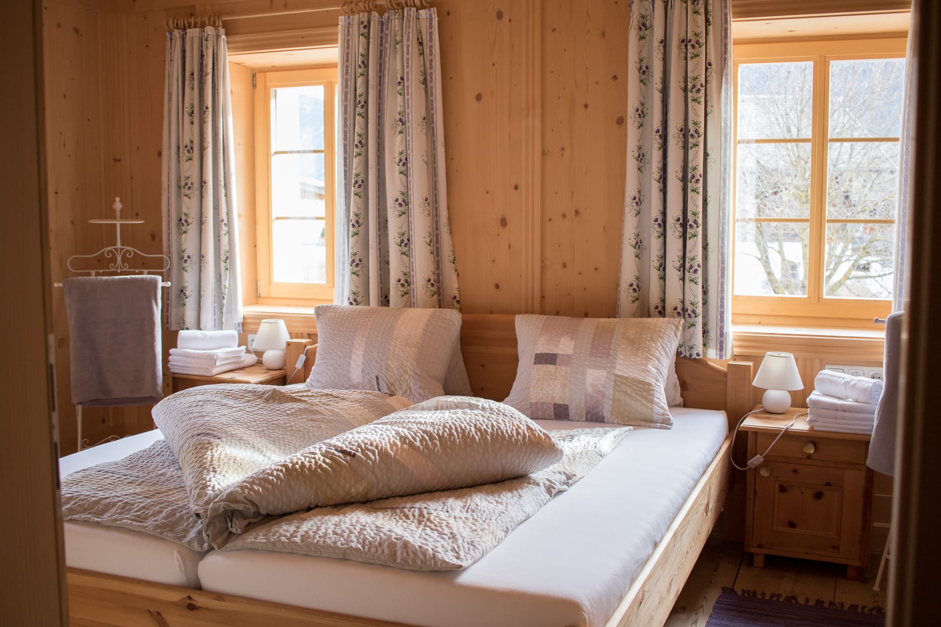 Vom Schlafzimmer der gemütlichen Ferienwohnung Spitzenstein haben Sie einen wunderbaren Ausblick auf den namensgebenden Berg Spitzenstein und die umliegenden Gipfel. Die große Stube mit Sitzecke und Kochbereich sind komplett ausgestattet. Das moderne Badezimmer mit Dusche und WC sowie ein schöner Balkon runden das Angebot ab.