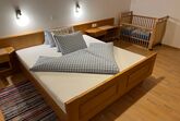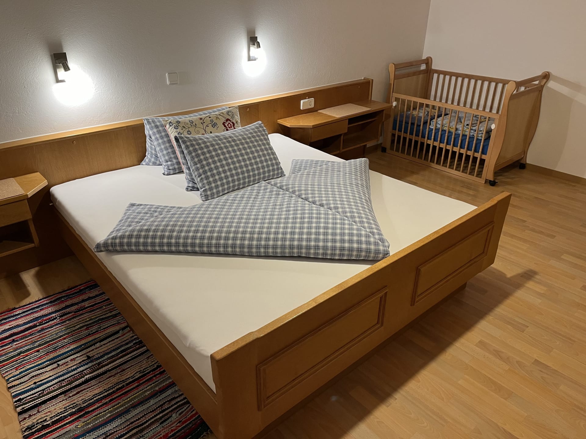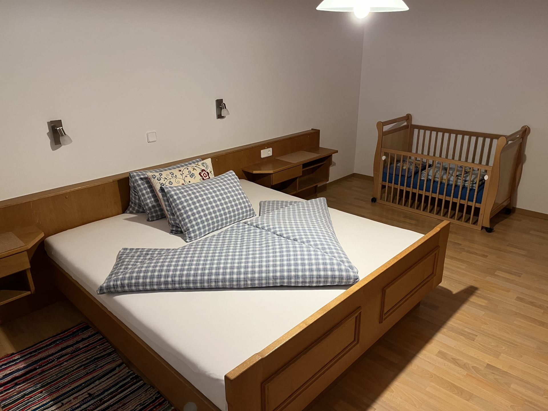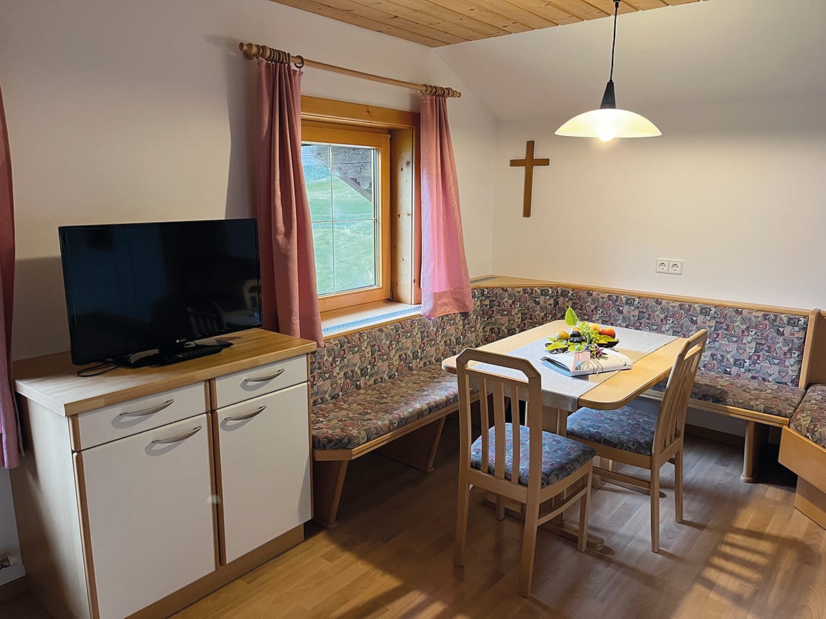 Gemütliche große Wohnküche mit wunderschönem Blick talauswärts, SAT/TV, ein Doppelzimmer mit Platz für ein Beistell oder Kinderbett und Du/WC. Komfortabel ausgestattete Küche, Ceranfeld, Heißluft-Backrohr, Geschirrspühler, Kaffemaschine, Wasserkocher, Kühlschrank und Gefrierschrank, gratis Wlan.