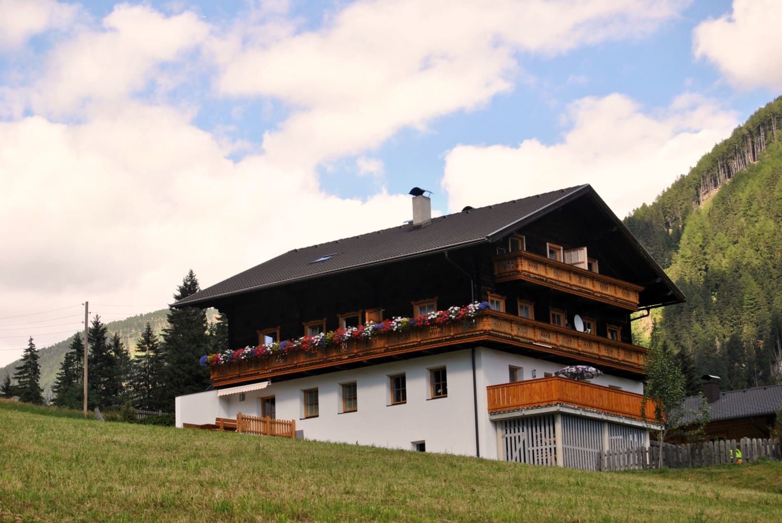Die Ferienwohnung Wasserfallblick liegt im 2 Stock unseres Hauses und besteht aus Schlafzimmer, Küche sowie einem Badezimmer mit Dusche und WC. Die Wohnung ist mit viel Holz gemütlich eingerichtet und mit Naturholzmöbeln ausgestattet. Der nach Süden ausgerichteter Balkon bittet einen wunderbaren Blick auf die Osttiroler Bergwelt.