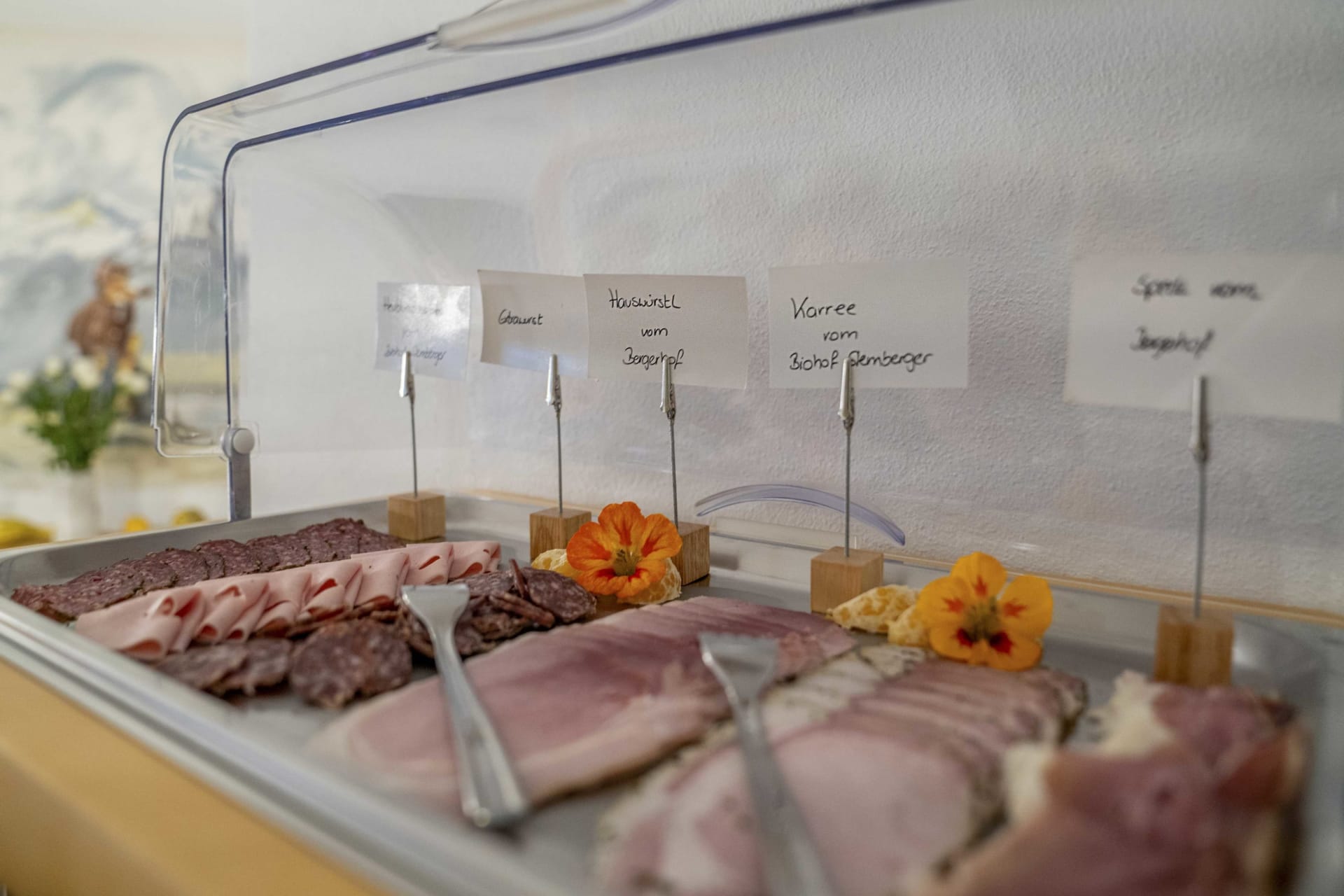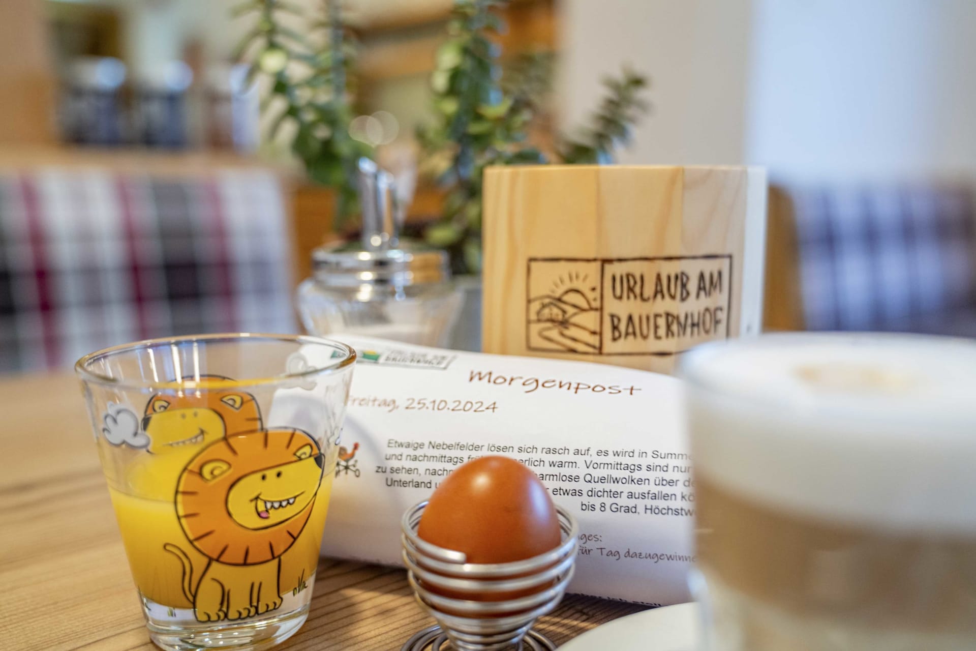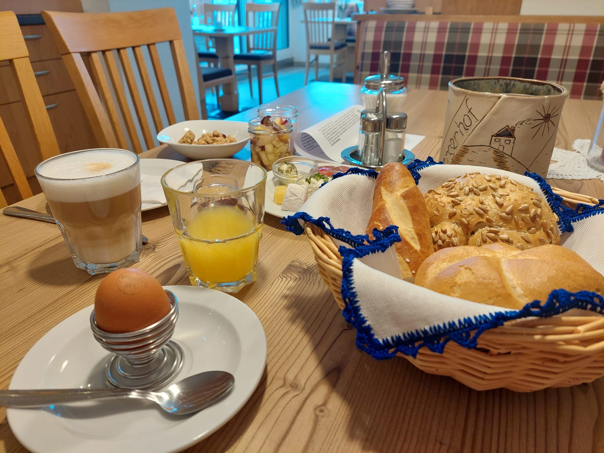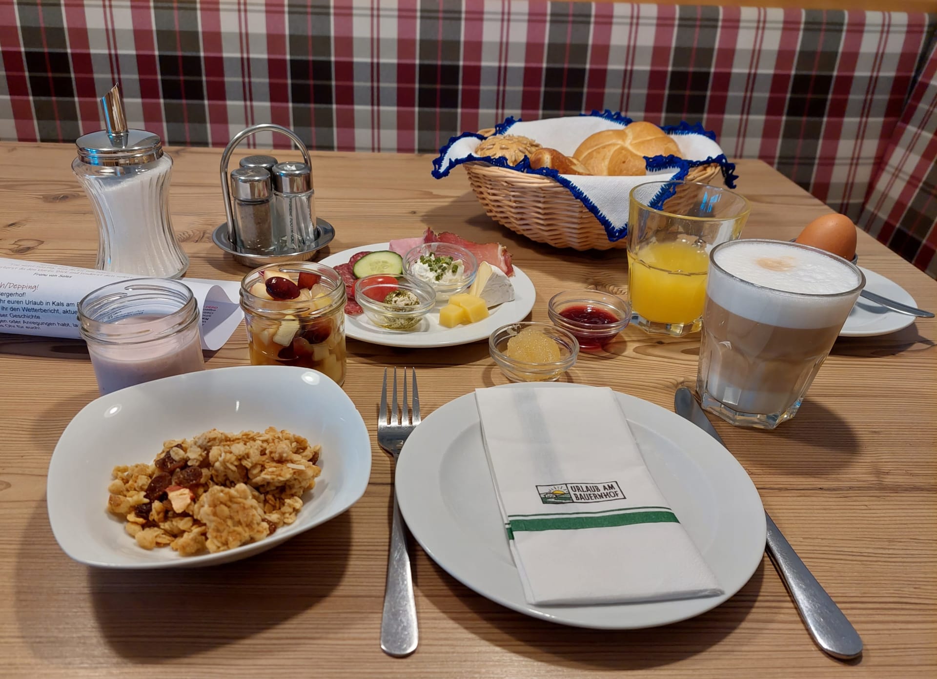 Jeder Tag beginnt bei uns mit einem herzhaften Bauernhoffrühstück - du schmeckst den Unterschied. Genießt den atemberaubenden Ausblick auf die umliegende Bergwelt, während ihr unsere hausgemachten und regionalen Köstlichkeiten probiert. Eine gesunde Prise frische Landluft rundet den Morgen ab und bereitet euch perfekt auf einen erlebnisreichen Urlaubstag vor.