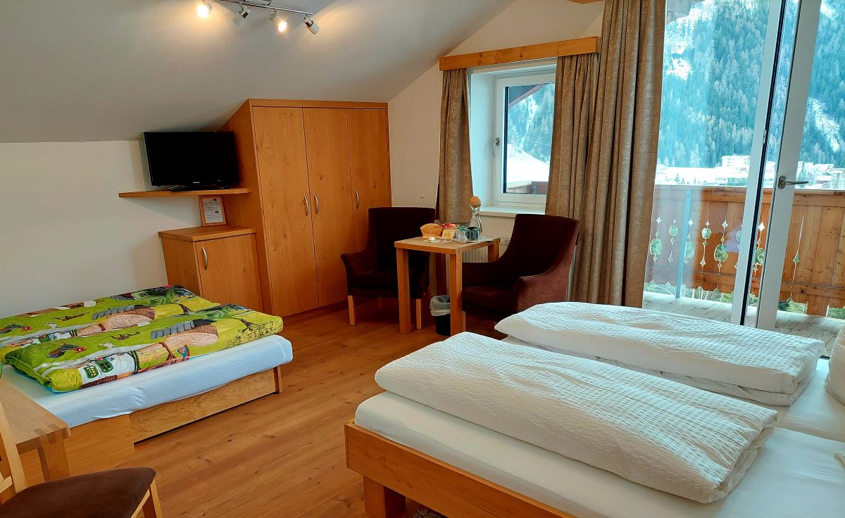 Fühlt euch frei und genießt den Duft der Zirbe. Getreu diesem Leitsatz haben wir das Zimmer Talblick eingerichtet. Das Zirbenholz sorgt für eine beruhigende und gemütliche Atmosphäre. Die Balkone aus Lärchenholz, angefertigt von Bauer Michl und Hansl, laden ein, den herrlichen Ausblick zu genießen.