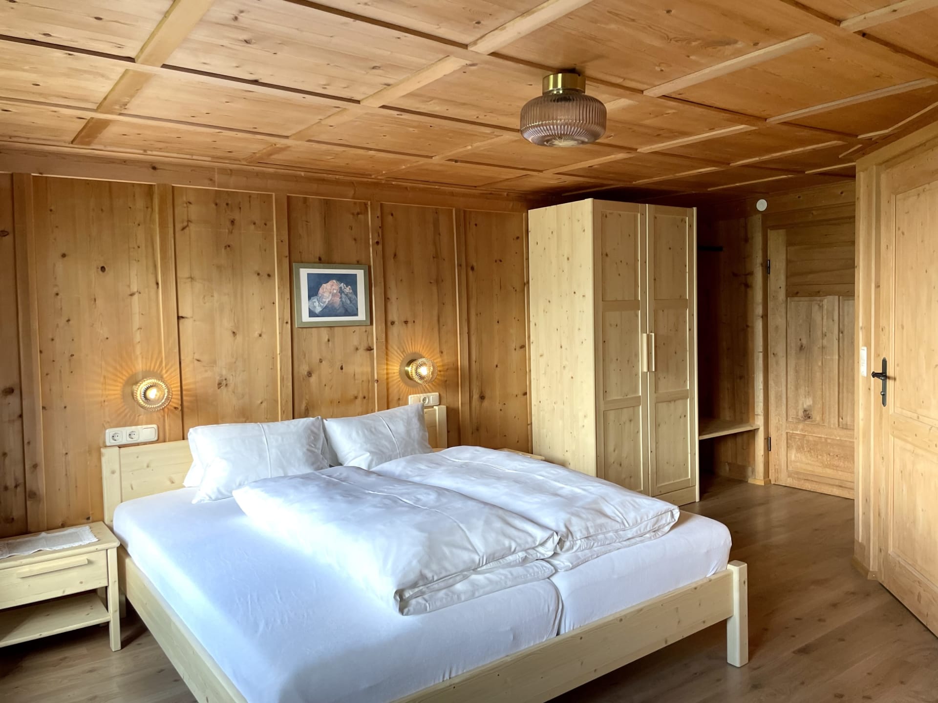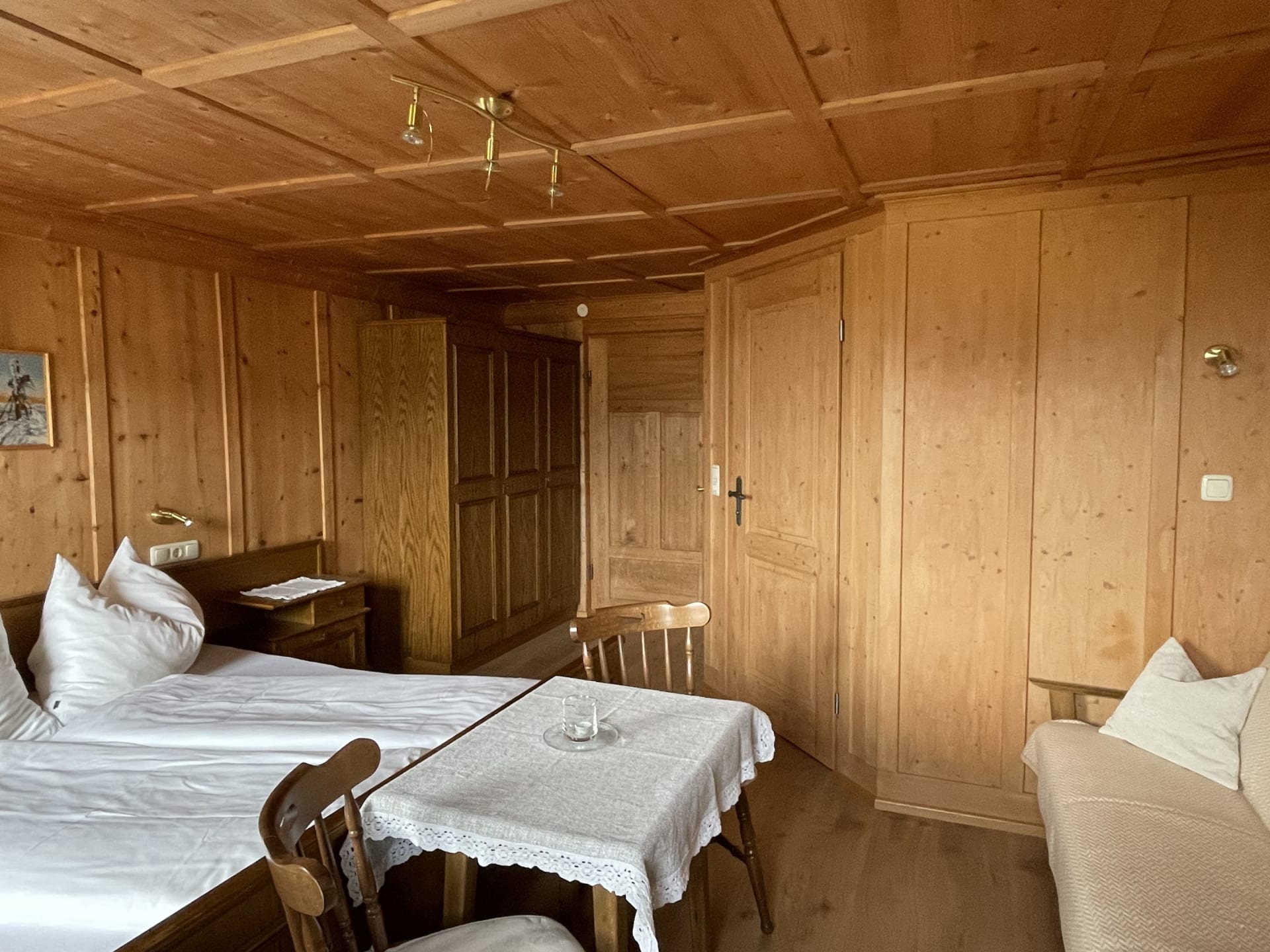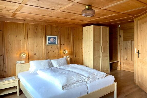 Das Zimmer ist mit einer alten Holztäfelung ausgestattet.
