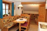 Ferienwohnung mit Balkon und herrlichem Ausblick auf Matrei, in der Wohnung ist eine Küchenzeile ausgestattet mit Elektroherd Mikrowelle Wasserkocher, eine gemütliche Sitzecke und Sat TV, Dusche und WC und 1 Doppelzimmer.