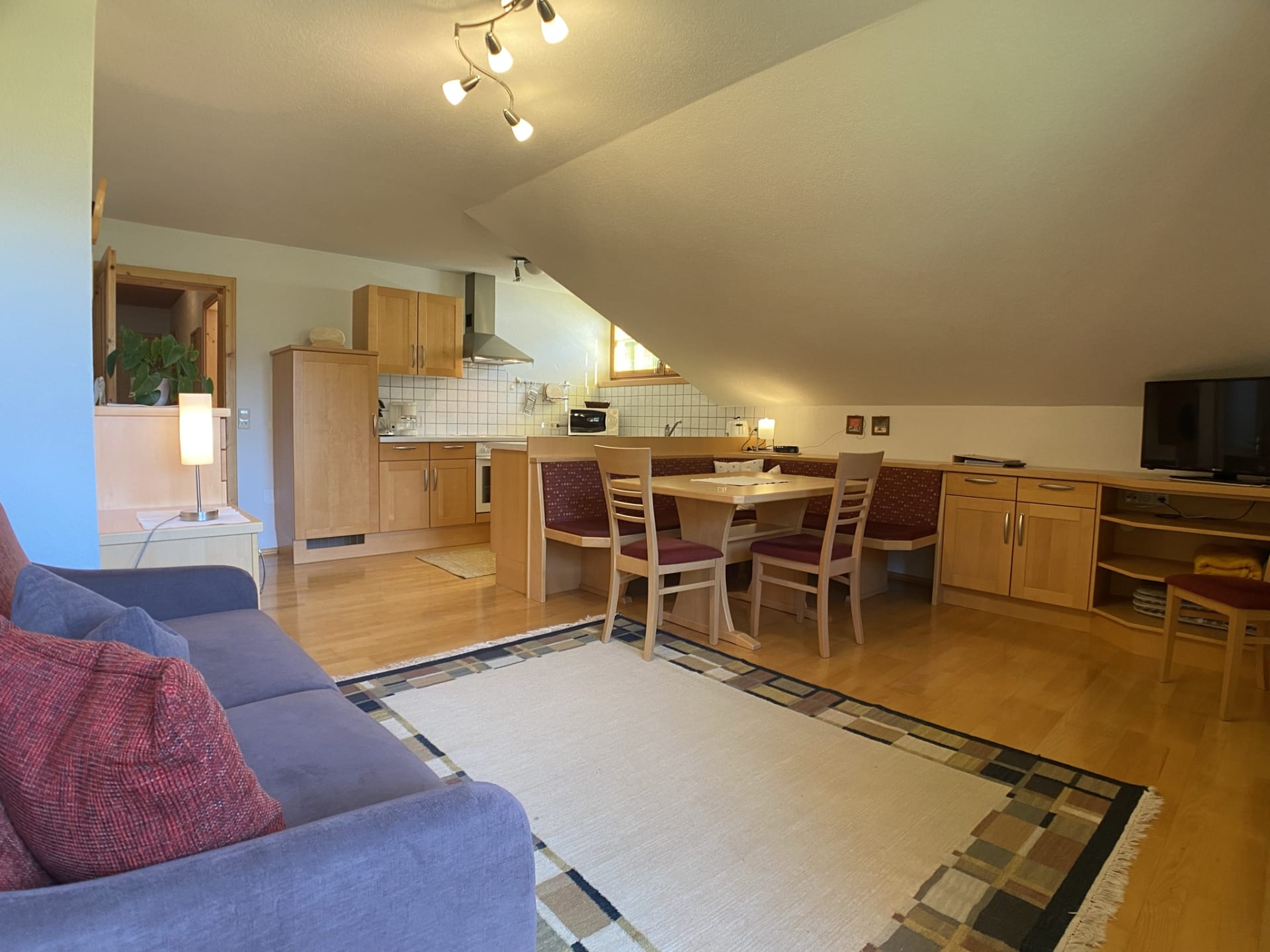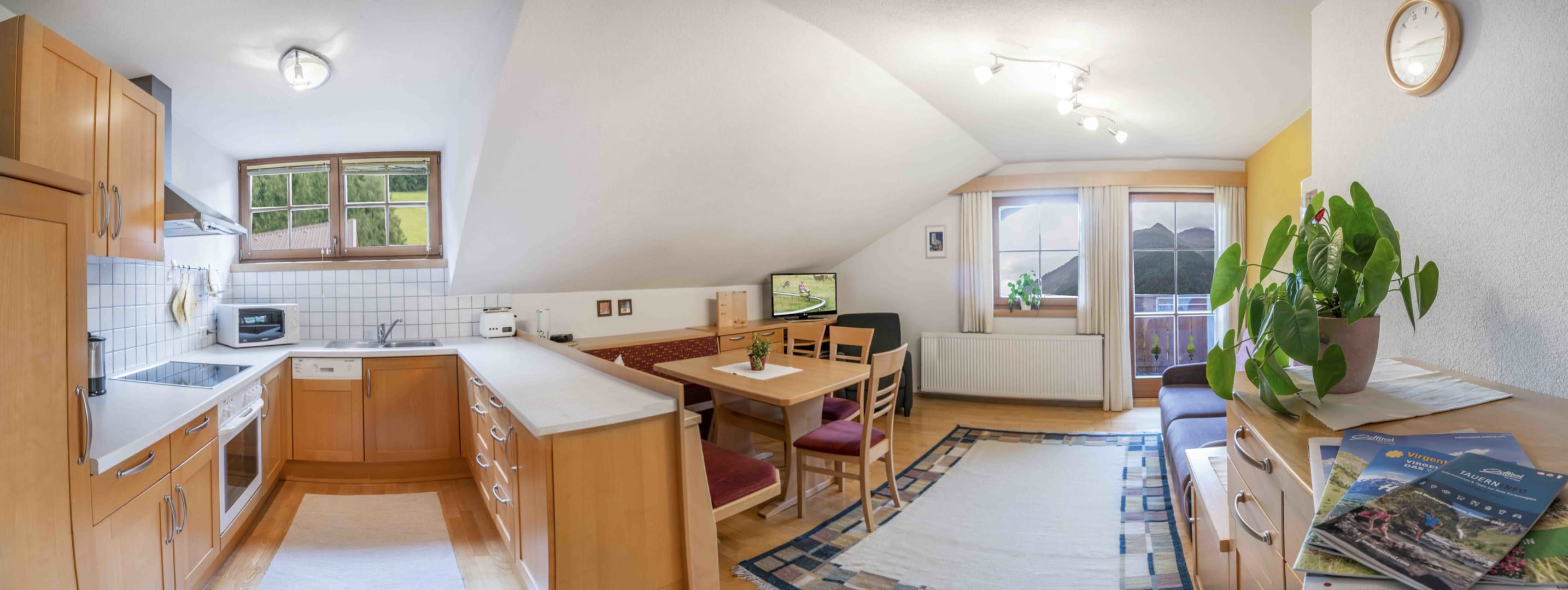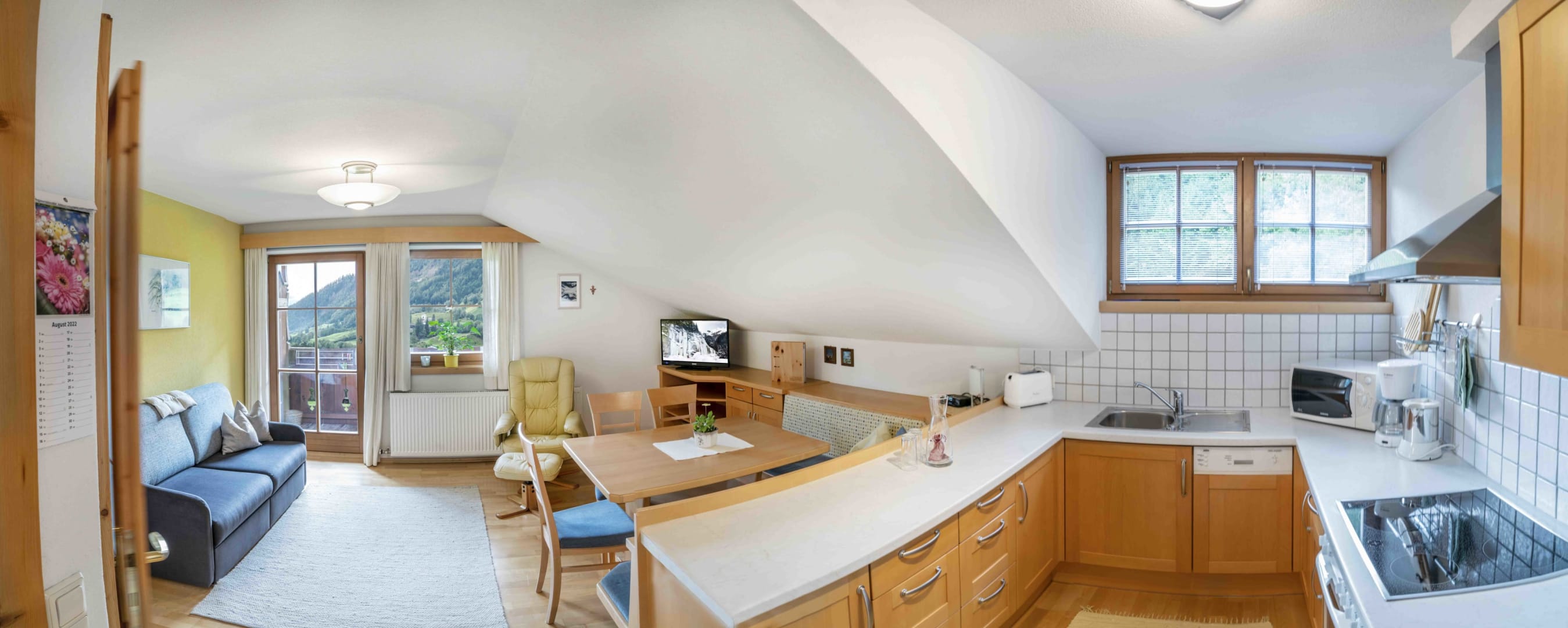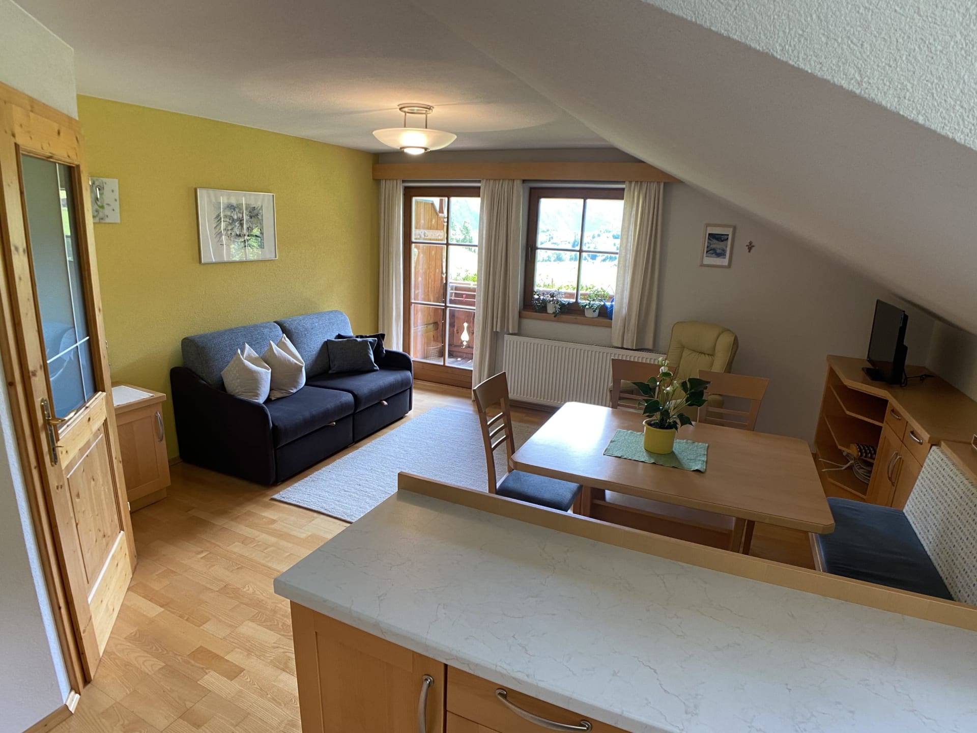Unsere WohnungGoldriedmit vollausgestatteter Wohnküch hat 2 getrennte Schlafzimmer für jeweils 2 Personen, und bei Bedarf eine große Ausziehcouch im Wohnzimmer