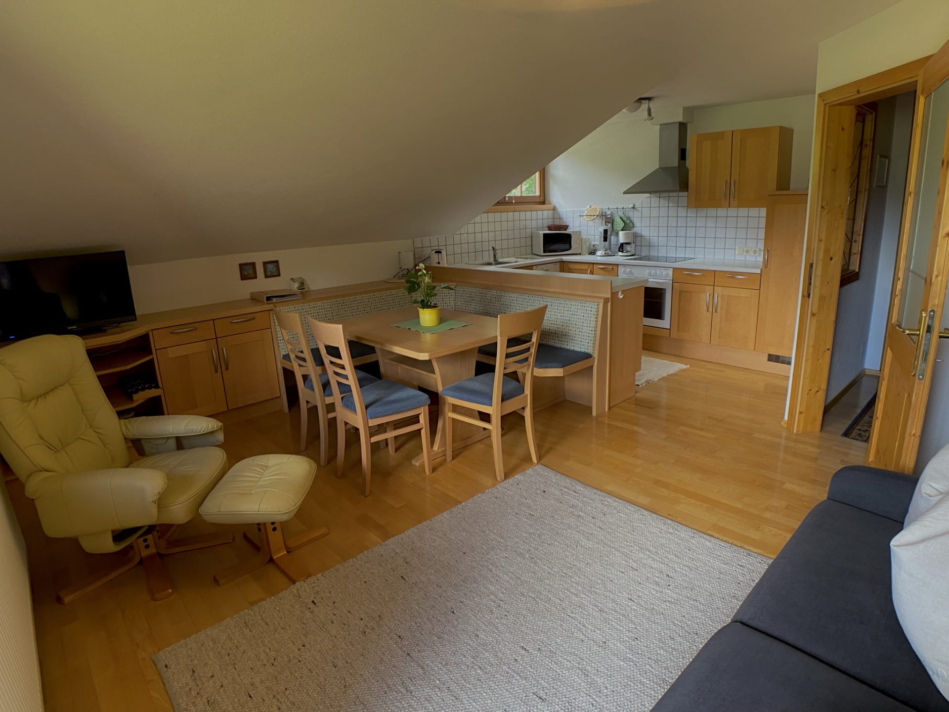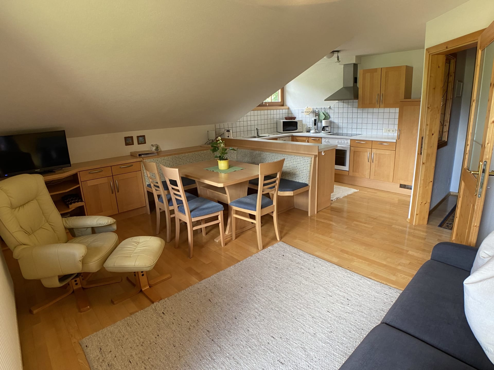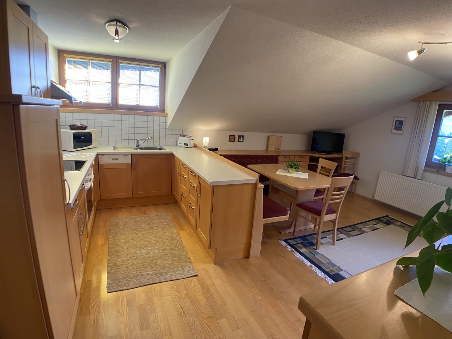 Unsere WohnungGoldriedmit vollausgestatteter Wohnküch hat 2 getrennte Schlafzimmer für jeweils 2 Personen, und bei Bedarf eine große Ausziehcouch im Wohnzimmer