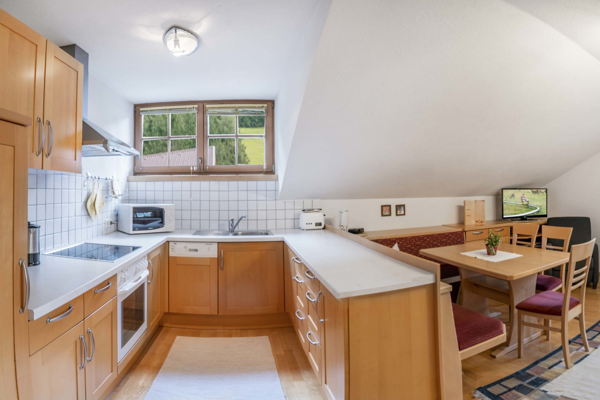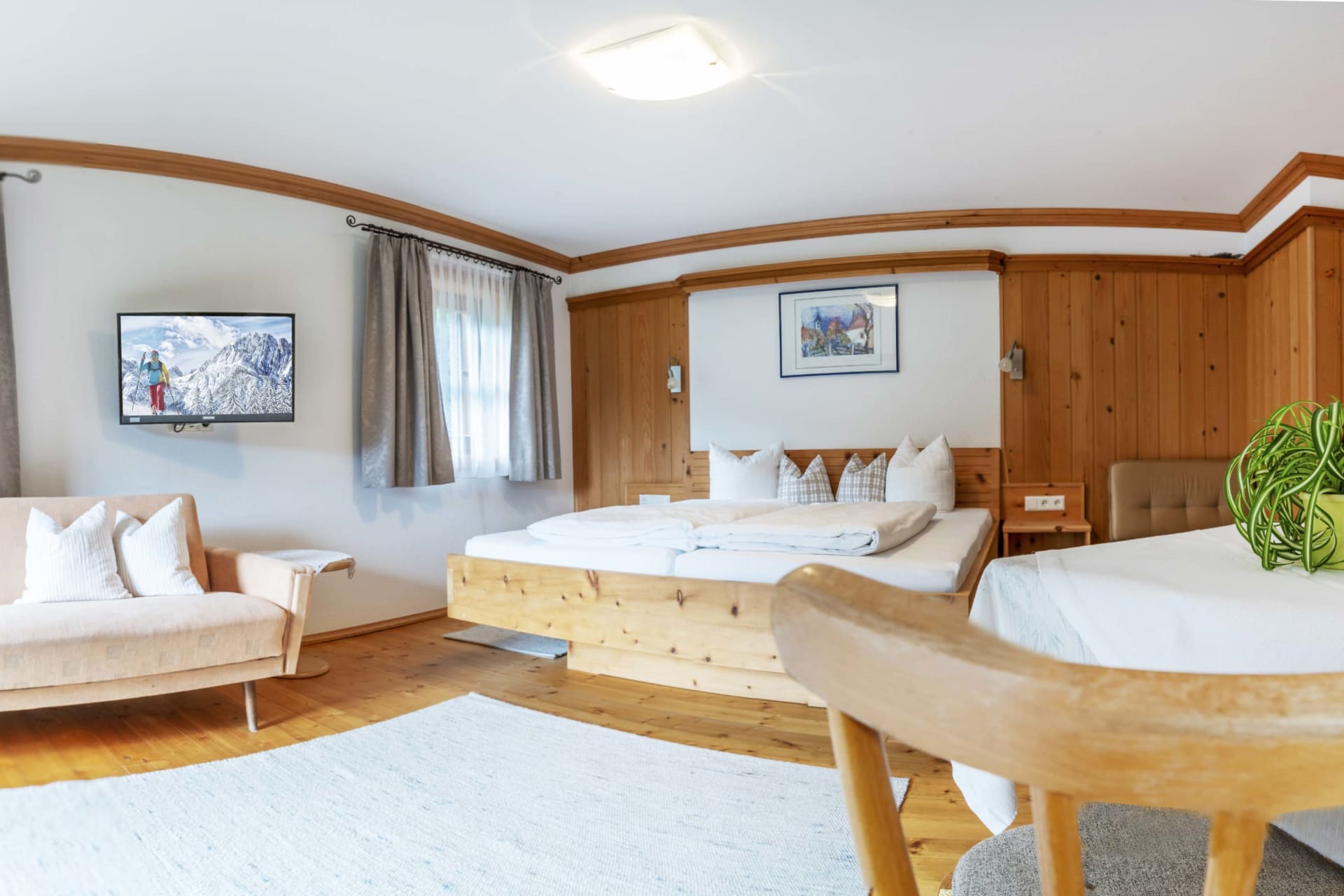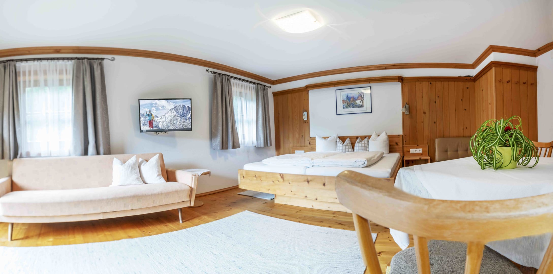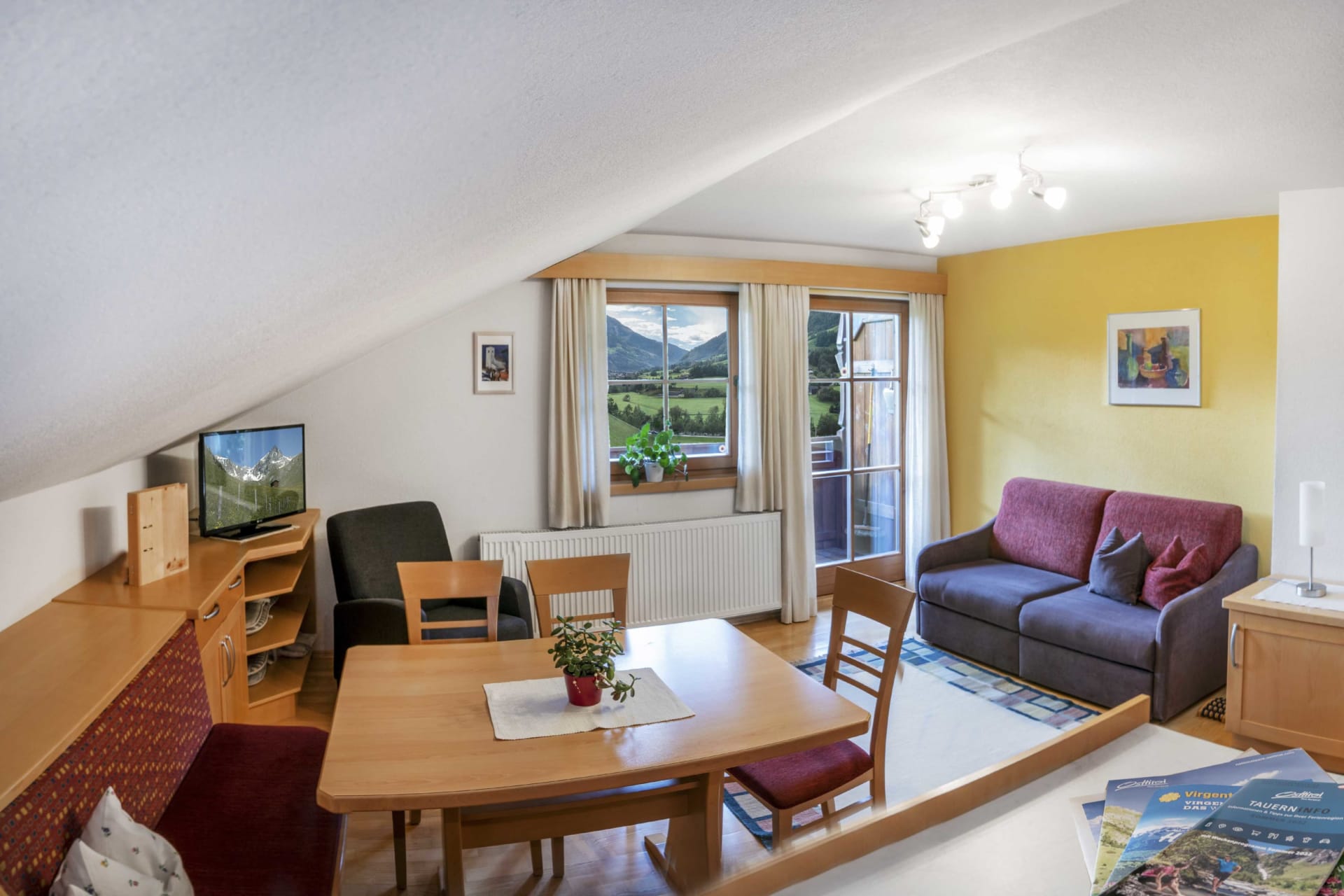 Unsere WohnungGoldriedmit vollausgestatteter Wohnküch hat 2 getrennte Schlafzimmer für jeweils 2 Personen, und bei Bedarf eine große Ausziehcouch im Wohnzimmer