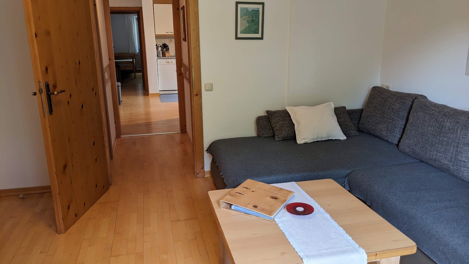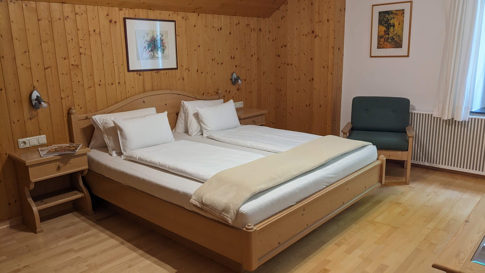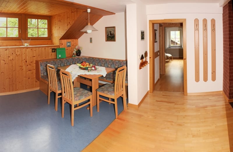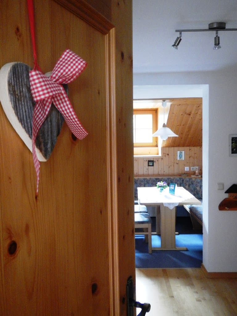 Aufwachen in unserer weitläufigen Ferienwohnung mit Vollholzmöbeln und natürlicher Ausstattung.