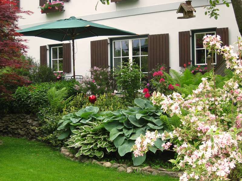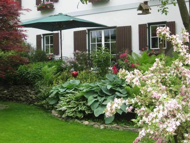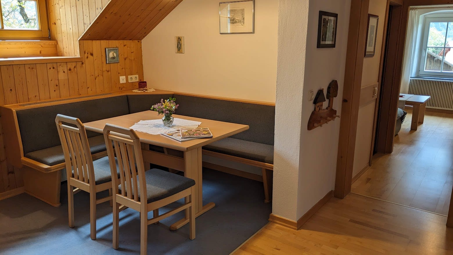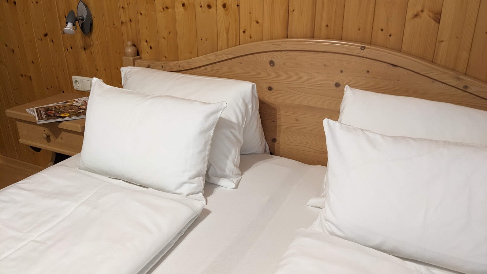 Aufwachen in unserer weitläufigen Ferienwohnung mit Vollholzmöbeln und natürlicher Ausstattung.