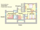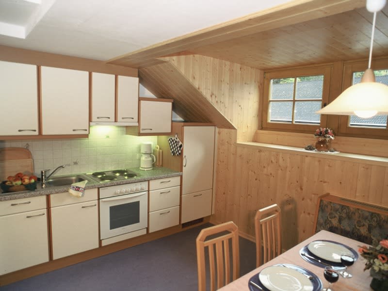Komplett eingerichtete Küche m. Essecke, Geschirrspüler E-Herd m. Backmöglichkeit, Kaffemaschine, Wasserkocher, Toaster. Wohnzimmer mit SAT/TV, Dusche, 2 WC`s